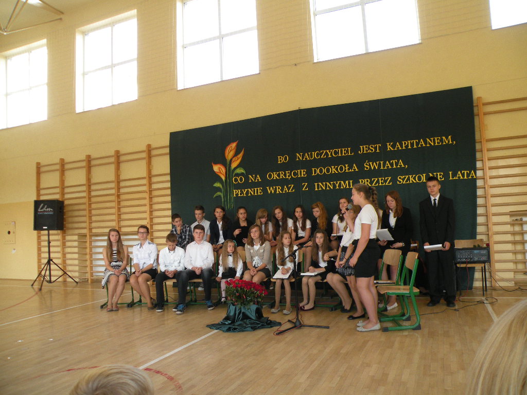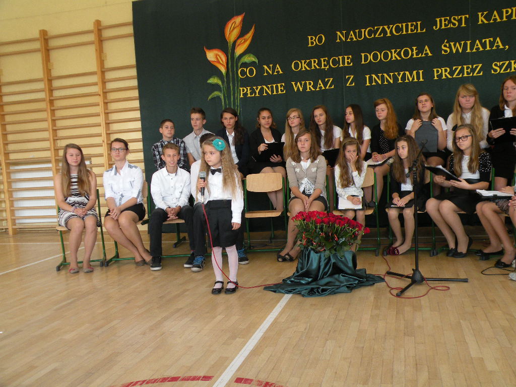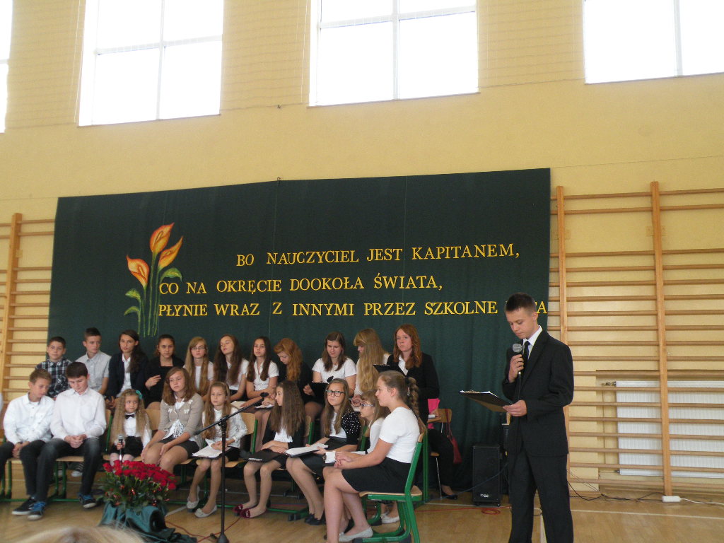 Dzień 14 października obchodzimy każdego roku wyjątkowo.To szczególna data. W tym dniu świętujemy Dzień Edukacji Narodowej, powszechnie nazywany Dniem Nauczyciela. Z okazji tego święta w naszej szkole odbyła się uroczysta akademia, którą rozpoczął wspaniały występ przedszkolaków. Po najmłodszych, zaprezentowali się uczniowie ZS dziękując za ciężką pracę i wysiłek włożony w edukację. Po przedstawieniu, wiele ciepłych słów i życzeń padło z ust przewodniczącej Rady Rodziców pani Małgorzaty Drzewi. Dzień Edukacji Narodowej to również okazja do wręczenia nagród i odznaczeń wyróżniającym się nauczycielom, co uczyniła Pani dyrektor Iwona Stryjecka – Pezda.