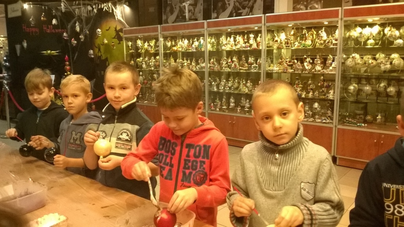 W dniu 05. 11. 2015r. uczniowie klasy IA i II Szkoły Podstawowej w Lipie byli na wycieczce w Nowej Dębie. Dzieci miały okazję zaobserwować technikę produkcji i ręcznego ozdabiania bombek. Wielkie wrażenie wywarło na dzieciach Muzeum Bombek. Uczniowie mieli okazję wziąć udział w warsztatach plastycznych, podczas których każde dziecko ozdobiło własnoręcznie bombkę. Udekorowane bombki, oraz te z indywidualnym imieniem dzieci przywiozły do Lipy, aby ozdobić nimi drzewka świąteczne we własnych domach. Wielką radość sprawiły wszystkim zakupy ozdób choinkowych pod ogromną, błyszczącą choinką. Organizatorzy wycieczki to : p. B. Chmielewska i p. T. Kalinka.