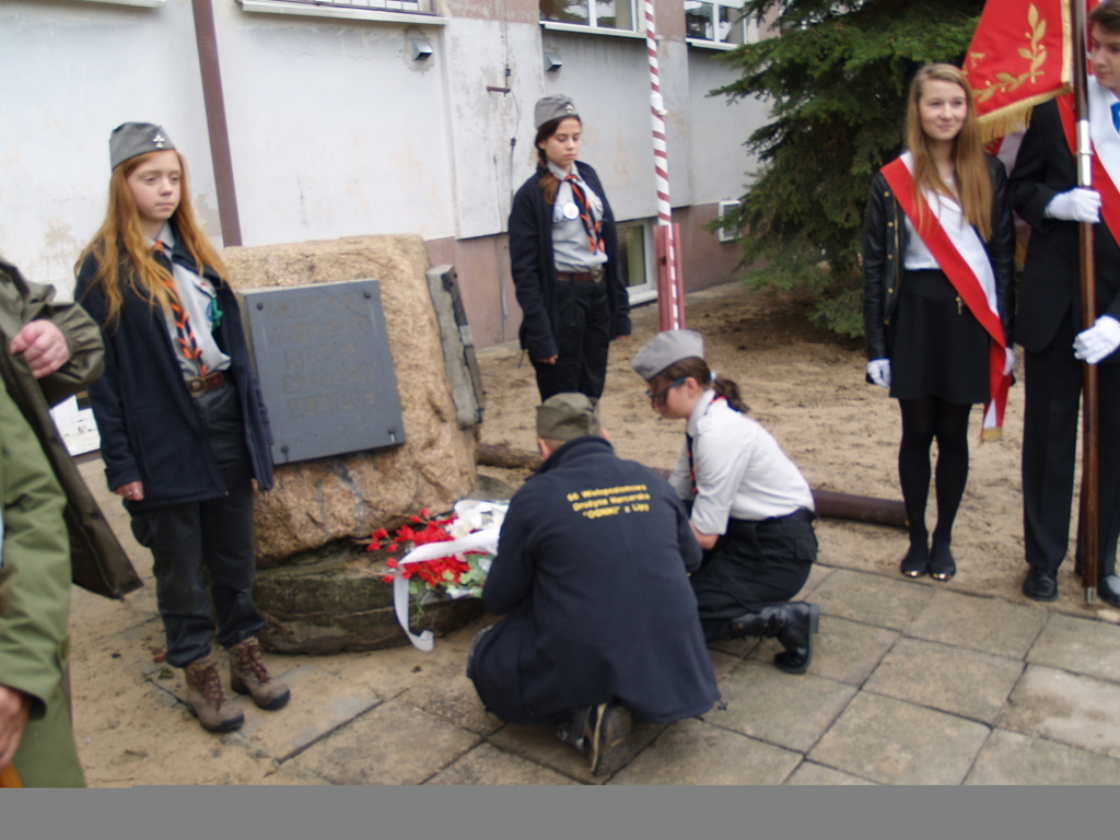 Delegacja uczniów naszej szkoły złożyła wieniec i zapaliła znicze pod pomnikiem pamięci pomordowanych.