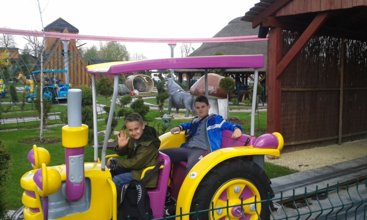 29 kwietnia uczniowie klasy V, VI i II gimnazjum pod opieką wychowawców zorganizowali wycieczkę do Rodzinnego Parku Rozrywki. Nasi pedagodzy przygotowali ambitny program wycieczki, ale my myśleliśmy tylko o tym, aby oderwać się od obowiązków szkolnych, naładować akumulatory przed poprawianiem ocen na koniec roku szkolnego i poszaleć. Mimo wczesnej godziny wyjazdu nikt z nas nie marudził, a długo planowany i wyczekiwany wyjazd w pełni spełnił nasze oczekiwania. Było fajnie, śmiesznie i ekstremalnie. Park zlokalizowany jest w pięknej i malowniczej okolicy, w miejscowości Zator. Na obszarze 26 hektarów znajduje się około 60 różnego rodzaju nowoczesnych, zaawansowanych urządzeń i atrakcji. To magiczne miejsce charakteryzujące się specjalnie dobraną tematyczną dekoracją i scenografią, podzielone jest na 3 strefy: dla najmłodszych „Bajkolandia” , dzięki której można się przenieść do krainy najwspanialszych bajek. Strefa Familijna przeznaczona jest dla całej rodziny. W towarzystwie rodziców można tam miło spędzić czas, a płynąc łódką opowiedzieć im o źle napisanym sprawdzianie np. z matematyki, a później aby wyładować emocje wziąć udział w bitwie wodnej. Większość z nas jednak wybrała strefę Ekstremalną będącą prawdziwym rajem dla wszystkich entuzjastów wysokiej adrenaliny! Atrakcje w tej strefie takie jak Roller Coaster Mayan czy Viking dostarczyły nam dreszczyku emocji, a krzyk radości często przeplatał się z krzykiem przerażenia. Podobnie było w przypadku, gdy korzystaliśmy z wielkiej obrotowej ławki „Apocalipto” , czy potężnego wahadła „Aztec Swing”. Po obiedzie, aby nieco wyciszyć ekstremalne doznania większość z nas wzięła udział w niesamowitej projekcji filmu „Podróż tropikalna” w kinie 7D, która łączyła w sobie pokaz filmu trójwymiarowego z efektami dźwiękowymi i innymi, w które wyposażone są fotele i sala kinowa.