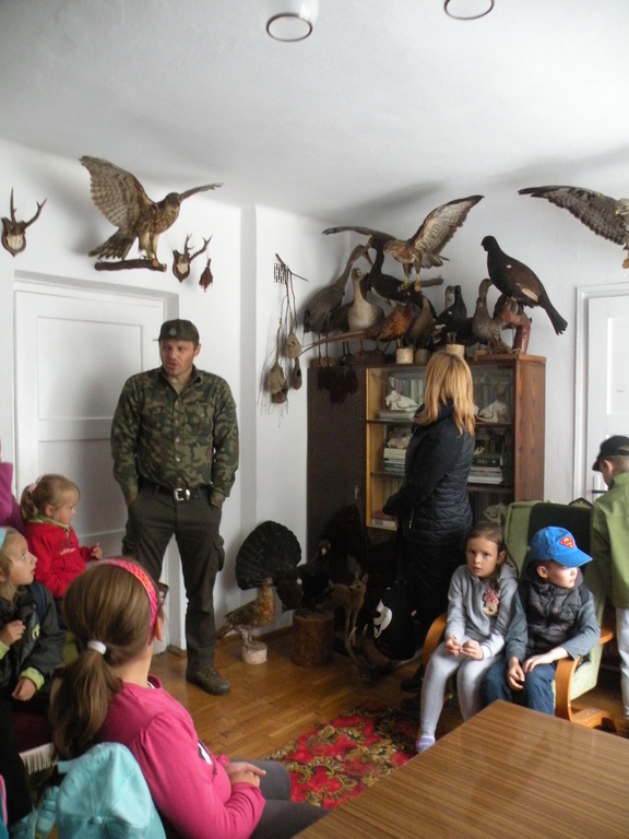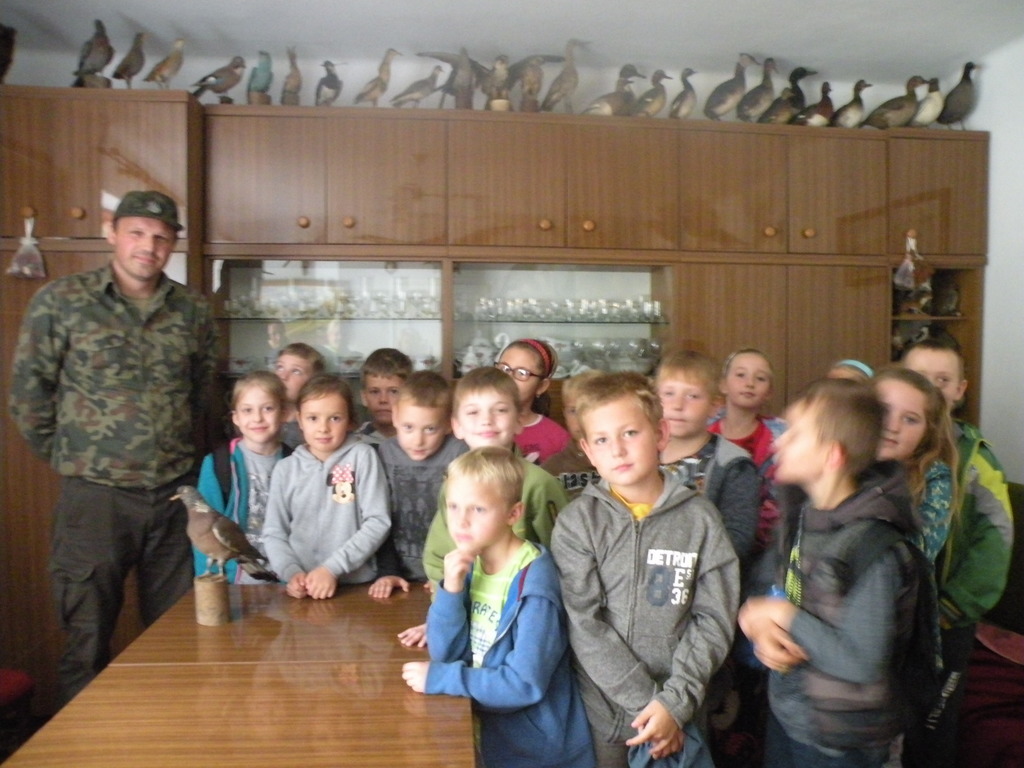 W dniu 29 września 2016 roku uczniowie klasy II „a” szkoły podstawowej pod opieką wychowawcy Teresy Skrzypek oglądali wystawę ptaków w leśniczówce p. Leszka Kaczmarzyka. Uczniowie poznali różne gatunki ptaków zamieszkujących okoliczne lasy, przylatujących do nas z ciepłych krajów czy rzadko występujących. Wszystkie ptaki i ssaki stanowią prywatne zbiory p. Leszka Kaczmarzyka. Informacje o zwyczajach, nawykach i cechach charakterystycznych ptaków przekazywał uczniom leśniczy – p. Dariusz Mróz. Uczniowie z wielkim zainteresowaniem słuchały ciekawych informacji o ptakach, naśladowanego śpiewu przez pana leśniczego, odgadywali zagadki związane z nazwą poznanych ptaków. Poznali wiele nieznanych im ptaków, jak kraska, bąk, pustułka, derkacz, słonka, krzyżodziób, cietrzew, kobuz i wiele innych. Uczniowie poznali ok. 90 okazów, z których część jest już pod ochroną, albo nie występuje na naszym terenie, co czyni kolekcję bardziej wartościową. Szczególnie zainteresował ich duży głuszec oraz informacje o nim przekazane wraz z ciekawymi odgłosami, które odtwarzał pan leśniczy. Bardzo dziękujemy panu Leszkowi Kaczmarzykowi za udostępnienie tak bogatych zbiorów. Nie trzeba jechać do muzeum ornitologicznego – mamy je w naszej miejscowości. Po spotkaniu z leśniczym uczniowie wraz z wychowawcą i rodzicami uczestniczyli w ognisku i zabawach integrujących zespół klasowy.