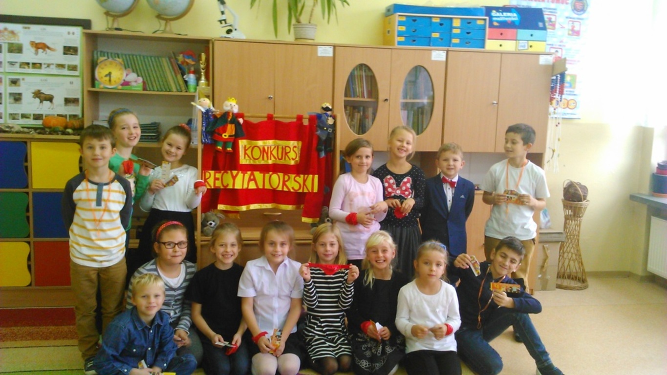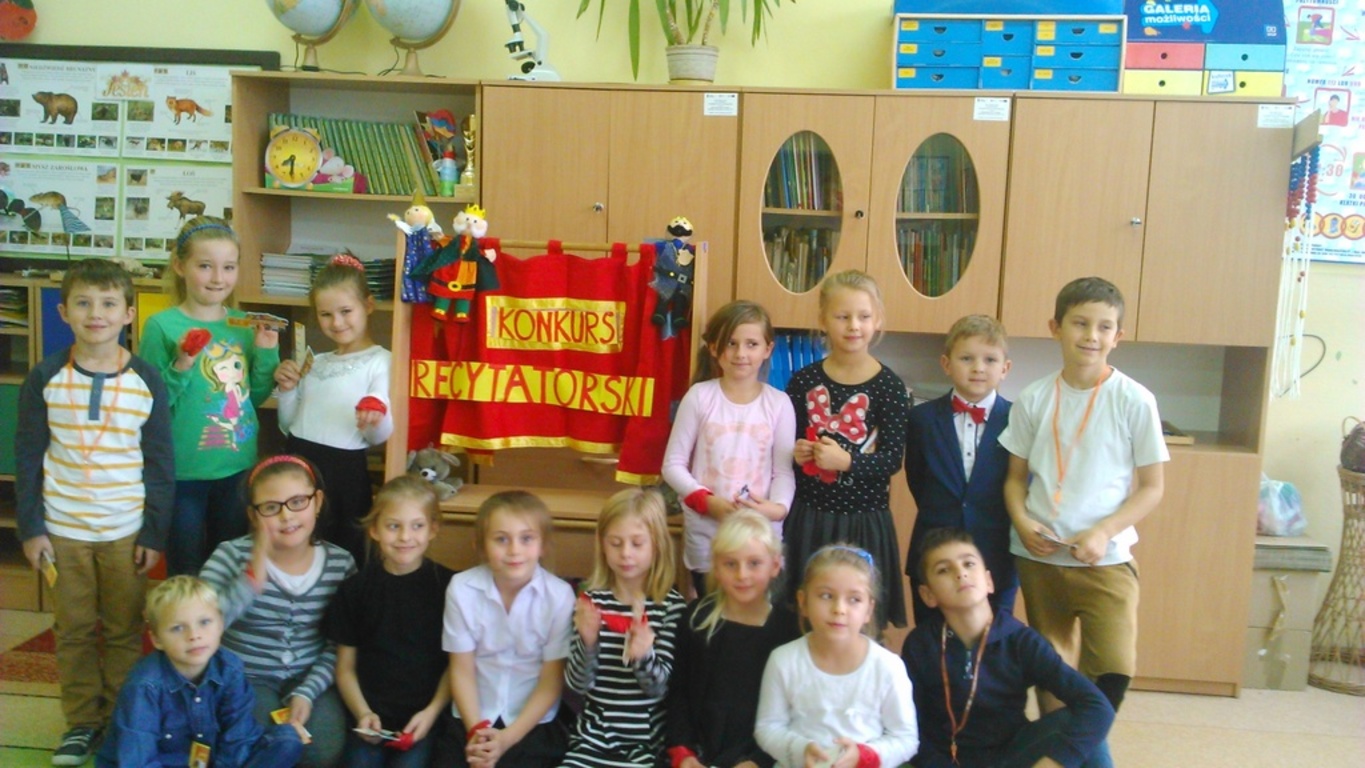 18 października 2016 r. w naszej szkole odbył się Szkolny Konkurs Recytatorski klas I-III. Celem konkursu było rozbudzenie wśród uczniów zamiłowania do poezji, szerzenie kultury słowa poetyckiego oraz wspieranie uzdolnień recytatorskich. W konkursie wzięło udział 16 uczniów z klas młodszych. Każdy uczestnik recytował jeden utwór poetycki, dowolnie wybranego polskiego autora. W jury zasiedli wychowawcy klas 1-3. Przy ocenie kierowano się następującymi kryteriami: interpretacja utworu, intonacja głosu, dykcja i wyrazistość. Po wysłuchaniu recytacji wierszy wszystkich uczniów, jury oceniło i wyłoniło zwycięzców. Wszyscy uczestnicy otrzymali pamiątkowe dyplomy oraz drobne upominki. Wyróżnieni uczniowie otrzymali dodatkowo nagrody książkowe, ufundowane przez Radę Rodziców . Ponadto laureaci szkolnego konkursu wezmą udział w XV edycji Konkursu Recytatorskiego „ O ZŁOTĄ KORONĘ” organizowanego przez Gminny Ośrodek Kultury w Zaklikowie.