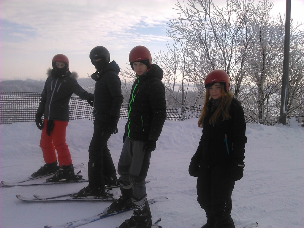 16 stycznia osiemnastoosobowa grupa gimnazjalistów pod opieką p. Bożeny Jaskowskiej i p. Arkadiusza Łopiona zorganizowała wyjazd na narty do Chrzanowa. Piękna, słoneczna, ale mroźna pogoda oraz bardzo dobre warunki narciarskie zachęcały nas do korzystania z zimowej aury i zabawy na świeżym powietrzu. Po zapoznaniu się z regulaminem obwiązującym na stoku oraz dekalogiem narciarza zostaliśmy podzieleni na dwie grupy. Grupa zaawansowana prezentowała swoje umiejętności na trasach o różnym stopniu trudności. Druga grupa rozpoczęła naukę jazdy na nartach, pod czujnym okiem p. Arkadiusza na „oślej łączce”. Determinacja i odwaga szybko sprawiły, że po dwóch godzinach wszyscy świetnie sobie radzili na nartach. Przyjazne stoki, fajna atmosfera i dopisujące humory sprawiły, że czas bardzo szybko minął i nikt z nas nie miał ochoty na powrót do domu.