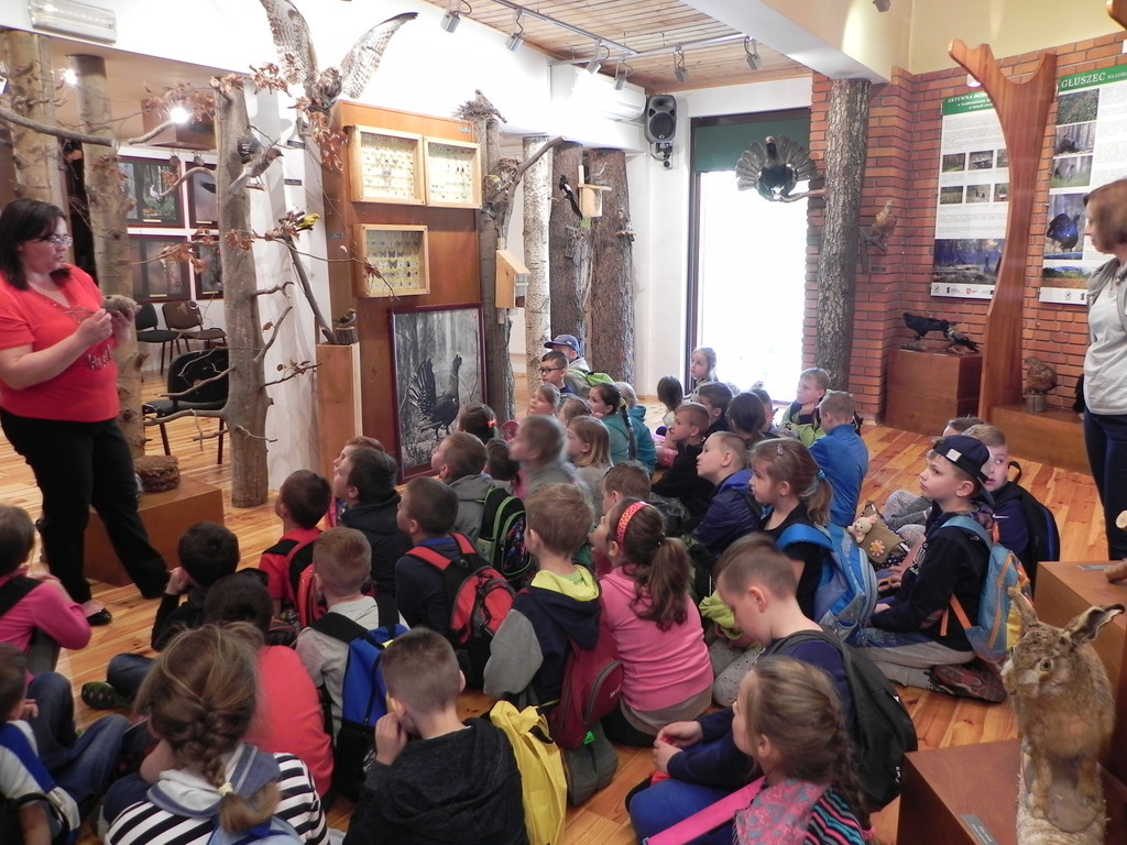 Uczniowie z zainteresowaniem oglądali wystawę przyrodniczą prezentującą bogactwo Lasów Janowskich znajdującą się w Nadleśnictwie Janów Lubelski - Ośrodku Edukacji Ekologicznej „Lasy Janowskie”. Na wystawie znajdowało się kilkadziesiąt ptaków zamieszkujących lasy Janowskie oraz ssaków, np. wilki, dziki, jelenie i wiele innych. Poza tym obejrzeli fragment pracowni garncarskiej z Łążka Garncarskiego, narzędzia leśne oraz liczne fotografie.