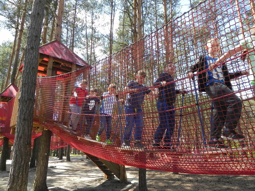 Następnym punktem programu były zabawy w Parku Linowym. Tu wszyscy wspaniale się bawili aż szkoda było wracać do domu. Na koniec uczniowie bawili się na siłowni na świeżym powietrzu i spacerowali brzegiem Zalewu Janowskiego.