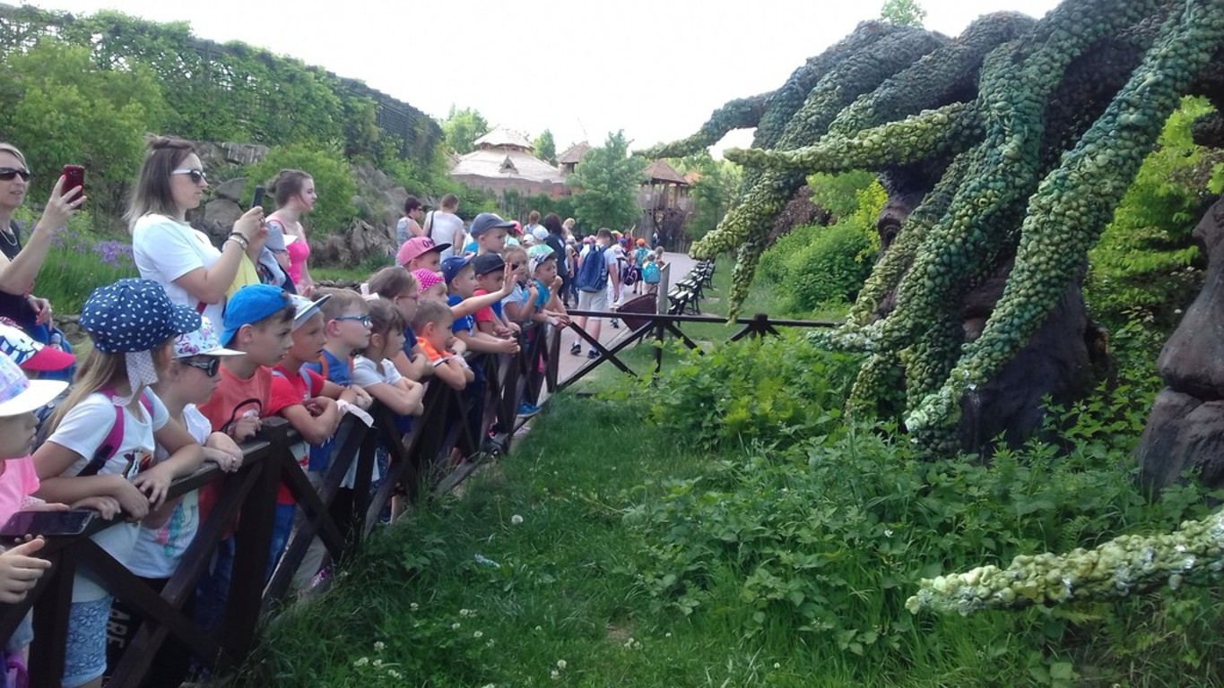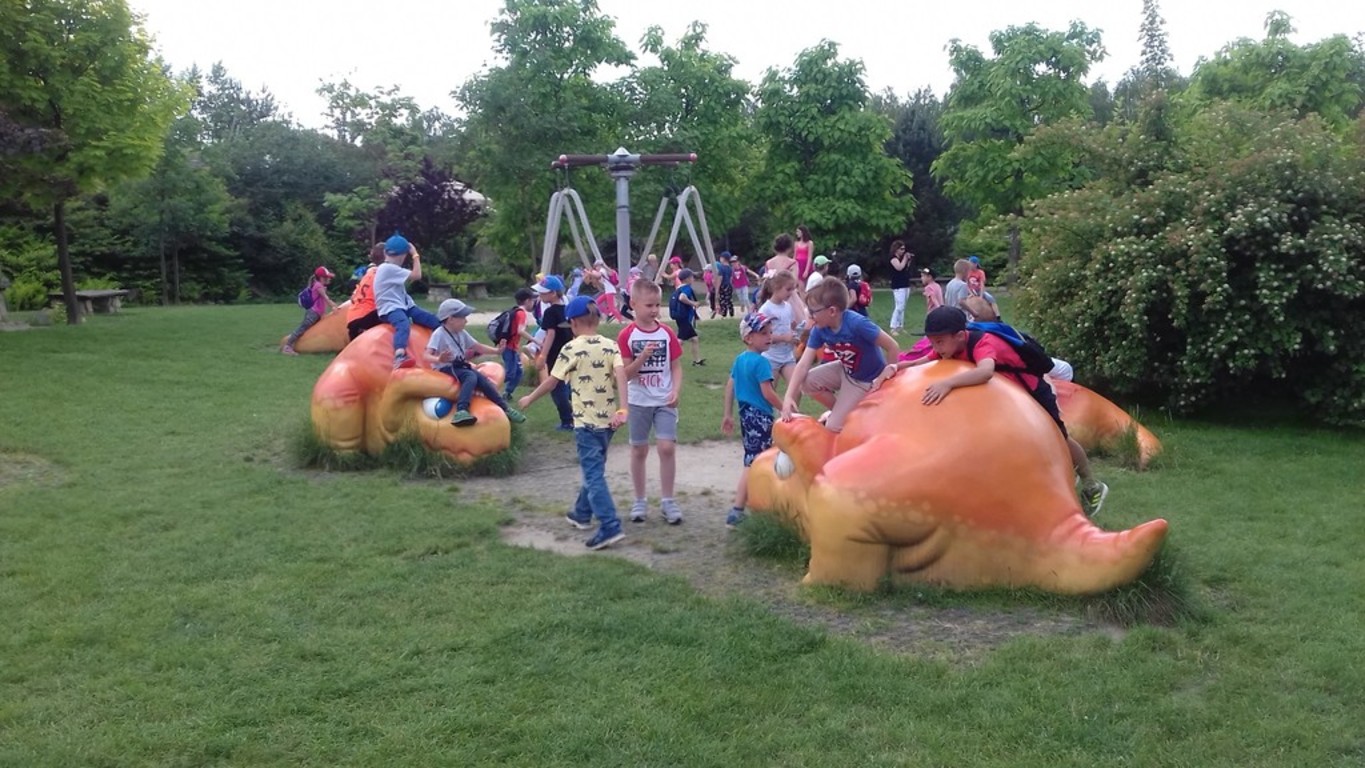Pani przewodnik, opowiadając ciekawe historie oprowadzała dzieci po ogrodzie. W pięknej scenerii wśród kwitnących kwiatów, drzew i krzewów pokazywała im różne baśniowe krainy, które oferowały takie atrakcje, by wspierać rozwój zmysłów i wyobraźni dziecka. Magiczne miejsca, ciekawe zabawy dawały możliwość rozwoju dziecięcej kreatywności i zabawy. Po obiedzie i zakupie ciekawych pamiątek, dzieci skorzystały z placu zabaw urządzonego w przepięknej scenerii ogrodu.