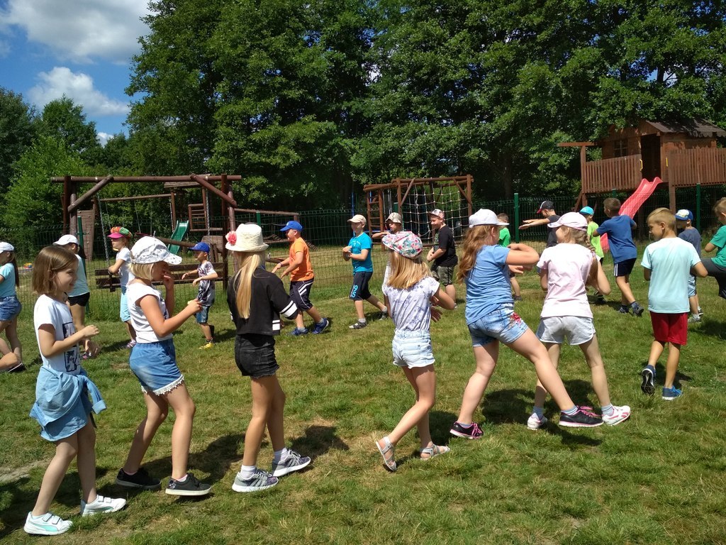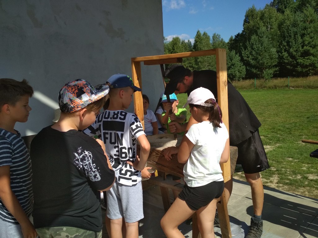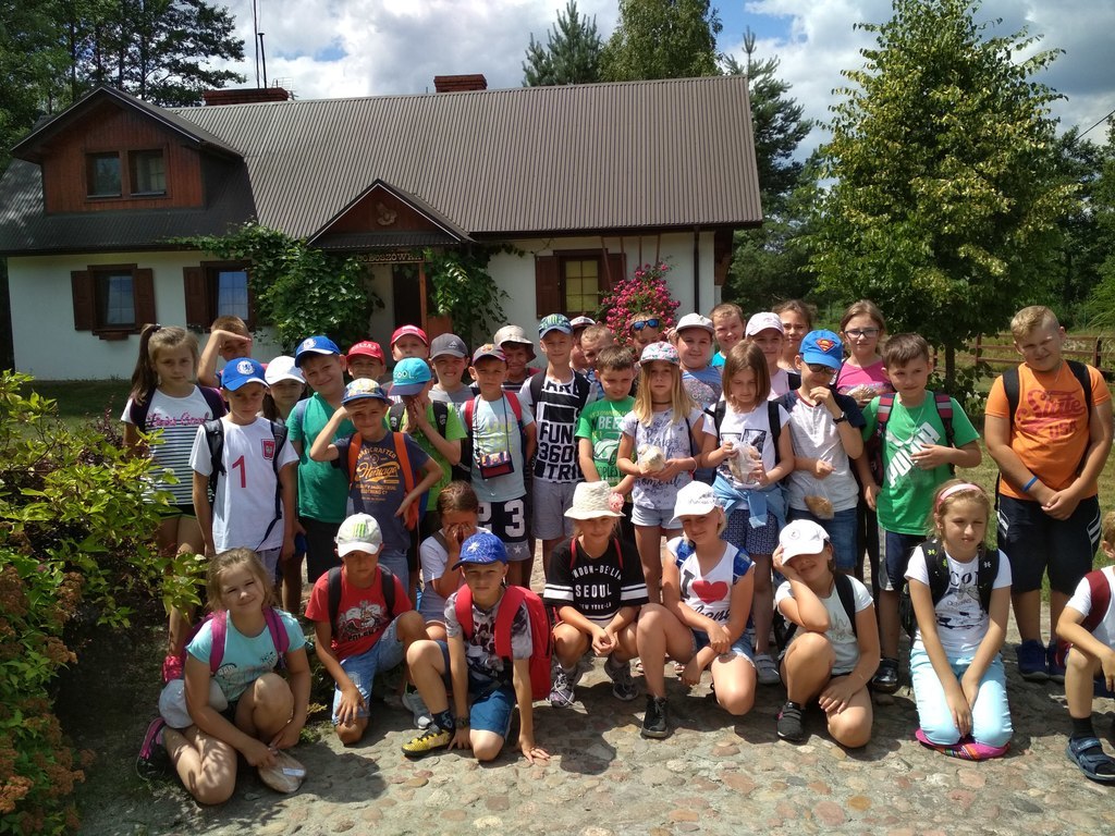 W dniu 20.06.2018r. uczniowie klas II, IIIA i IIIB Szkoły Podstawowej odwiedzili Gospodarstwo Agroturystyczne ,,Doboszówka’’ w miejscowości Kalenne. Dzieci uczestniczyły w warsztatach ,,Od ziarenka do bochenka’’, podczas których dowiedziały się jak powstaje i z czego powstaje chleb. Dzieci nauczyły się rozpoznawać zboża i powstałe z niego mąki. Uczestniczyły w młóceniu zboża cepem, czyszczeniu ziarna, mieleniu zboża w ręcznych żarnach, a przede wszystkim mogły same zrobić chlebek, który później został wypieczony w piecu chlebowym. Co więcej, mogły same zrobić masło. W oczekiwaniu na obiad spędziły wesoło czas na placu zabaw i boisku. Brały również udział w zabawach i tańcach pod okiem animatora. Po zjedzeniu pysznych naleśników odwiedziliśmy zwierzęta żyjące w gospodarstwie. Dzieci mogły nakarmić marchewką kozy, kucyka i króliki. Na zakończenie naszej wizyty Doboszówce degustowaliśmy chleb z masłem i zabraliśmy swoje wypieki do domu.
