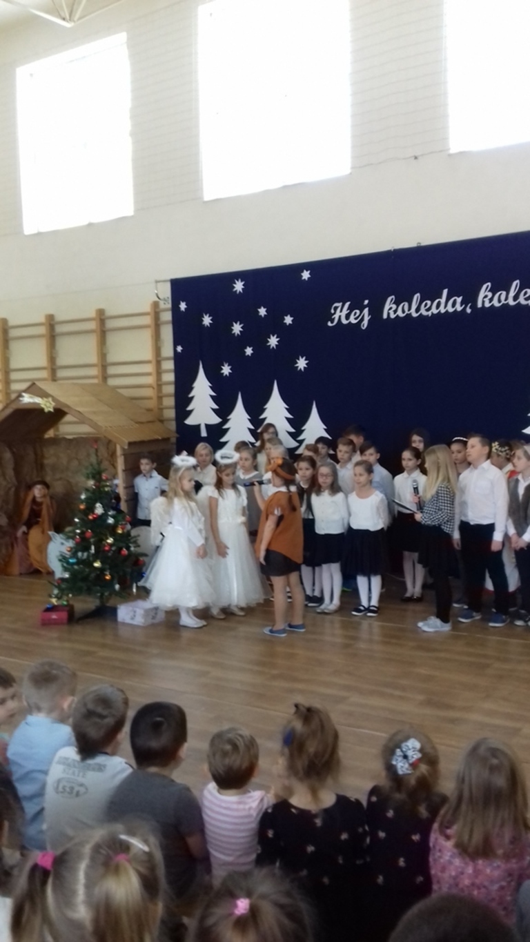 W dniu 19 grudnia 2018 r. w naszej szkole odbył się apel z okazji zbliżających się Świąt Bożego Narodzenia. W uroczysty nastrój wprowadzili nas uczniowie z klasy IIa, III i IVb , którzy przygotowali świąteczne przedstawienie. Było wspólne kolędowanie, przypomnienie zwyczajów i obrzędów wigilijnych oraz chwile refleksji nad cudem Narodzenia Pana. Słowami Orędzia z Groty Betlejemskiej, uczniowie złożyli całej społeczności szkolnej życzenia. Do świątecznych życzeń dołączyli uczniowie klasy III gimnazjum, którzy z fantazją i dowcipem przedstawili scenkę pt. „Kolędnicy”.