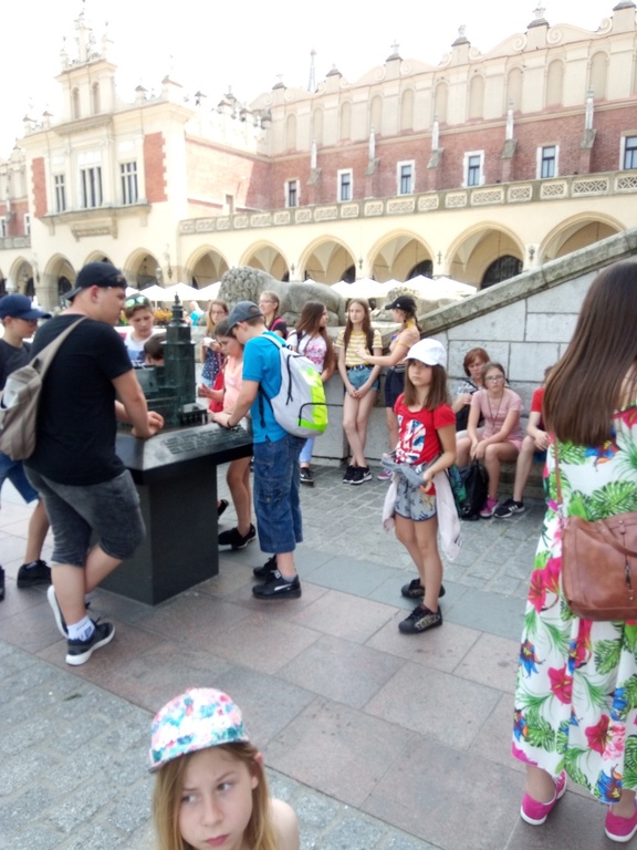 Pierwszym etapem wycieczki było zwiedzanie Kopalni Soli w Wieliczce, zabytku wpisanego na listę światowego dziedzictwa UNESCO. Podczas zwiedzania Trasy Turystycznej liczącej prawie 3 km krętych korytarzy uczniowie podziwiali imponujące komory solne, niezwykłe podziemne jeziora, unikalne rzeźby solne i monumentalne kaplice z najpiękniejszą kaplicą św. Kingi. Poznali wiele historii o etosie ciężkiej pracy górnika oraz zobaczyli dawne maszyny i narzędzia górnicze. Kolejnym wyzwaniem dla naszych uczniów było odkrywanie najpiękniejszych miejsc w stolicy Małopolski - Krakowa. Pierwszym odkryciem, niezwykle kształcującym i rozwijającym, był pobyt w Ogrodzie Doświadczeń. Tam, w pełnym słońcu i na świeżym powietrzu uczniowie badali i opisywali zjawiska fizyczne zachodzące w przyrodzie. Dopełnieniem wizyty były warsztaty "Zabawa z ciśnieniem". Drugi dzień wyjazdu rozpoczął sie pysznym śniadaniem, po którym, uczniowie pełni sił ropoczęli zwiedzanie Katedry i podziwianie widoków z wieży Dzwonu Zygmunta. Następnie spacer po rynku pozwolił na obserwacje napiękniejszych obiektów Starego Miasta. Ostatnim etapem było podziwianie panaromy miasta z Kopca Kościuszki oraz wizyta w muzeum figur woskowych.