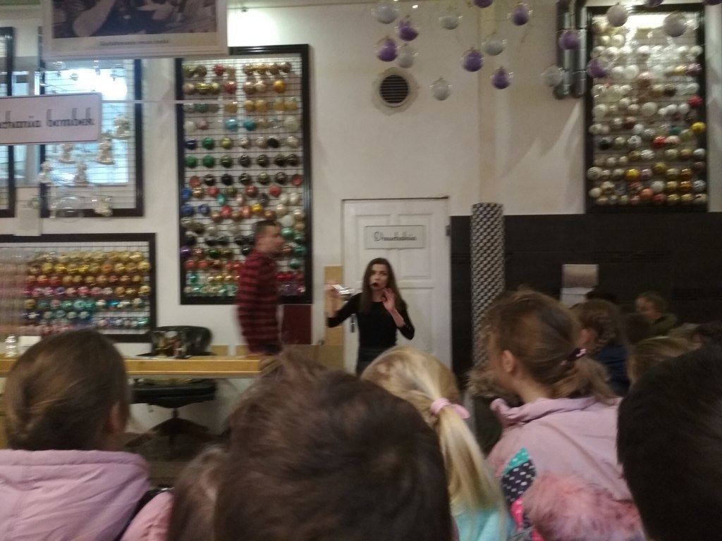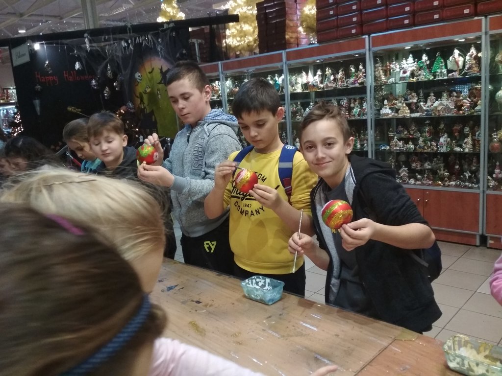 W dniu 18.12.2019r. uczniowie klas I, II, IIIa i IIIb naszej szkoły udali się na wspólną wycieczkę do Fabryki i Muzeum Bombki Choinkowej w Nowej Dębie. Pod opieką przewodnika dzieci zwiedziły zakład. Poznały etapy powstawania i ozdabiania bombek. Przekonały się, że praca przy ich produkcji wymaga nie tylko talentu plastycznego, ale też ogromnej cierpliwości. Następnie obejrzały Muzeum Bombki Choinkowej, w którym można zobaczyć wystawy choinek ozdobionych według różnych stylów: amerykańskim, norweskim, francuskim, wiktoriańskim, tradycyjnym polskim, czy też wystawę wspaniałych bombek choinkowych ręcznie wykonanych. Atrakcyjnym punktem wycieczki były warsztaty plastyczne, podczas których dzieci ozdabiały bombki według własnego pomysłu. Nie mniej interesujące były zakupy. Z bogatej oferty ozdób każdy z uczniów mógł wybrać coś dla siebie i swoich bliskich. Na pamiątkę pobytu każdy uczestnik wycieczki otrzymał bombkę własnoręcznie wykonaną podczas warsztatów oraz bombkę z własnym imieniem.