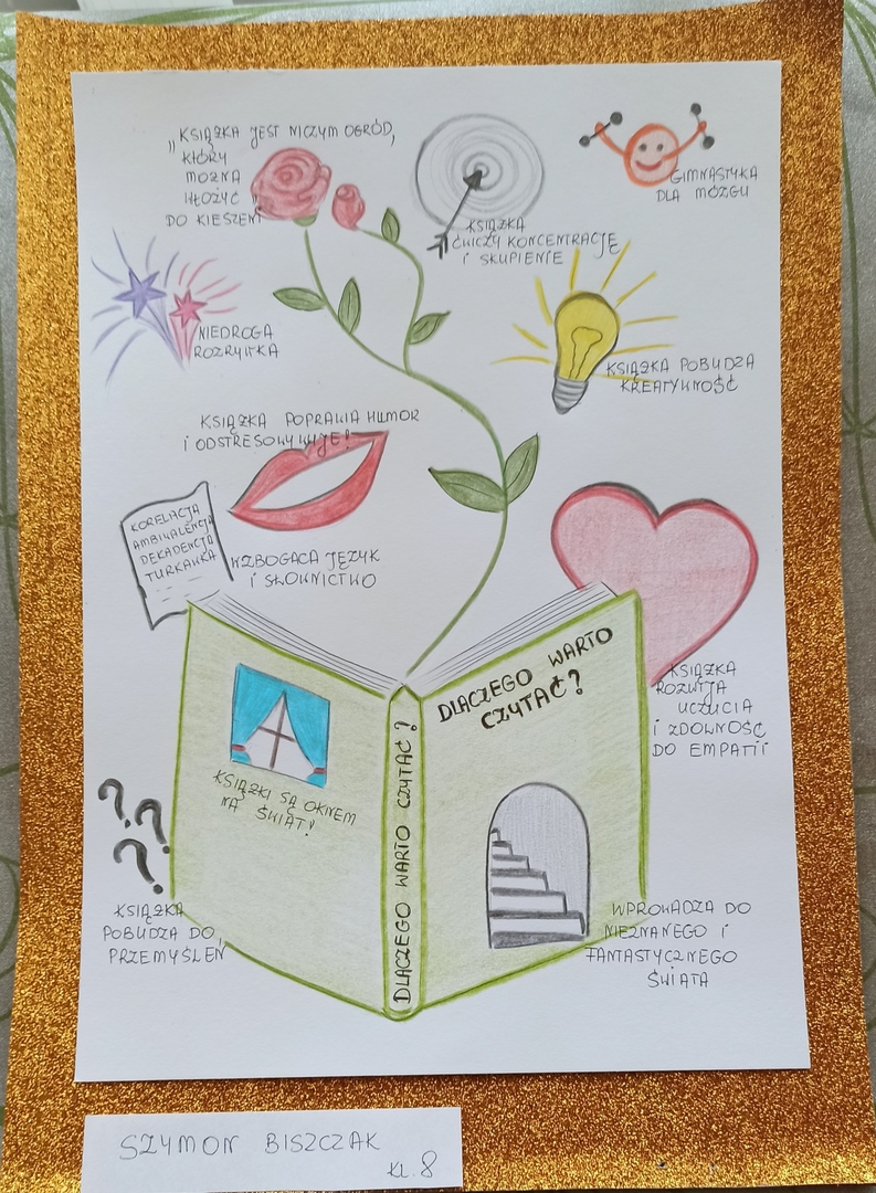 W drugim konkursie, dla klas 4 - 8, na plakat promujący czytelnictwo, I miejsce zajął uczeń klasy 8 - Szymon Biszczak, II miejsce - Jędrzej Pylak kl. V b