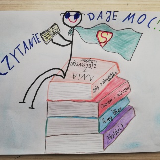 W pierwszej połowie czerwca odbyły się dwa konkursy, pierwszy dla klas 1 - 3, na ilustrację do ulubionej książki, w którym I miejsce zajęła Marysia Boruczenko - kl. 3a, II miejsce - Ola Dołęga kl. 3a, III miejsce - Szymon Januszko kl.III b,