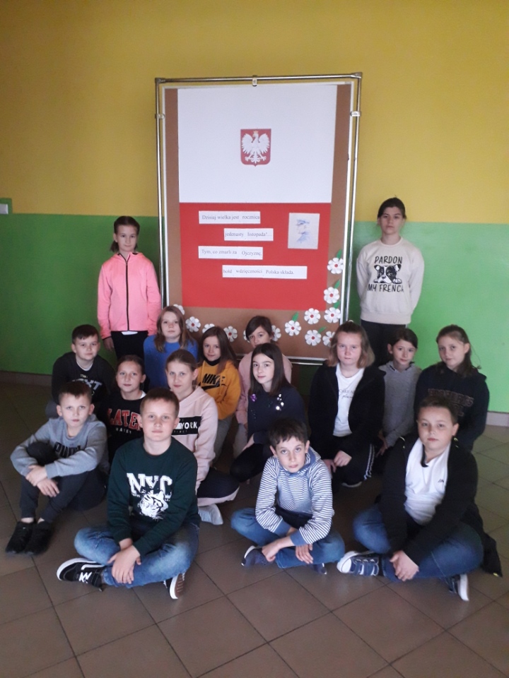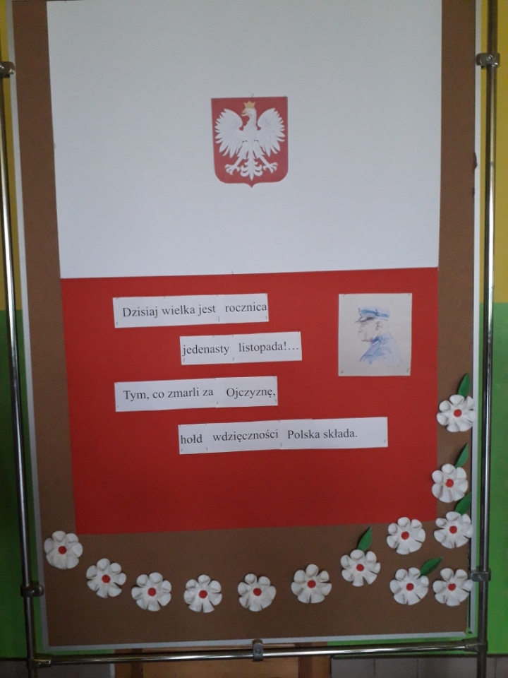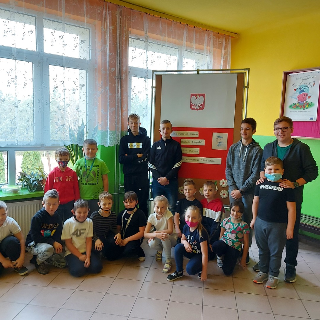 Nasza szkoła mimo warunków epidemicznych również dumnie i chętnie wpisała się w narodowy scenariusz ku czci Niepodległej. Przygotowania do obchodów rozpoczęły się tydzień wcześniej. Na budynku szkolnym powiały biało czerwone flagi, a w oknach i na tablicach ściennych pojawiły się symbole narodowe wykonane przez najmłodszych uczniów naszej szkoły i przedszkolaków. W środę, 10 listopada, w ostatni dzień roboczy przed Narodowym Świętem Niepodległości uczniowie, przedszkolaki i wszyscy pracownicy szkoły uczcili 103 rocznicę odzyskania przez naszą Ojczyznę niepodległości po 123 latach niewoli austriackiej, pruskiej i rosyjskiej.! Z tej okazji uczniowie w klasach obejrzeli prezentację multimedialną przygotowaną przez klasę IV i VII „b”, która poprowadziła ich przez historię i drogę Polski do odzyskania wolności.
