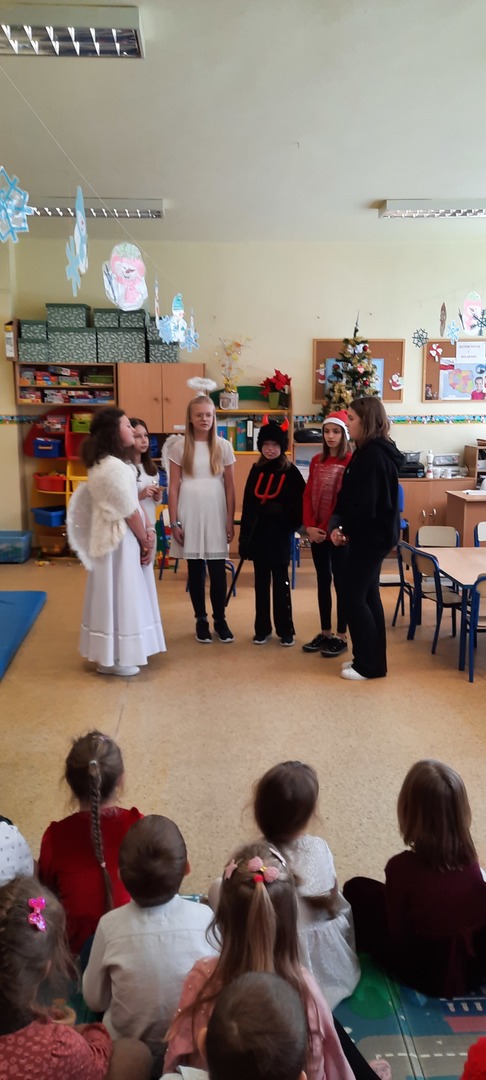 W dniu 21.01 2022 r. uczennice klasy 5 a zaśpiewały kolędy angielskie dla dzieci z przedszkola i zerówki. Dzięki temu przybliżyły maluchom kulturę angielską i ucieszyły ich swoimi pomysłowymi przebraniami. Było to bardzo miłe i pouczające dla wszystkich wydarzenie. Pomysłodawcą była wychowawczyni klasy 5 a pani Dominika Wliszczak.