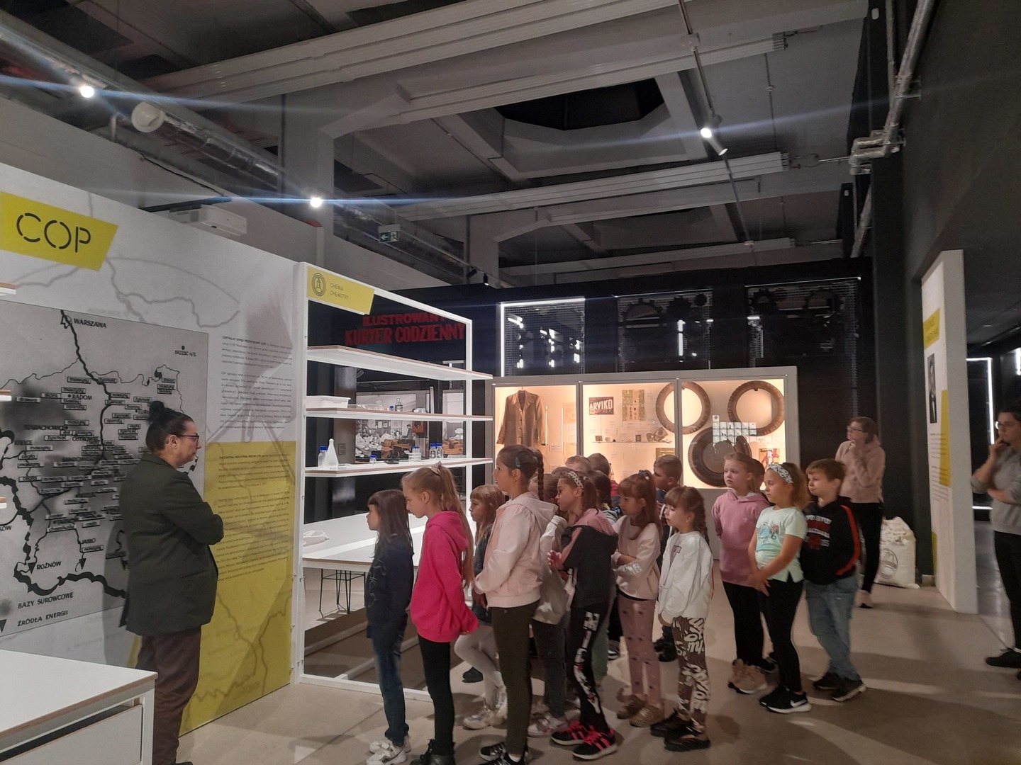 Dnia 23 września uczniowie klas 1-3 Szkoły Podstawowej, pod opieką wychowawców: p. Teresy Kalinki, p. Beaty Chmielewskiej, p. Renaty Kołtun oraz p. Agnieszki Januszko i p. Moniki Dobosz uczestniczyli w wycieczce po Muzeum Centralnego Okręgu Przemysłowego w Stalowej Woli. Wycieczka obejmowała dwie wystawy. Kolekcję muzeum stanowiły zabytki związane z historią Stalowej Woli, wyroby rzemiosła oraz pokaz dawnych stanowisk pracy. Pani przewodnik zaprosiła dzieci do przedwojennej szkoły i pokazała w jakich warunkach odbywały się lekcje. W przestrzeniach dla dzieci, można było pobawić się w młodego architekta, strażaka czy policjanta z zachowaniem wszelkich zasad bezpieczeństwa. Wiele pozytywnych wzruszeń dostarczył dzieciom film w kinie pod tytułem, „King::mój przyjaciel lew”. Muzeum COP gwarantowało niezapomnianą atmosferę, dzięki wykorzystaniu ekranów multimedialnych, które bezpośrednio wpływały na „widza”. Dzieci uczyły się poprzez zabawę.