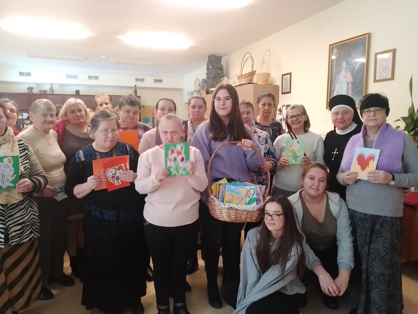 Dnia 10 lutego 2023 roku, w przeddzień Światowego dnia Chorego uczennice klasy VIII „a” naszej szkoły pod opieką p. Teresy Skrzypek odwiedziły Dom Pomocy Społecznej pod opieką Sióstr Opatrzności Bożej w Irenie. Uczennice spotkały się z podopiecznymi DPS – u tymi, które mogą samodzielnie chodzić, jak również odwiedziły chore panie przykute do łóżka. Poznały ich cierpienia i słabości. Podczas spotkania poznały historię pań przebywających w ośrodku, ich zainteresowania i realizowane plany. Panie mają szereg zajęć manualnych podczas terapii zajęciowej – rysują, malują, wykonują origami i szereg ciekawych prac, uczestniczą w rehabitacjach, biorą w miarę swoich możliwości czynny udział w życiu i funkcjonowaniu placówki. Pod opieką sióstr Opatrzności Bożej wyjeżdżają na wycieczki w Polsce i za granicą, uczestniczą w spotkaniach z mieszkańcami innych placówek, wyjeżdżają do kina, na koncerty i inne imprezy kulturalne. Bardzo chętnie i ciepło przyjmują gości. Właśnie nasza wizyta sprawiła im ogromną radość. Przywitali nas bardzo serdecznie. Uczennice naszej szkoły wyrecytowały wierszyki i złożyły im życzenia z okazji Światowego Dnia Chorego. Każdej podopiecznej Domu Pomocy Społecznej podarowały laurki wykonane przez uczniów naszej szkoły. Te laurki i nasza obecność sprawiły im niesamowitą radość. One również obdarowały nas swoimi własnoręcznie wykonanymi pracami. Zaśpiewały piosenkę i rozmawiały z nami. Jedna z podopiecznych wydelegowana przez siostrę zabrania głosu wśród wielu ciepłych słów podziękowań powiedziała znany nam cytat z Biblii „Więcej szczęścia wynika z dawania niż z otrzymywania”. Te słowa były większe niż malutki skrawek papieru, a radość, jaką sprawiła nasza wizyta podopiecznym - udzieliła się również nam. Była to wspaniała lekcja wychowawcza.