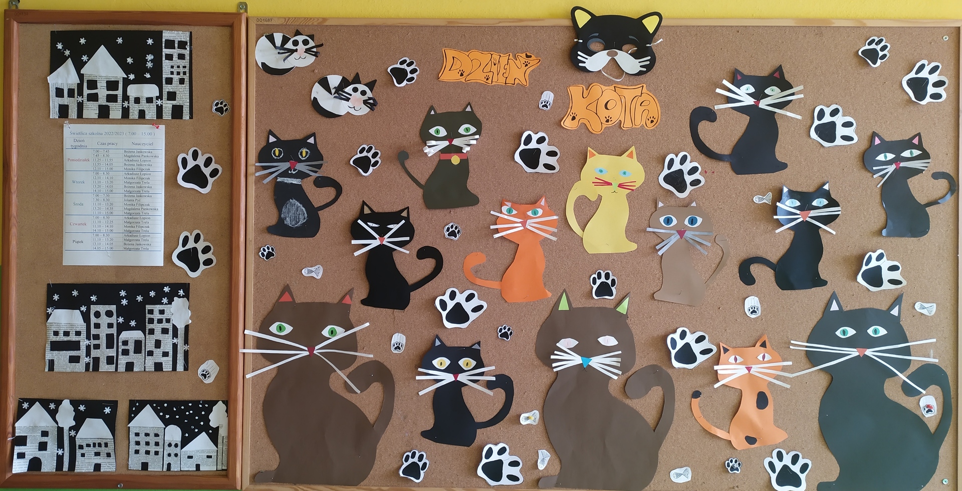 Światowy Dzień Kota obchodzony jest corocznie 17 lutego. Święto ma na celu propagowanie szacunku dla kotów, zwrócenie uwagi ludzi na los porzuconych i bezdomnych kotów. Właśnie tego dnia w świetlicy szkolnej uczniowie naszej szkoły obchodzili to nietypowe święto „Dzień Kota”. Z tej okazji uczniowie obejrzeli prezentację multimedialną poświęconą kotom. Poznali rasy kotów, dowiedzieli się wielu ciekawostek o trybie ich życia. Uczniowie wykonali również kreatywne prace plastyczne przedstawiające kota. Odbyły się także zajęcia czytelnicze, na których nie mogło zabraknąć książek, których bohaterami są koty: "Kot w butach", "Cukierku, Ty łobuzie ", "Fajny agent Fred". Dzień Kota był nie tylko okazją do zabawy, ale przede wszystkim czasem na refleksję nad losem dzikich, bezdomnych kotów, szczególnie zimą, kiedy to nie tylko trudno zdobyć im pożywienie, ale również nie mają schronienia przed zimnem. Zapraszamy do obejrzenia galerii prac uczniów w scenerii zimowej.