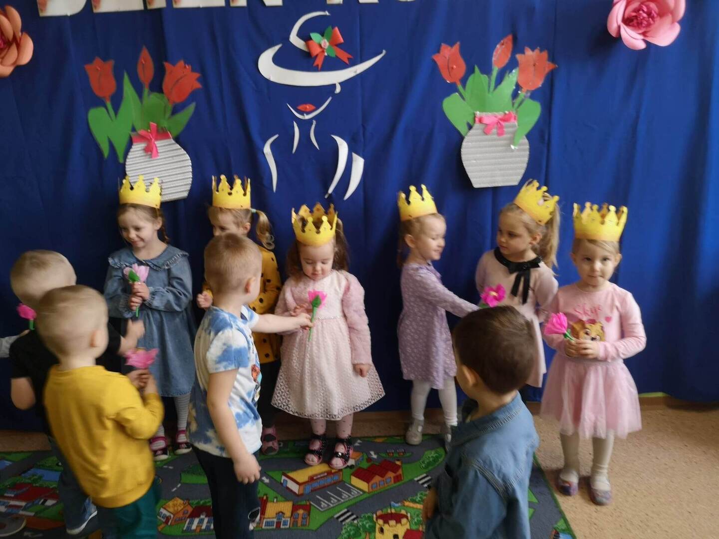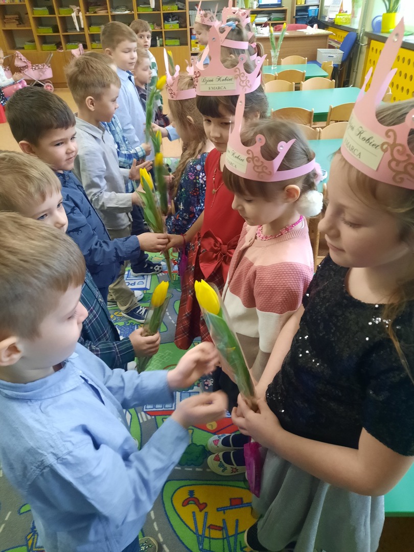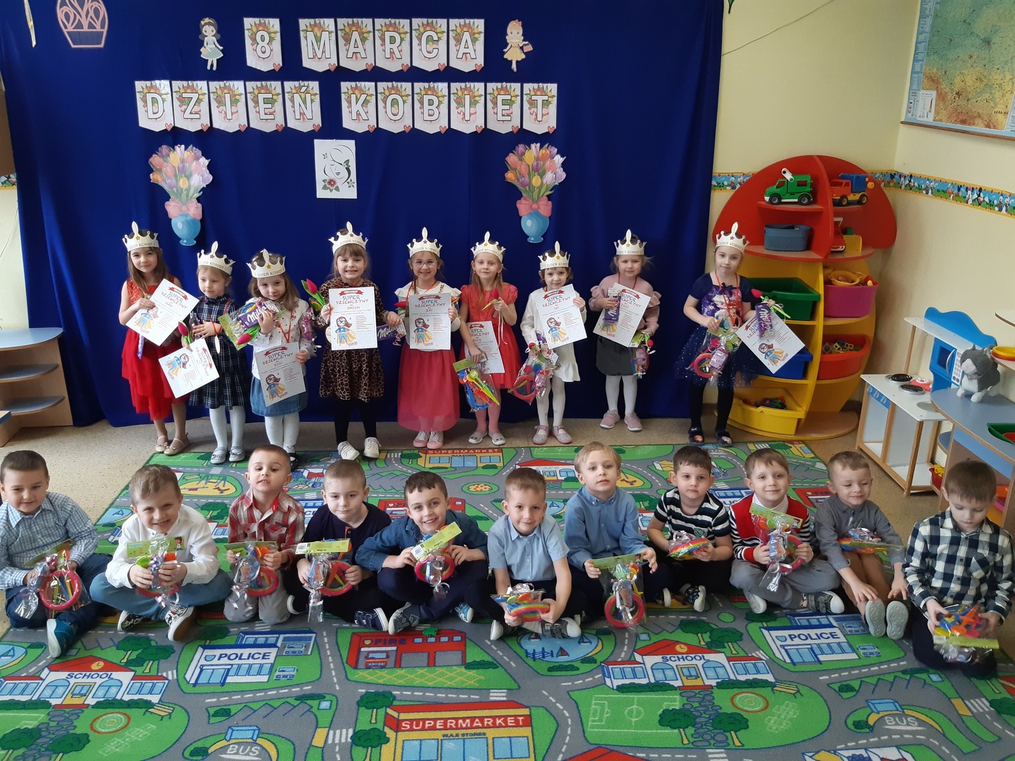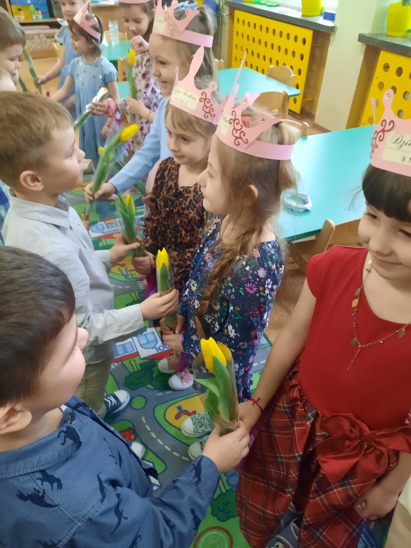 Dzień 8 marca to dzień wyjątkowy , ważny dla wszystkich kobiet, zarówno tych dużych, jak i małych,w związku z tym w każdej grupie przedszkolnej świętowaliśmy Dzień Kobiet .Radosna atmosfera panowała już od samego rana. Chłopcy ze szczególnym zaangażowaniem starali się, aby ten dzień uczynić wyjątkowo miłym. Zaśpiewali dla dziewczynek piosenki, złożyli życzenia, wręczyli kwiaty oraz drobne upominki. Cały dzień upłynął wszystkim w atmosferze uśmiechu i radości.