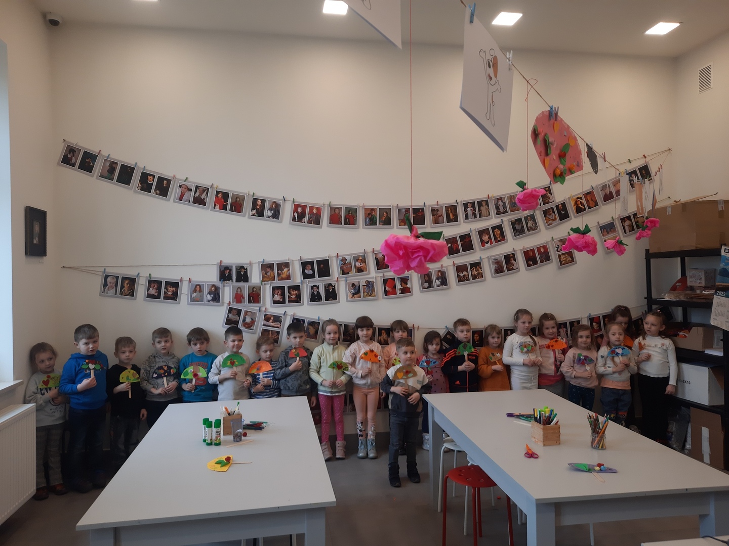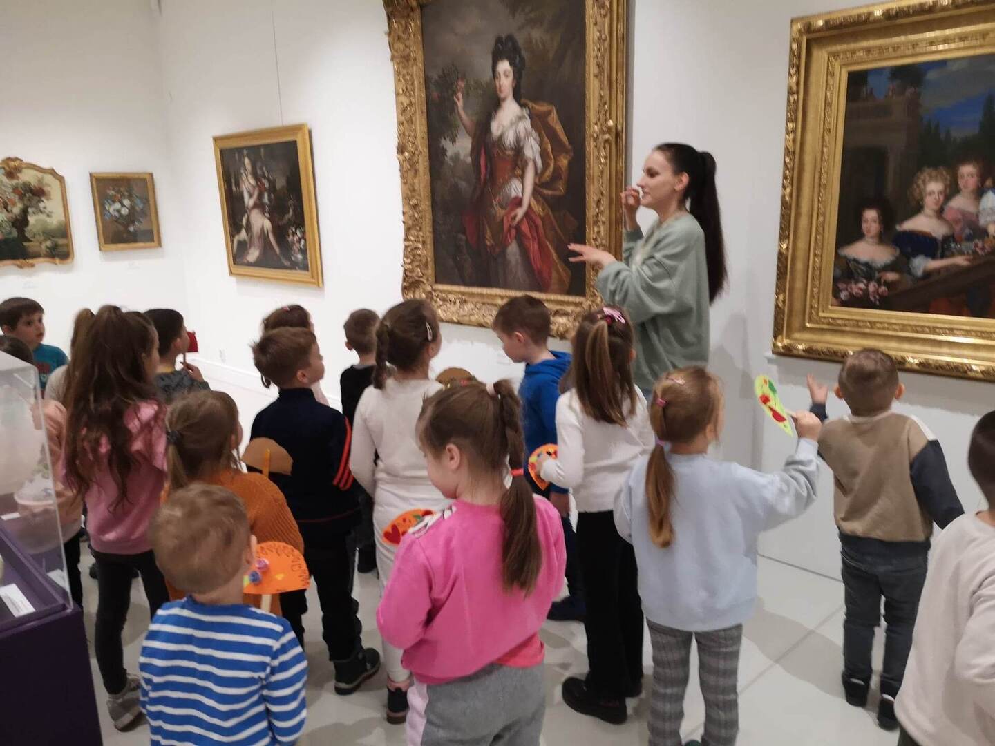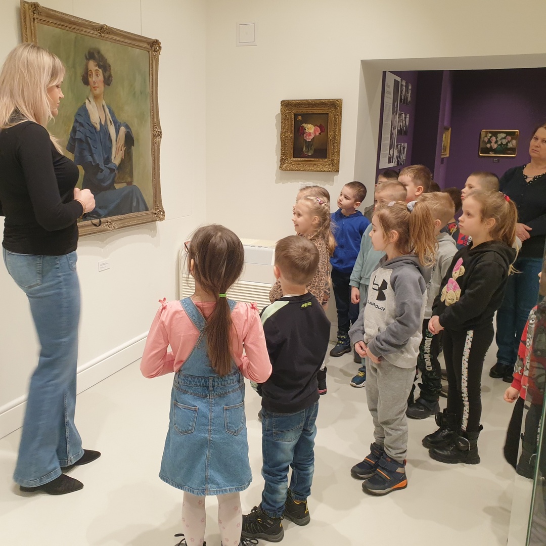 Dnia 15 marca 2023 roku dzieci z grupy „Sówki „i „Biedronki” wraz z opiekunami wybrały się na wycieczkę do Muzeum Regionalnego w Stalowej Woli. Przedszkolaki uczestniczyły w lekcji muzealnej -zobaczyły wystawę malarską ,której przewodnia fraza to : ile […] mieści się w jednym kwiecie róży i pochodzi z wypowiedzi malarza Alfonsa Karpińskiego. Dla większości przedszkolaków była to pierwsza wizyta w takim miejscu. Podczas lekcji dzieci dowiedziały się, co to jest muzeum, kto w nim pracuje, a także poznały znaczenie takich terminów, jak: eksponat, zabytek, galeria, wystawa czy dzieło sztuki. Wszyscy z zaciekawieniem oglądali ekspozycje muzealne, zobaczyły min. przepiękny eksponat-wachlarz ,który ma ok. 200lat. W drugiej części zajęć dzieci wykonały własny wachlarz z przygotowanych elementów,na każdym z nich znalazła się piękna papierowa różyczka. Wycieczka do muzeum stanowiła niezwykłą lekcję, która zapewne na długo pozostanie w pamięci naszych małych przedszkolaków.