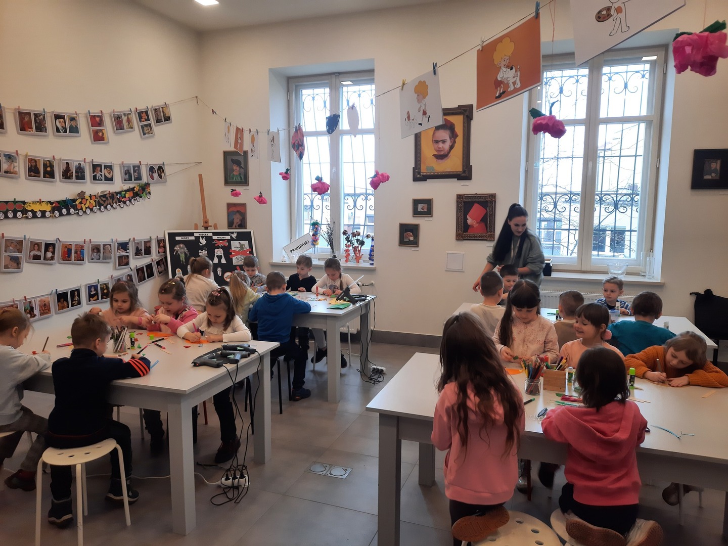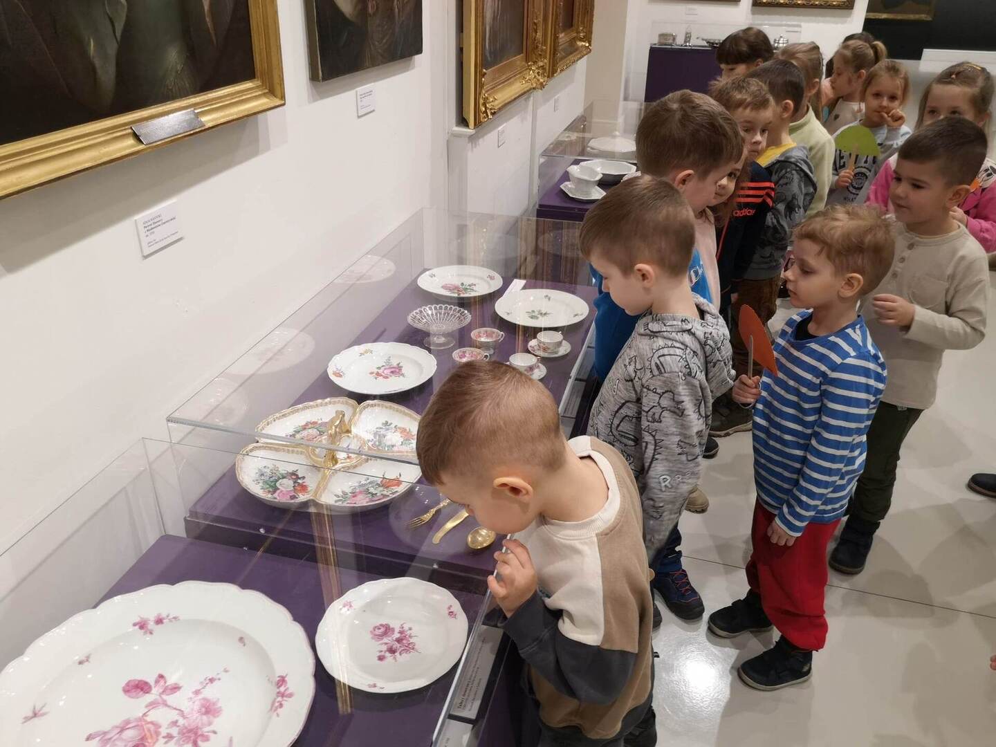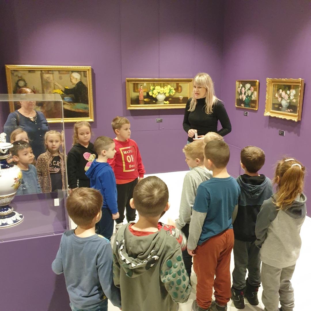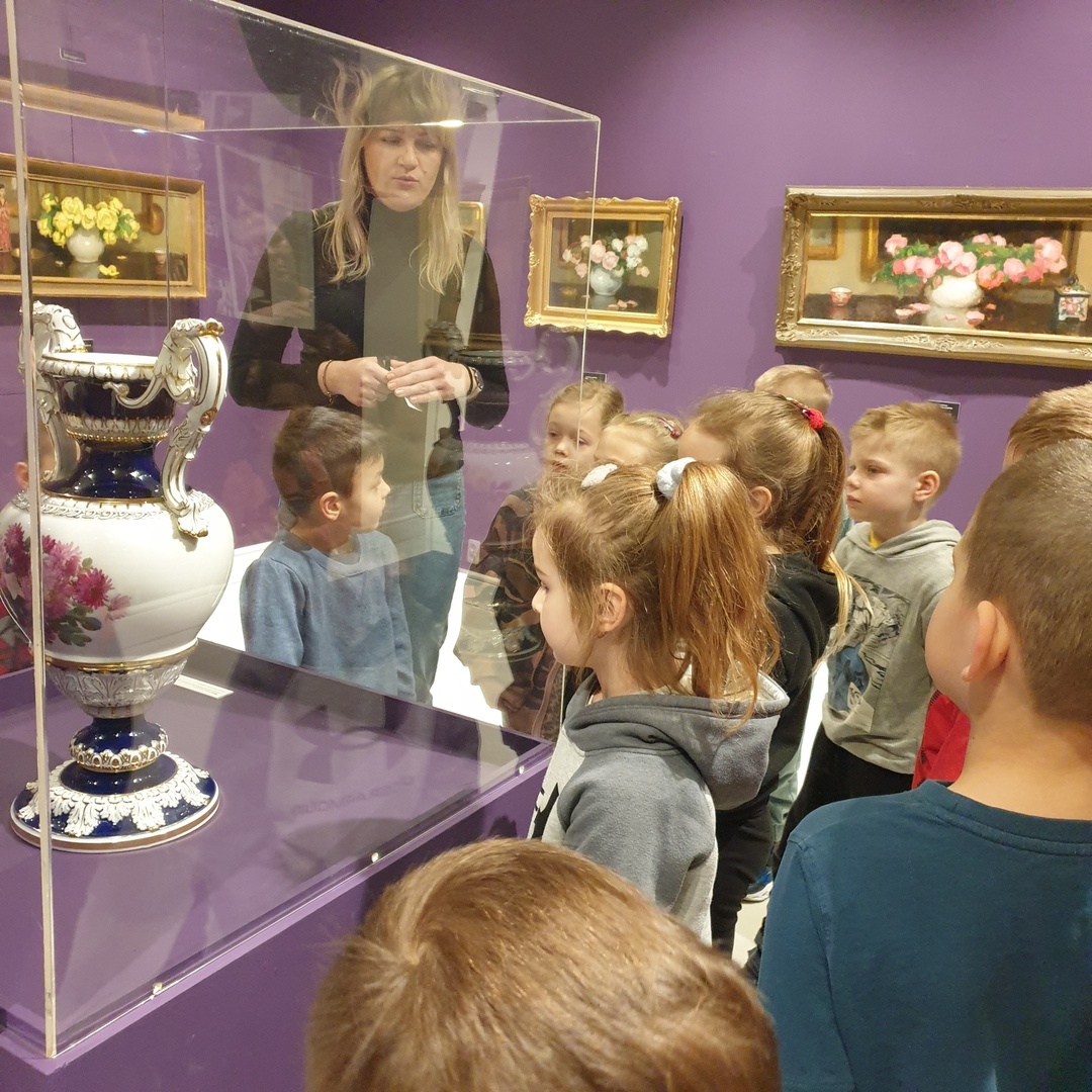 Dnia 15 marca 2023 roku dzieci z grupy „Sówki „i „Biedronki” wraz z opiekunami wybrały się na wycieczkę do Muzeum Regionalnego w Stalowej Woli. Przedszkolaki uczestniczyły w lekcji muzealnej -zobaczyły wystawę malarską ,której przewodnia fraza to : ile […] mieści się w jednym kwiecie róży i pochodzi z wypowiedzi malarza Alfonsa Karpińskiego. Dla większości przedszkolaków była to pierwsza wizyta w takim miejscu. Podczas lekcji dzieci dowiedziały się, co to jest muzeum, kto w nim pracuje, a także poznały znaczenie takich terminów, jak: eksponat, zabytek, galeria, wystawa czy dzieło sztuki. Wszyscy z zaciekawieniem oglądali ekspozycje muzealne, zobaczyły min. przepiękny eksponat-wachlarz ,który ma ok. 200lat. W drugiej części zajęć dzieci wykonały własny wachlarz z przygotowanych elementów,na każdym z nich znalazła się piękna papierowa różyczka. Wycieczka do muzeum stanowiła niezwykłą lekcję, która zapewne na długo pozostanie w pamięci naszych małych przedszkolaków.