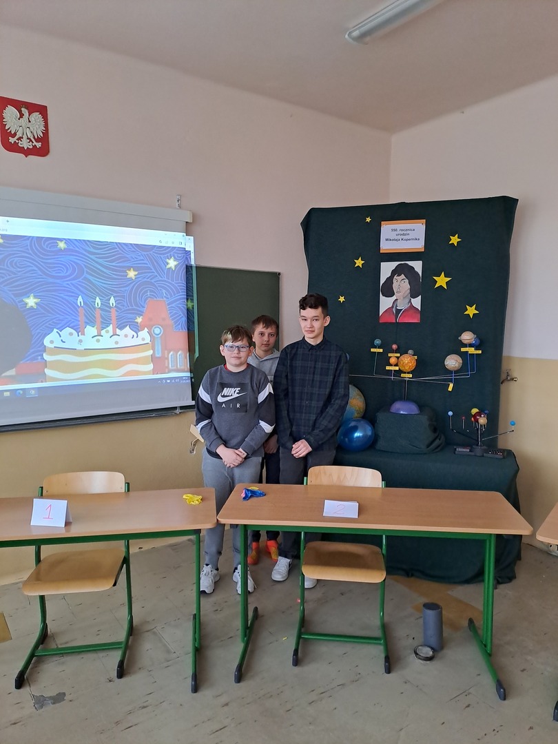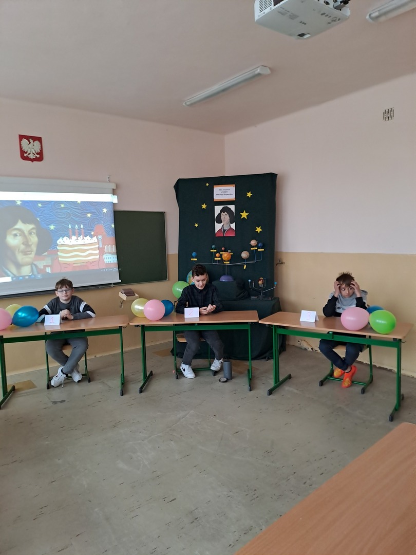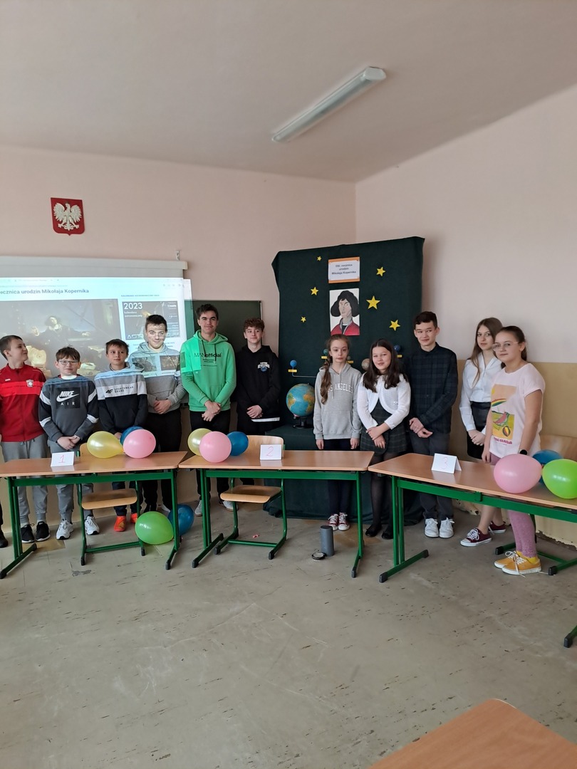 We wtorek 21 marca br. uczniowie z klas IV-VIII naszej szkoły mieli możliwość wziąć udział w konkursie wzorowanym na telewizyjnym teleturnieju „Jeden z dziesięciu". Konkurs był powiązany z obchodami 550 rocznicy urodzin Mikołaja Kopernika. Tematyka obejmowała wiadomości o życiu i twórczości naukowej słynnego astronoma. Konkurs spotkał się z dużym zainteresowaniem ze strony uczniów. Do udziału w konkursie zgłosiło się 24 uczniów. W poniedziałek 20 marca, na drodze wstępnych eliminacji, wyłoniono 10 zawodników, którzy przeszli do konkursu. Byli to: Nikola Herbet, Sara Chmura, Oliwia Wróblewka, Antoni Iskra, Tomasz Chabucki, Krystian Łątka, Karol Olszewski, Kamil Weremijewicz, Wiktoria Torba i Hubert Wróblewski. Wszyscy byli świetnie przygotowani i walka pomiędzy uczestnikami była bardzo zacięta. Do finału przeszli: Antoni Iskra z klasy VI b, Kamil Weremijewicz z klasy VII oraz Hubert Wróblewski z klasy VIII. Zwycięzcą teleturnieju został ex quo Antoni Iskra i Hubert Wróblewski. Drugie miejsce zajął Kamil Weremijewicz. Zwycięzcom oraz wszystkim uczestnikom konkursu gratulujemy poziomu wiedzy!