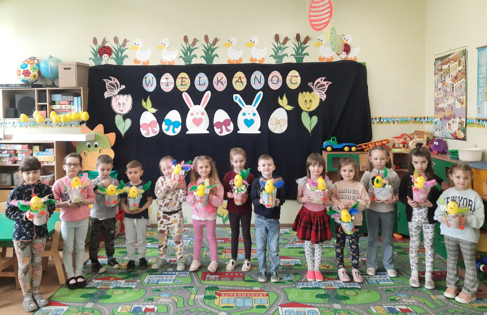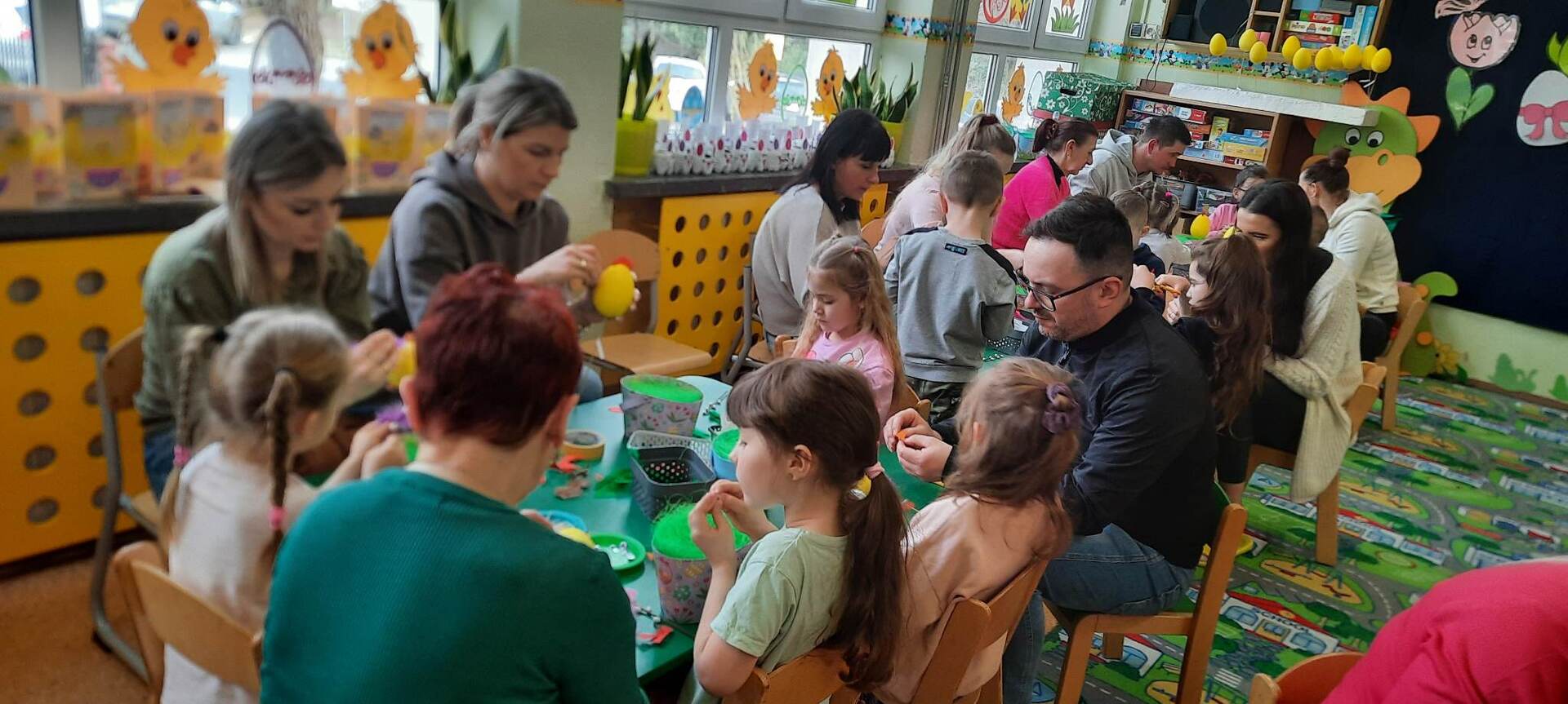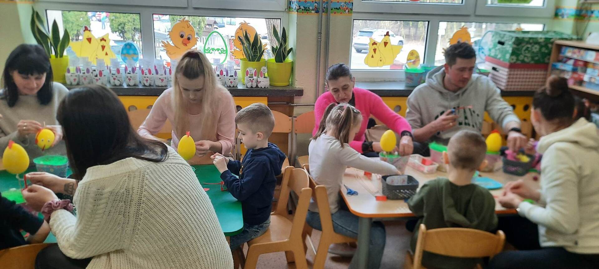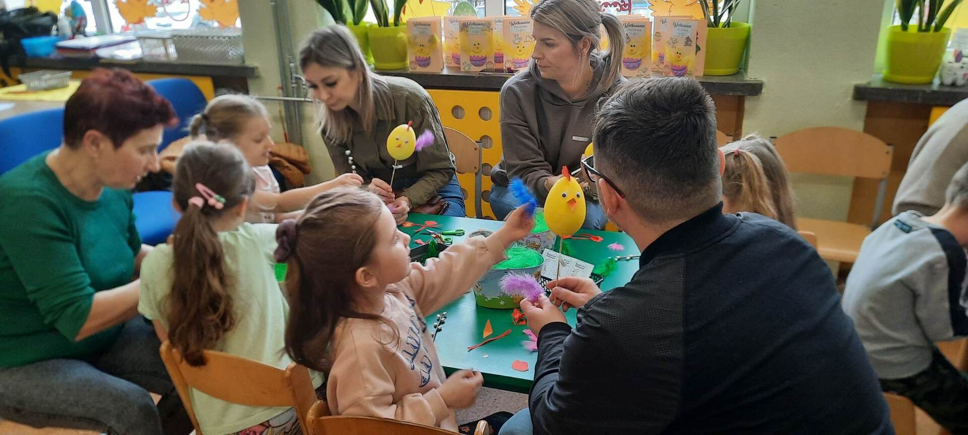 Dnia 31 marca 2023 roku w naszym przedszkolu w grupie ,,Biedronki” odbyły się zajęcia otwarte dla rodziców i warsztaty plastyczne .Zajęcia otwarte dla rodziców to jedna z form współpracy przedszkola z rodzicami, w czasie której mają oni okazję zapoznać się między innymi ze sposobami pracy dydaktyczno - wychowawczej oraz przekonać się, jak wiele ich pociechy już potrafią zrobić. Podczas zajęć dzieci zdobyły nowe wiadomości dotyczące tradycji obchodzenia świąt wielkanocnych ,słuchały opowiadania ,rozwiązywały zagadki i przeliczały jajka. Nie zabrakło też wspólnej zabawy muzyczno – ruchowej do piosenki pt. ,,Kurki” oraz prezentacji wierszy i piosenek o tematyce świątecznej. Następnie dzieci z rodzicami , z ogromnym zaangażowaniem, tworzyli piękne kurki oraz ozdabiali koszyki. We wspaniałym gronie, serdecznej atmosferze powstało bardzo dużo niepowtarzalnych dekoracji świątecznych. Wszyscy wykazali się kreatywnością i pomysłowością. Organizatorzy:Agnieszka Krawiec,Justyna Sienicka