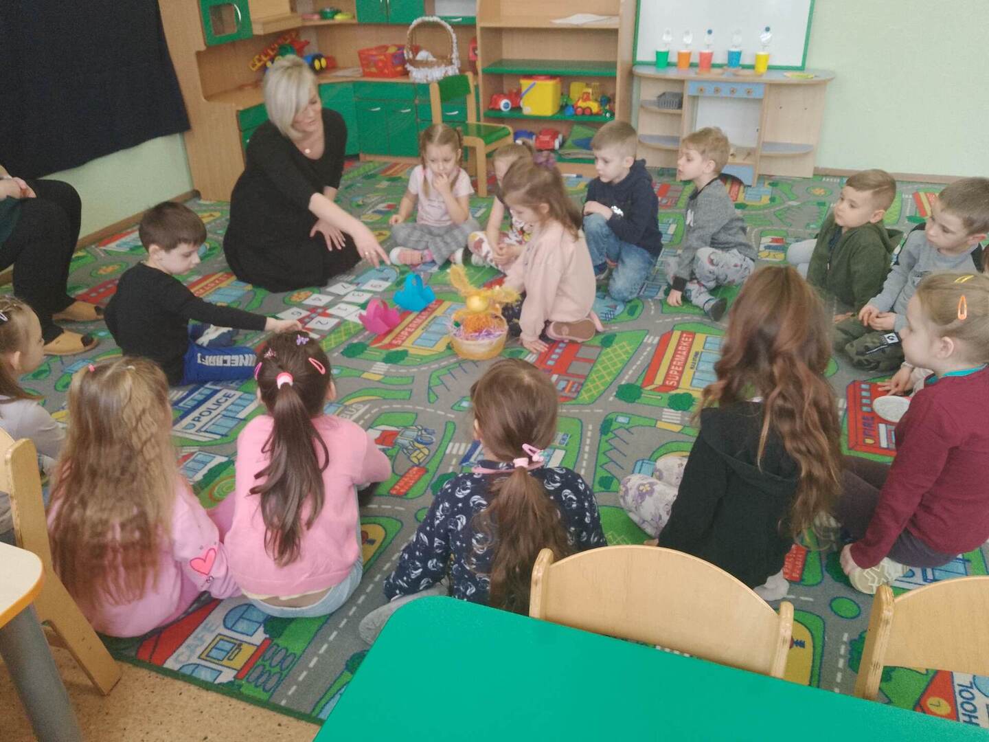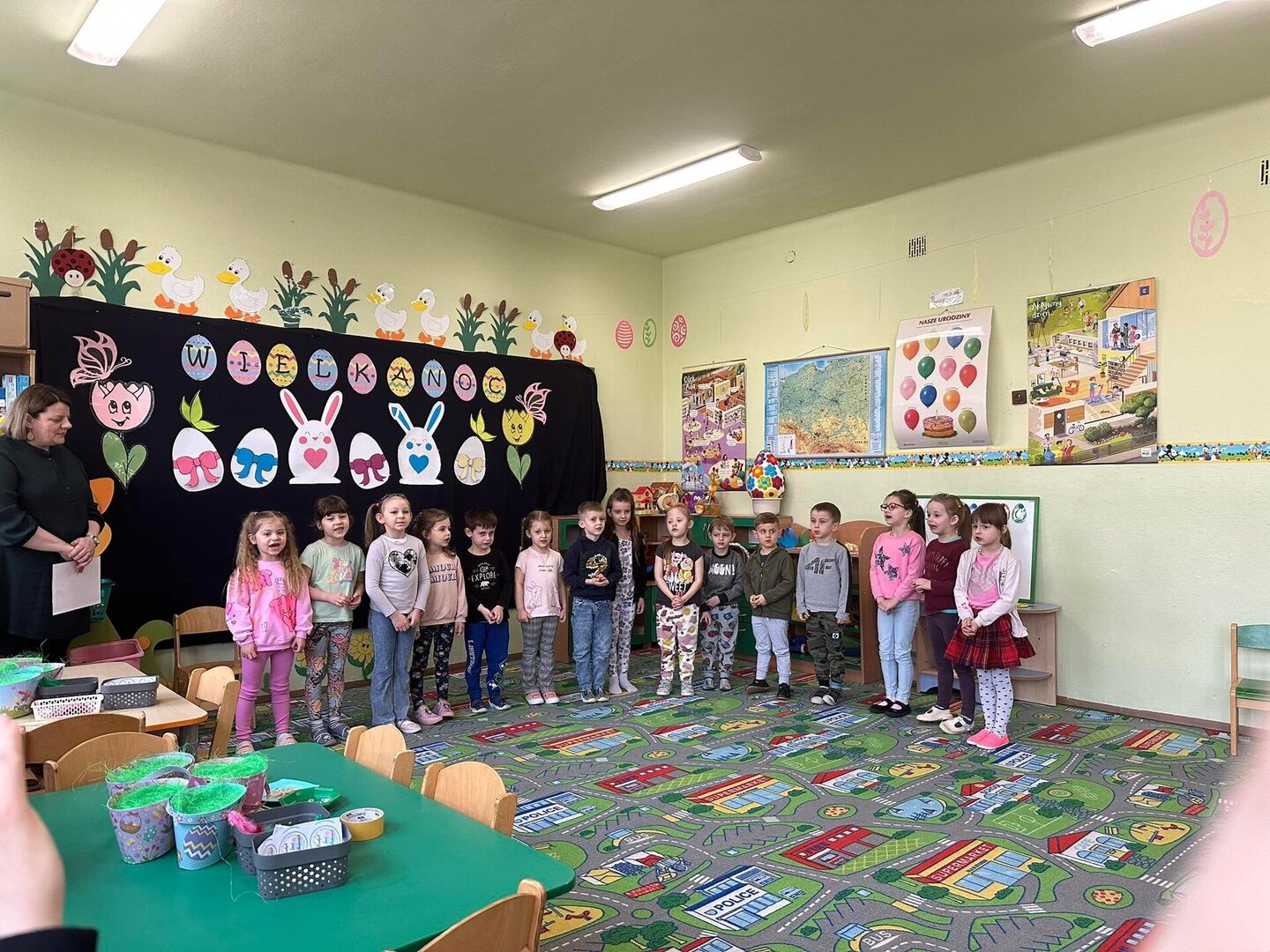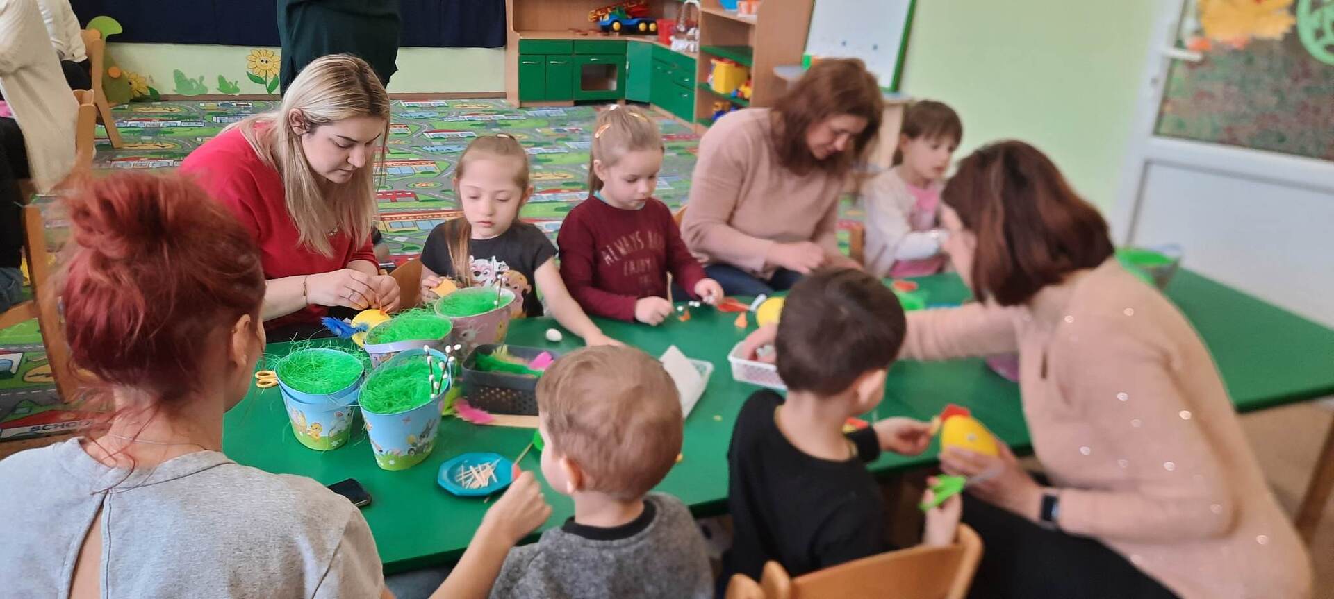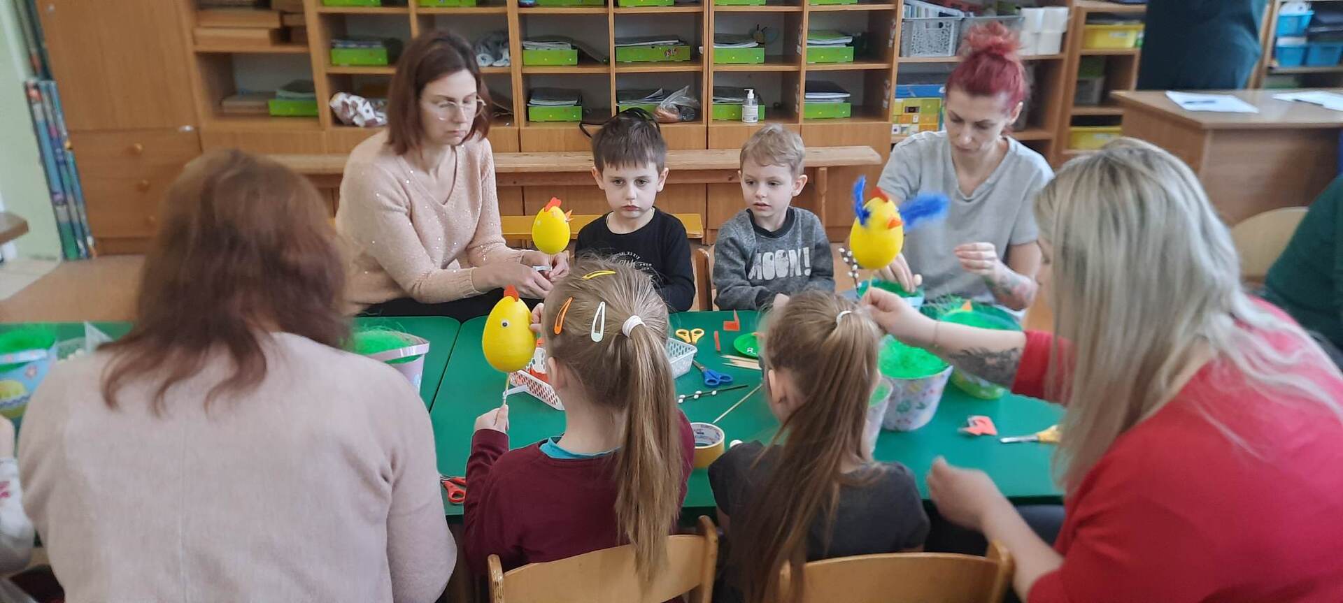 Dnia 31 marca 2023 roku w naszym przedszkolu w grupie ,,Biedronki” odbyły się zajęcia otwarte dla rodziców i warsztaty plastyczne .Zajęcia otwarte dla rodziców to jedna z form współpracy przedszkola z rodzicami, w czasie której mają oni okazję zapoznać się między innymi ze sposobami pracy dydaktyczno - wychowawczej oraz przekonać się, jak wiele ich pociechy już potrafią zrobić. Podczas zajęć dzieci zdobyły nowe wiadomości dotyczące tradycji obchodzenia świąt wielkanocnych ,słuchały opowiadania ,rozwiązywały zagadki i przeliczały jajka. Nie zabrakło też wspólnej zabawy muzyczno – ruchowej do piosenki pt. ,,Kurki” oraz prezentacji wierszy i piosenek o tematyce świątecznej. Następnie dzieci z rodzicami , z ogromnym zaangażowaniem, tworzyli piękne kurki oraz ozdabiali koszyki. We wspaniałym gronie, serdecznej atmosferze powstało bardzo dużo niepowtarzalnych dekoracji świątecznych. Wszyscy wykazali się kreatywnością i pomysłowością. Organizatorzy:Agnieszka Krawiec,Justyna Sienicka