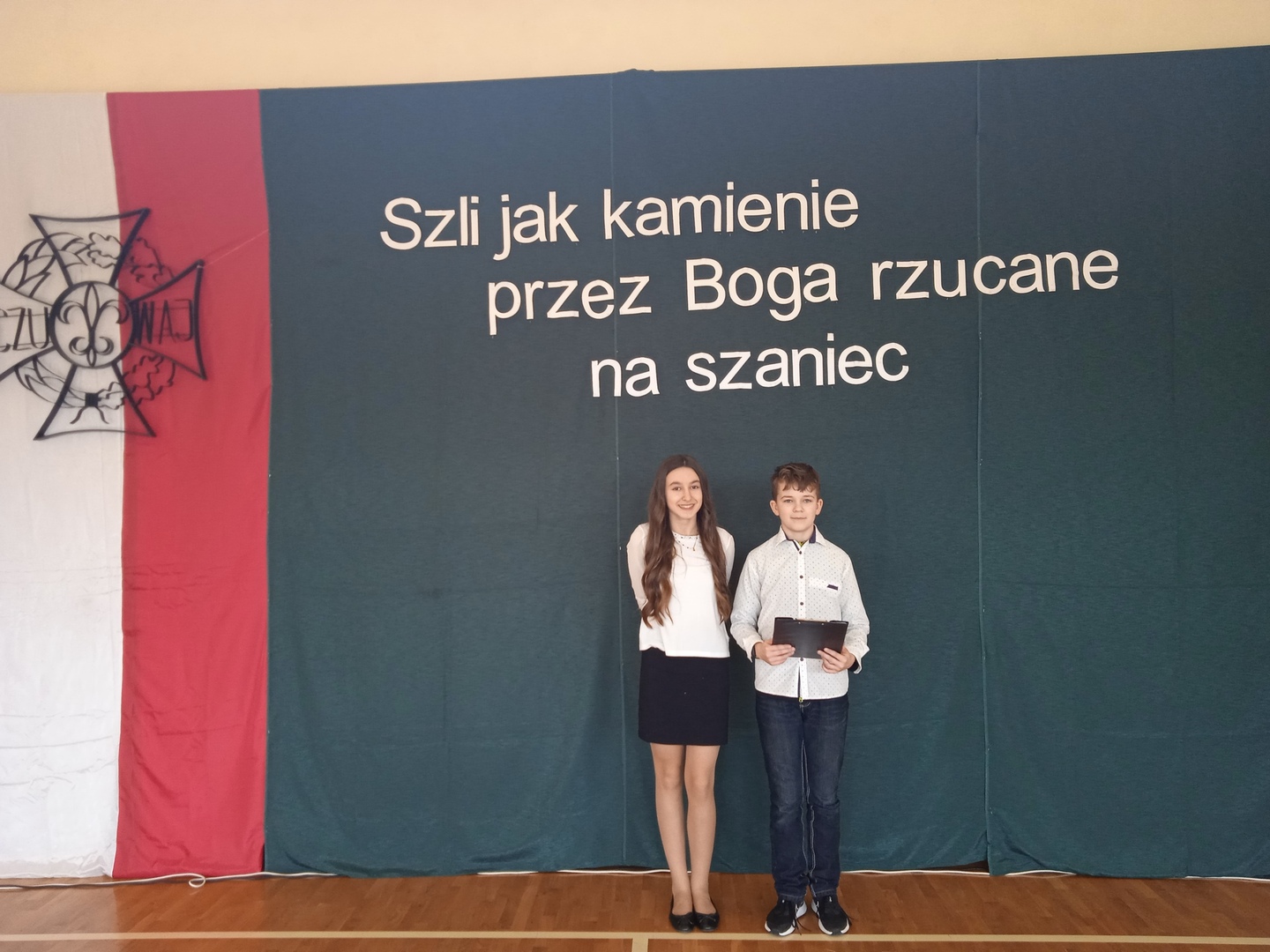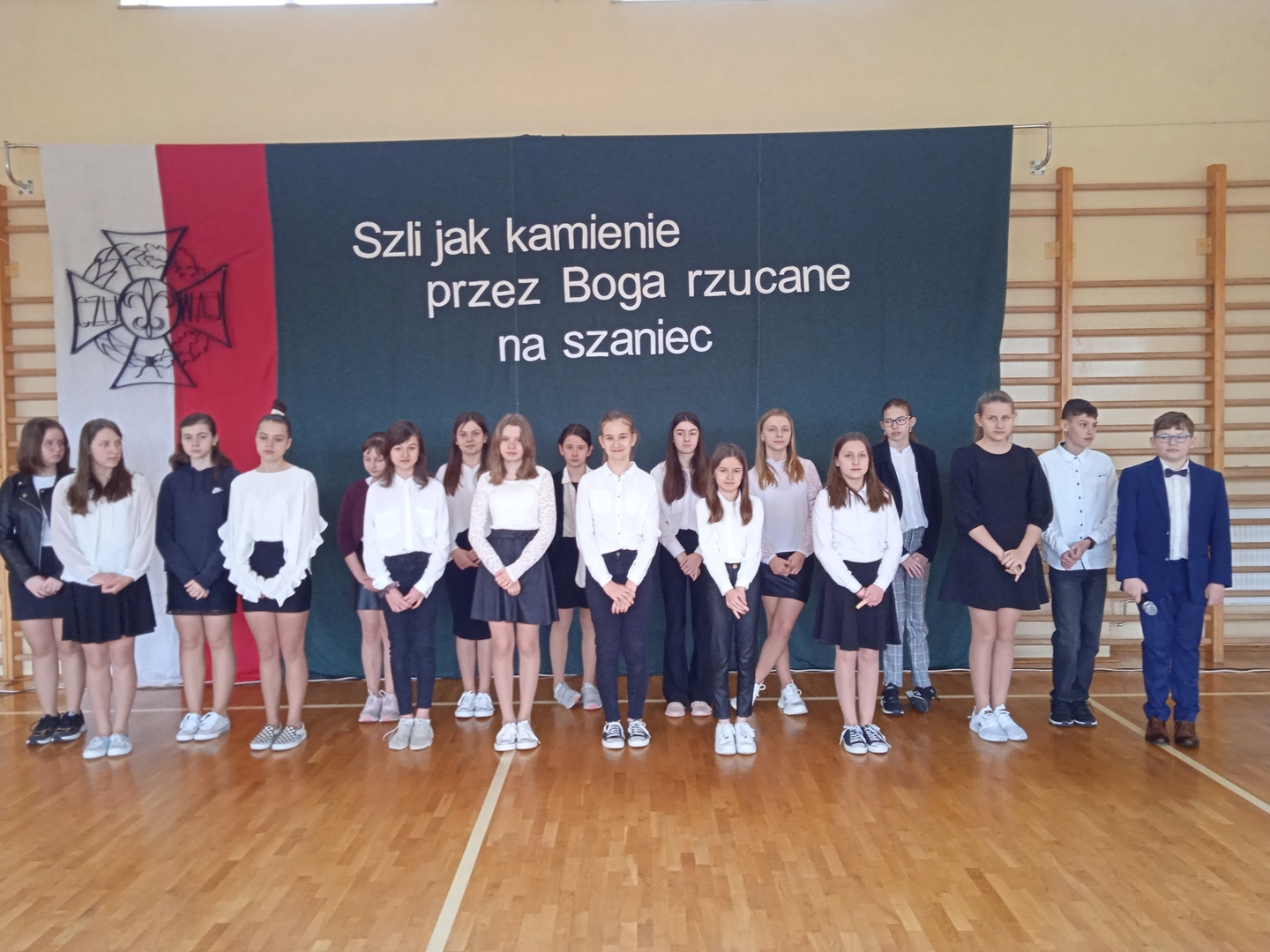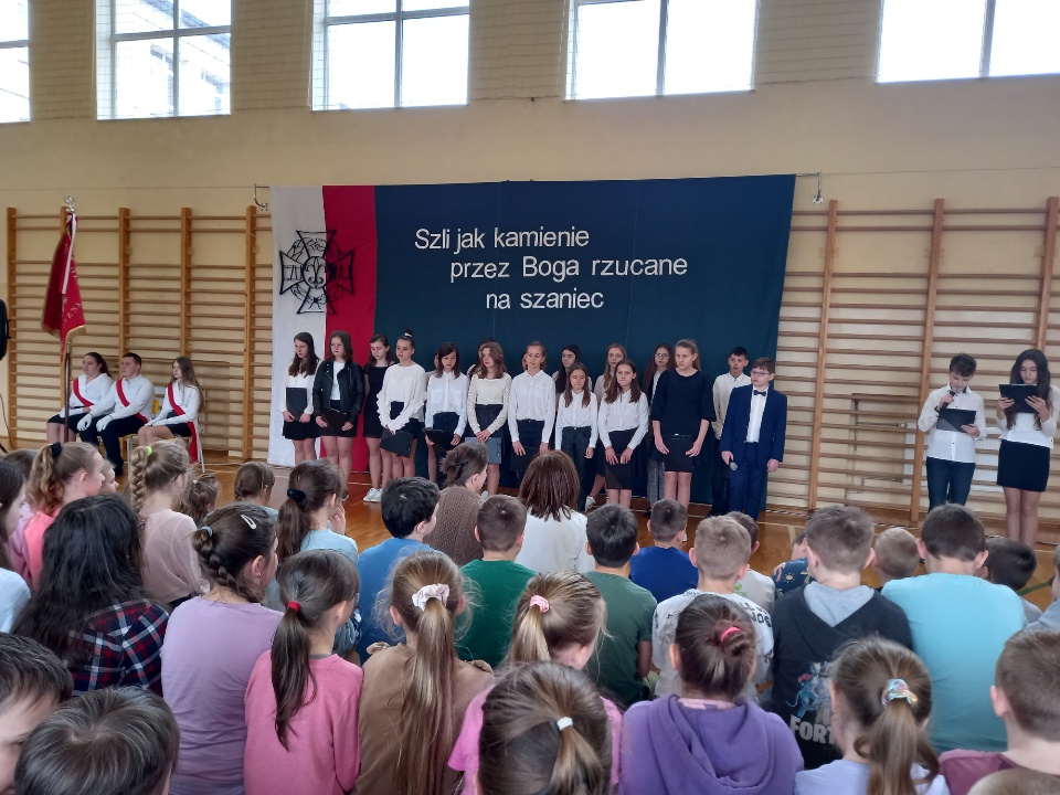 Dni 31 marca 2023 roku uczniowie klasy 5 oraz klasy 6b upamiętnili akademią 19 rocznicę nadania Zespołowi Szkół w Lipie imienia Szarych Szeregów oraz otrzymania przez naszą placówkę sztandaru, którego zaszczytną funkcję matki i ojca chrzestnego piastowali wówczas śp. pani Janina Hawrylinka i śp. pan kapitan Melchior Batorski. Zebrani minutą ciszy uczcili tych, którzy odeszli. Prowadzący, Martyna i Szymon, oraz recytatorzy zobrazowali nam mroczny czas okupacji . Mówili i śpiewali o harcerzach, którzy nie zawahali się poświęcić swojego młodego życia, by Polska- ich umiłowana Ojczyzna- mogła znowu żyć. Najwierniej hołd obrońcom kraju oddały słowa piosenki harcerskiej „Cześć, braciom poległym za kraj!”.