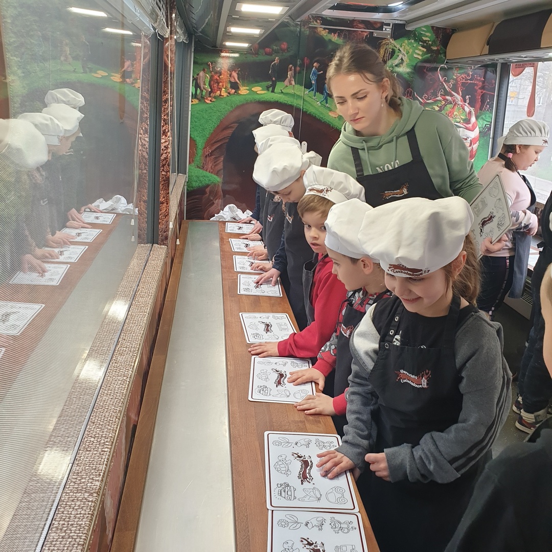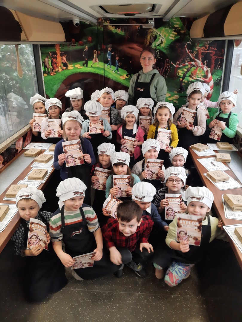 Warsztaty kulinarne,które odbyły się 3 kwietnia 2023 roku zostały zorganizowane przy wsparciu Rady Rodziców przedszkola.Autobus pojawił się u nas, aby przekazać dzieciom wiedzę na temat różnych rodzajów czekolady oraz jak odróżniać czekoladę zdrową od wyrobu czekoladopodobnego.Był to wspaniały pomysł na zabawę, edukację oraz czekoladową integrację.Najlepszym dowodem na to ,że przedszkolaki miło i pożytecznie spędziły czas był „słodki – czekoladowy” uśmiech na twarzy każdego uczestnika warsztatów.Dziękujemy Radzie Rodziców przedszkola za tę inicjatywę.