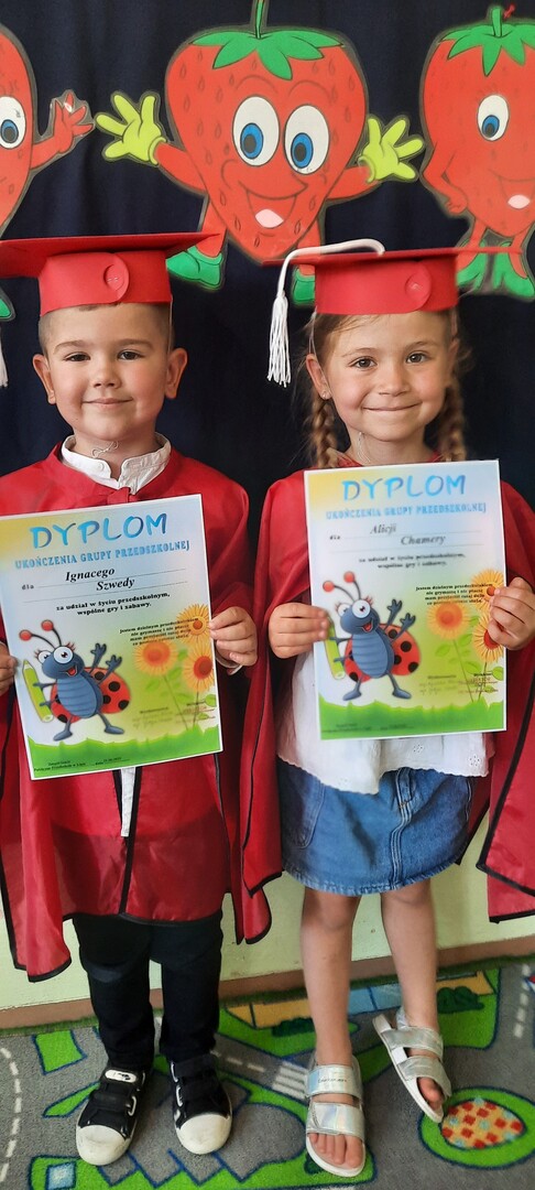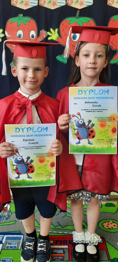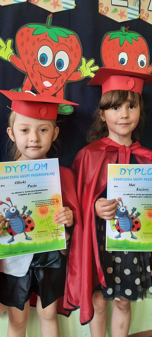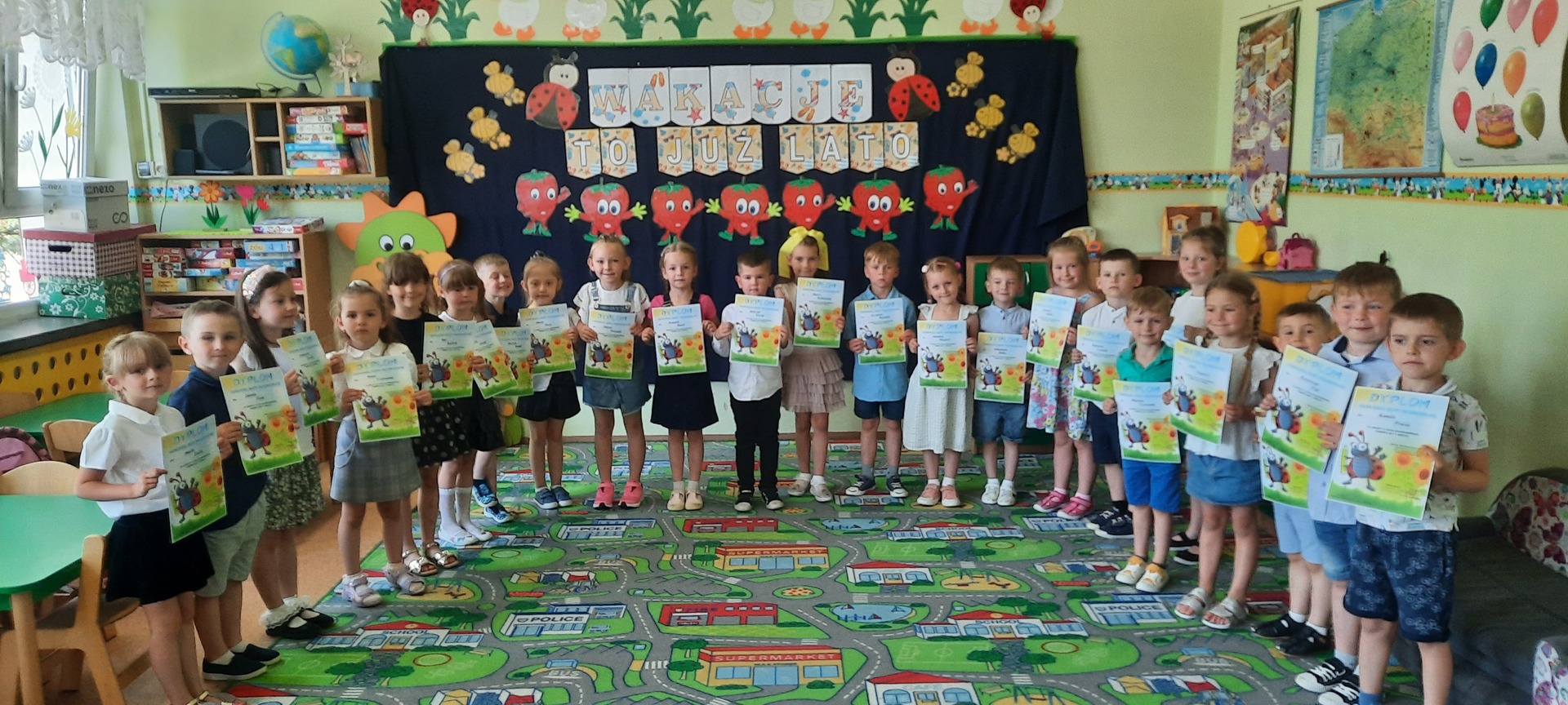 Dziś żegnamy swe przedszkole, Bo czas myśleć już o szkole…. „ W środę 21.06.2023r. o godz. 10:00 odbyła się uroczystość Zakończenie Roku przedszkolnego wraz z pożegnaniem Zerówki. Dziesięć miesięcy wspólnych zabaw i zajęć, podróży po porach roku i wycieczek szybko minęło, aż nadszedł czas wakacji i pożegnań. W uroczystości zakończenia roku uczestniczyli również rodzice. Starszaki dostojnie prezentowały swoje umiejętności artystyczne, recytatorskie i taneczne. Po występach wszystkie sześciolatki otrzymały z rąk pań Dyrektorek dyplomy. Po części artystycznej przyszedł czas podziękowanie dla rodziców, którzy byli zaangażowani w działania przedszkola. Kolejni absolwenci opuścili mury naszego przedszkola, by po wakacjach rozpocząć naukę w klasie pierwszej, życzymy im wielu sukcesów i spełnienia marzeń oraz bezpiecznych i radosnych wakacji.