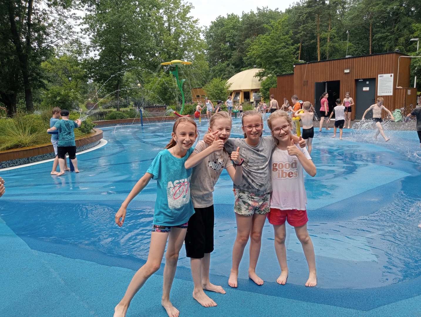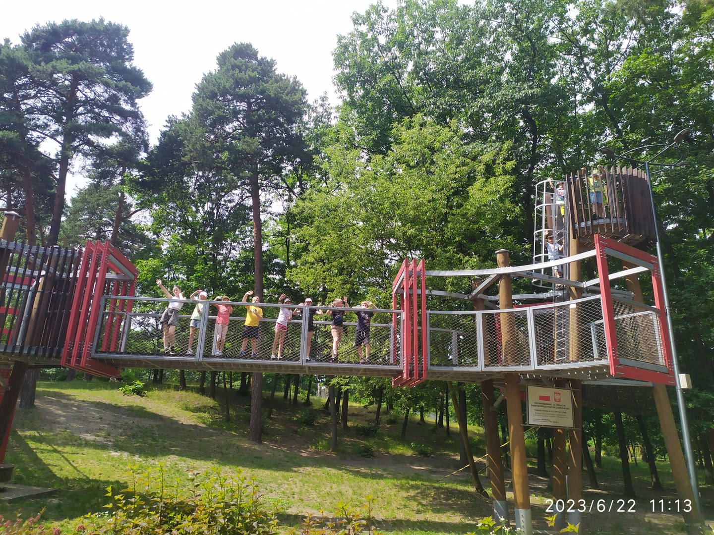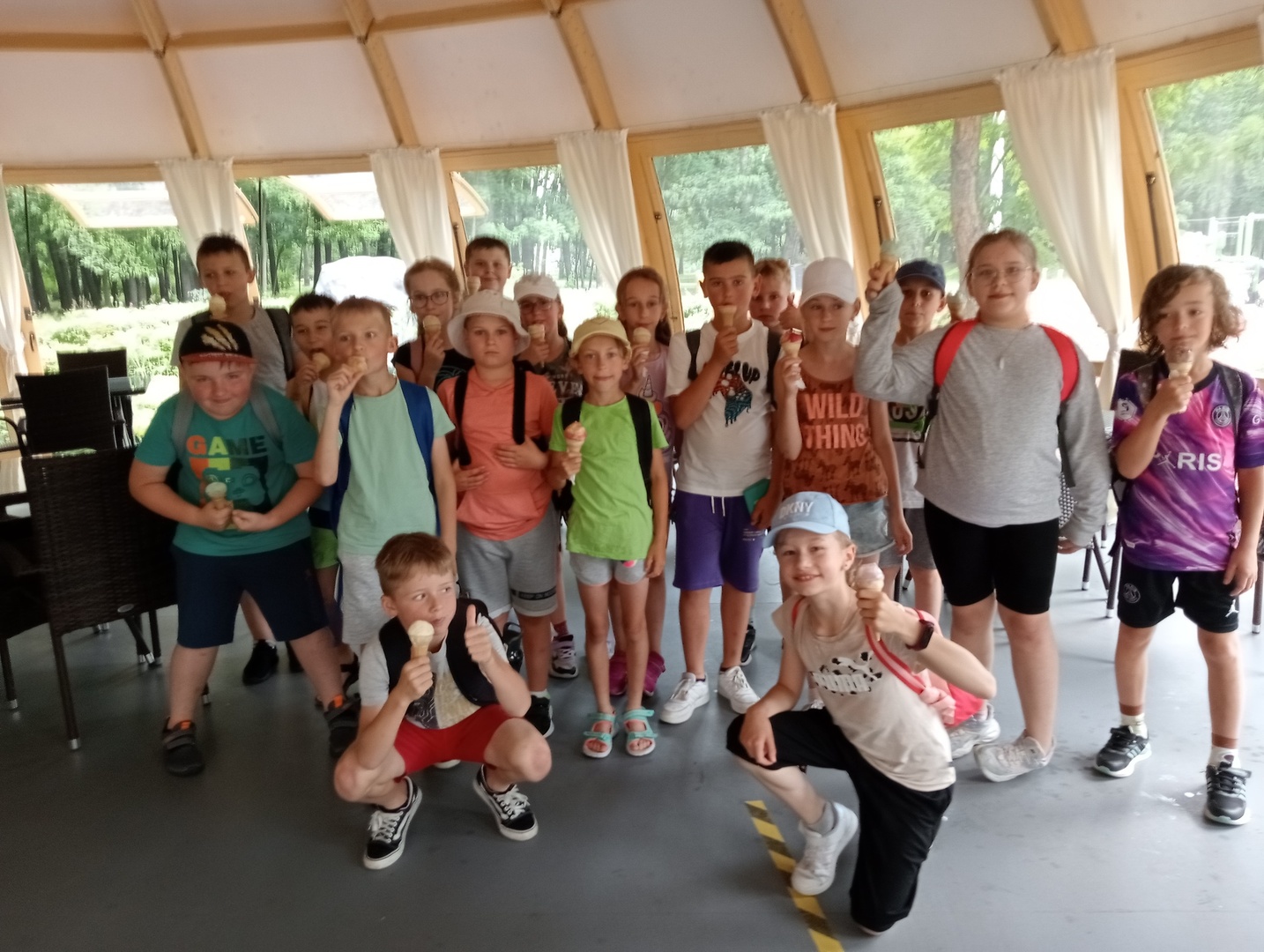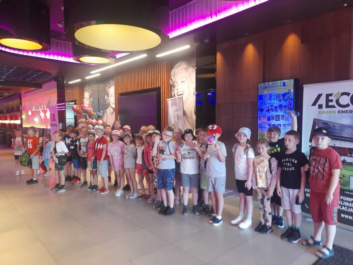 22 czerwca br. uczniowie klas 1 – 3 oraz klasy 4 i 5 Szkoły Podstawowej wybrali się do kina na seans filmowy pt. „Super Mario Bross”. Widzów zachwyciły animowane postacie i głośna muzyka. Dzieci wczuwały się w role odgrywanych bohaterów filmowych i z uwagą śledziły ich przygody. Film dostarczył wielu niezapomnianych wrażeń. Kolejnym punktem wyjazdu dla starszych uczniów był park linowy w parku miejskim. Sprytni uczniowie pokonali trasę kilkukrotnie. Celem wyjazdu była integracja dzieci, których łączyła miła atmosfera ułatwiająca koleżeńskie kontakty. Wychowawcy