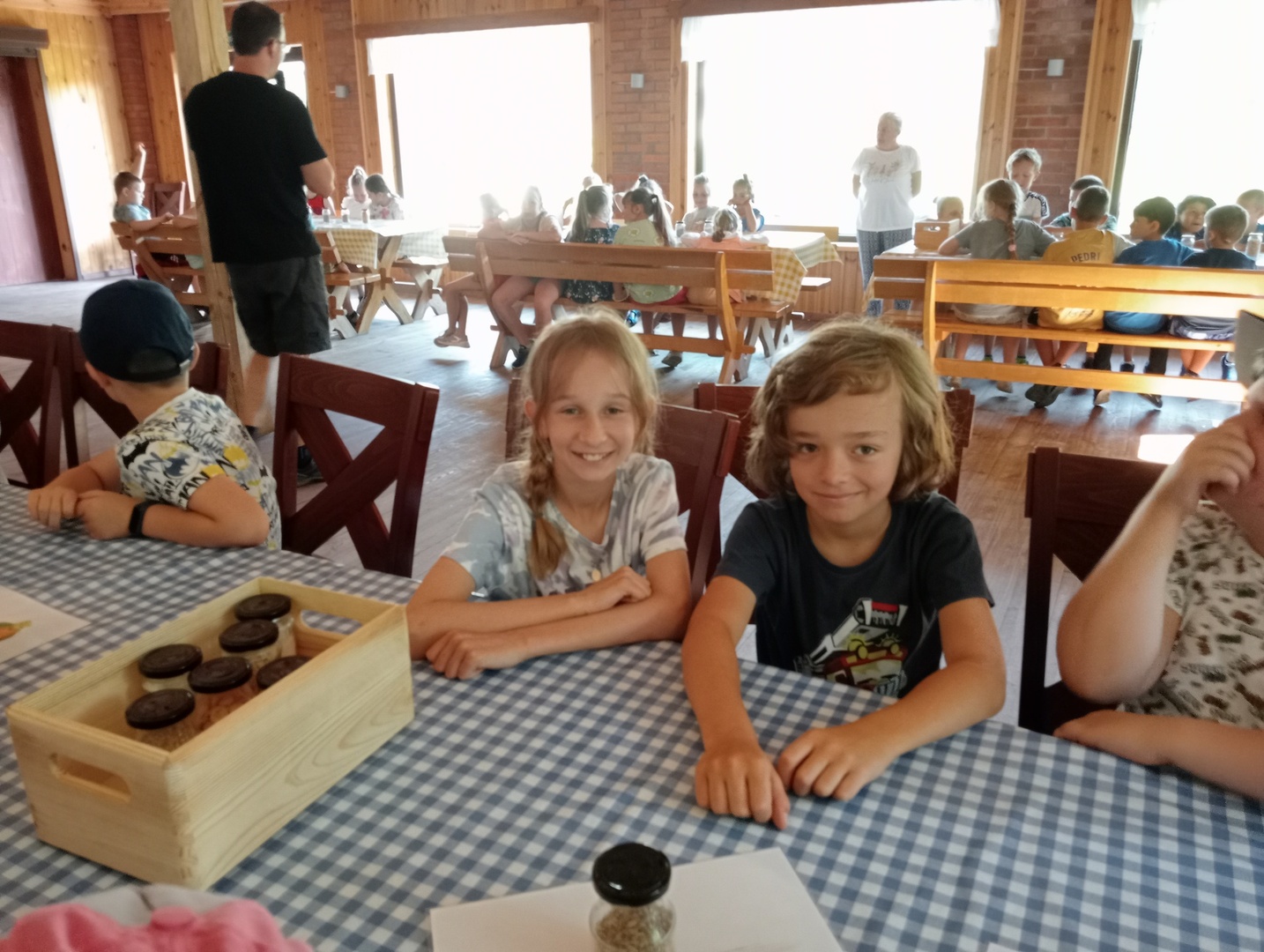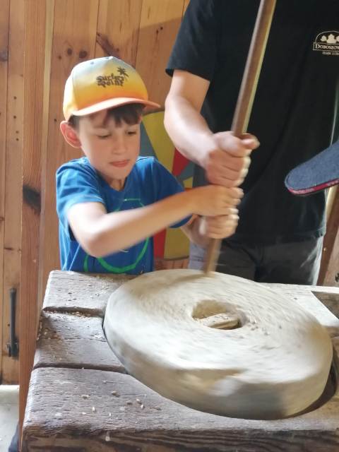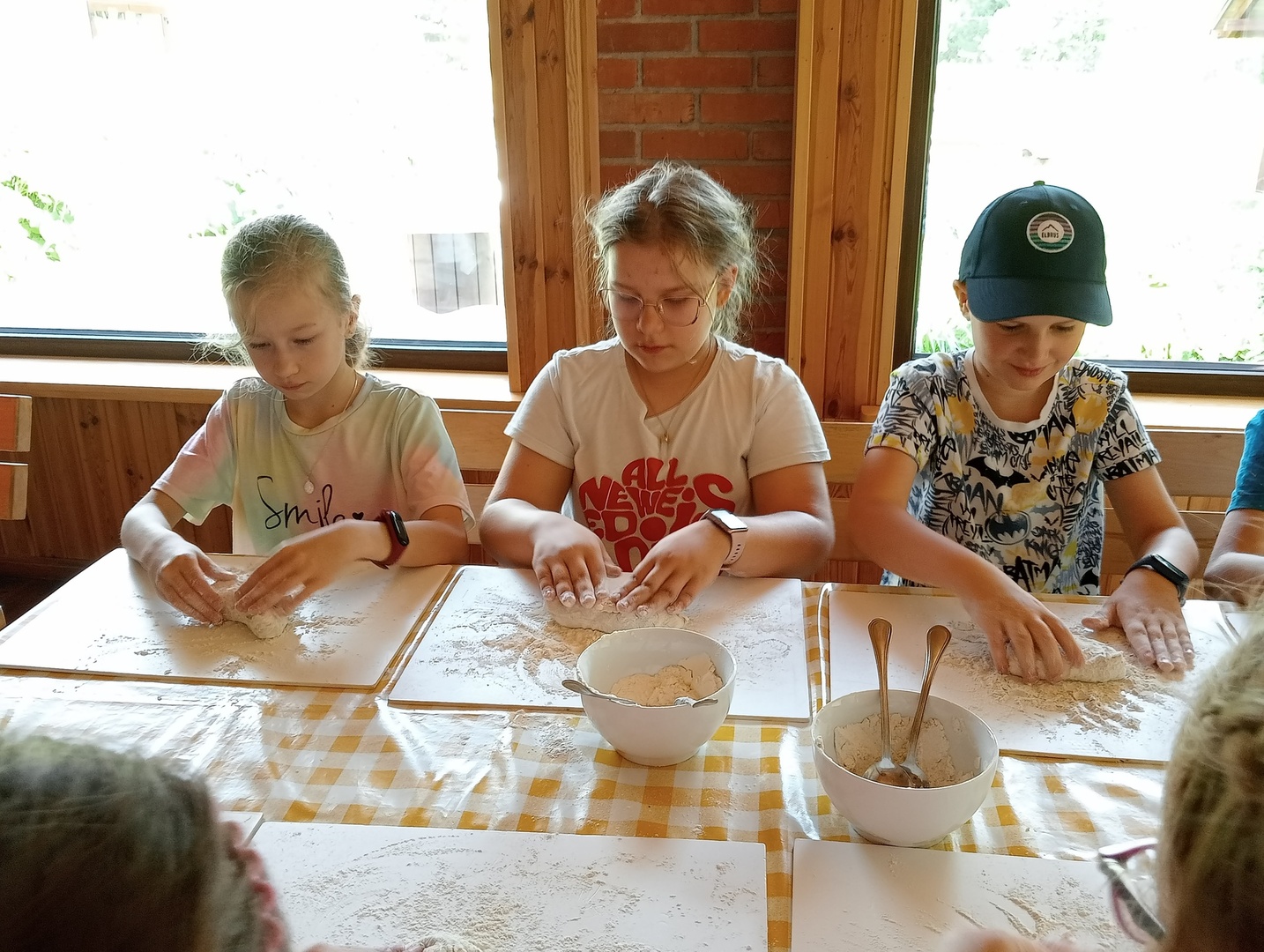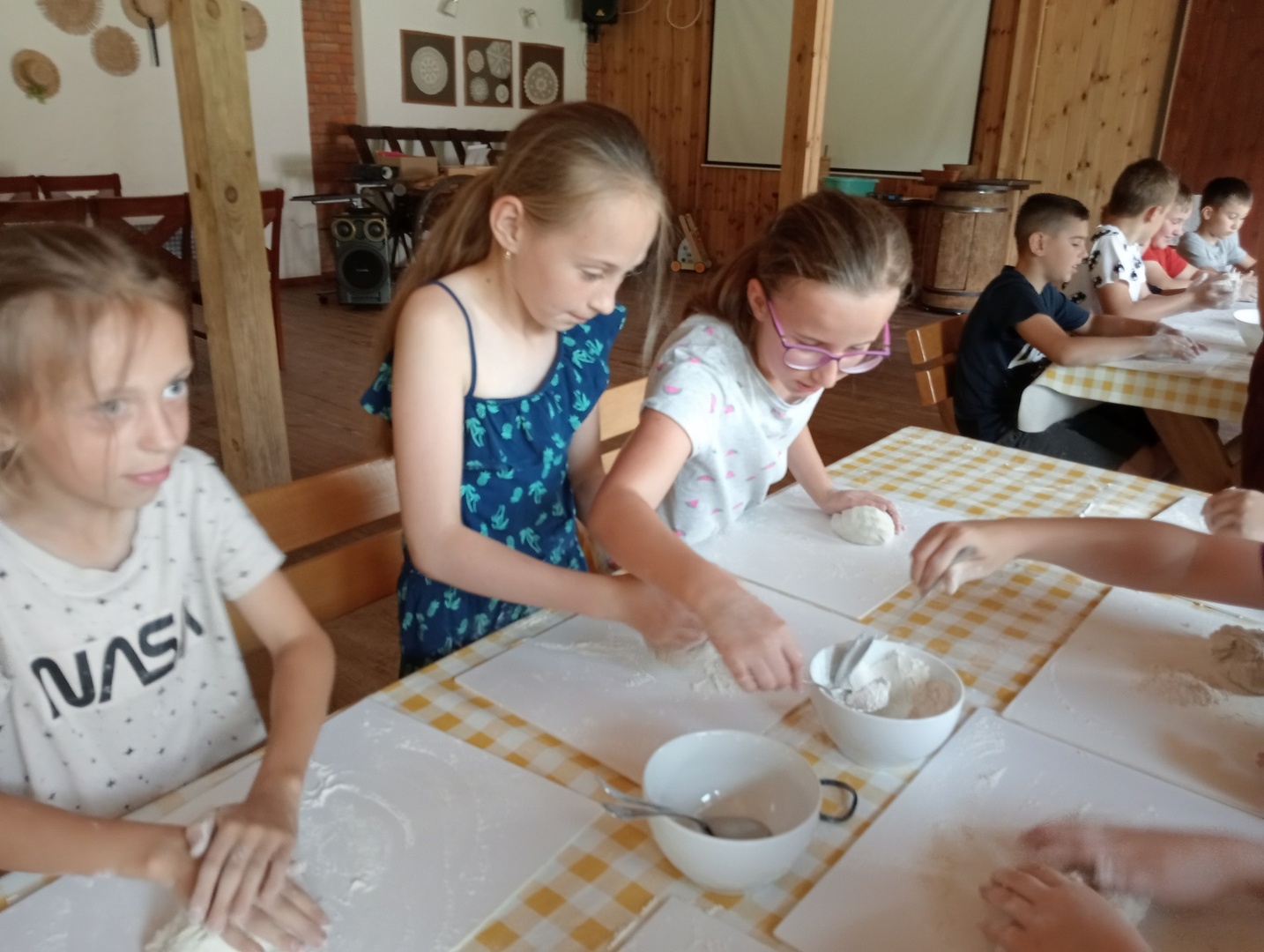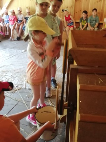 W dniu 21 czerwca 2023r uczniowie klas I, II i III SP udali się na wycieczkę do Zagrody Edukacyjnej ,,Doboszówka” ,aby uczestniczyć w warsztatach pt. ,, Od ziarenka do bochenka”, doświadczyć prawdziwego życia na wsi, poznać ginące zawody, obcować ze zwierzętami i być blisko natury. Podczas warsztatów uczniowie poznali cały proces powstawania chleba , rodzaje zbóż, pracę rolnika podczas żniw, mieli okazję wyrobić z mąki i przygotowanego ciasta prawdziwe bochenki chleba. Dodatkowo dzieci ubijały masło, które później miały okazję kosztować z pysznym wiejskim chlebem. Doświadczyły namiastki takich prac jak: młócenie , mielenie ziaren na mąkę tradycyjnymi narzędziami. Były także zabawy przy muzyce z animatorką ruchu, zajęcia sprawnościowe na parku linowym i podziwianie zwierząt w mini- zoo. Na koniec dzieci zajadały się naleśnikami z owocowym kompotem. To była prawdziwa przygoda na wsi. Organizatorzy wycieczki : p. Beata Chmielewska, p. Teresa Kalinka i p. Renata Kołtun.
