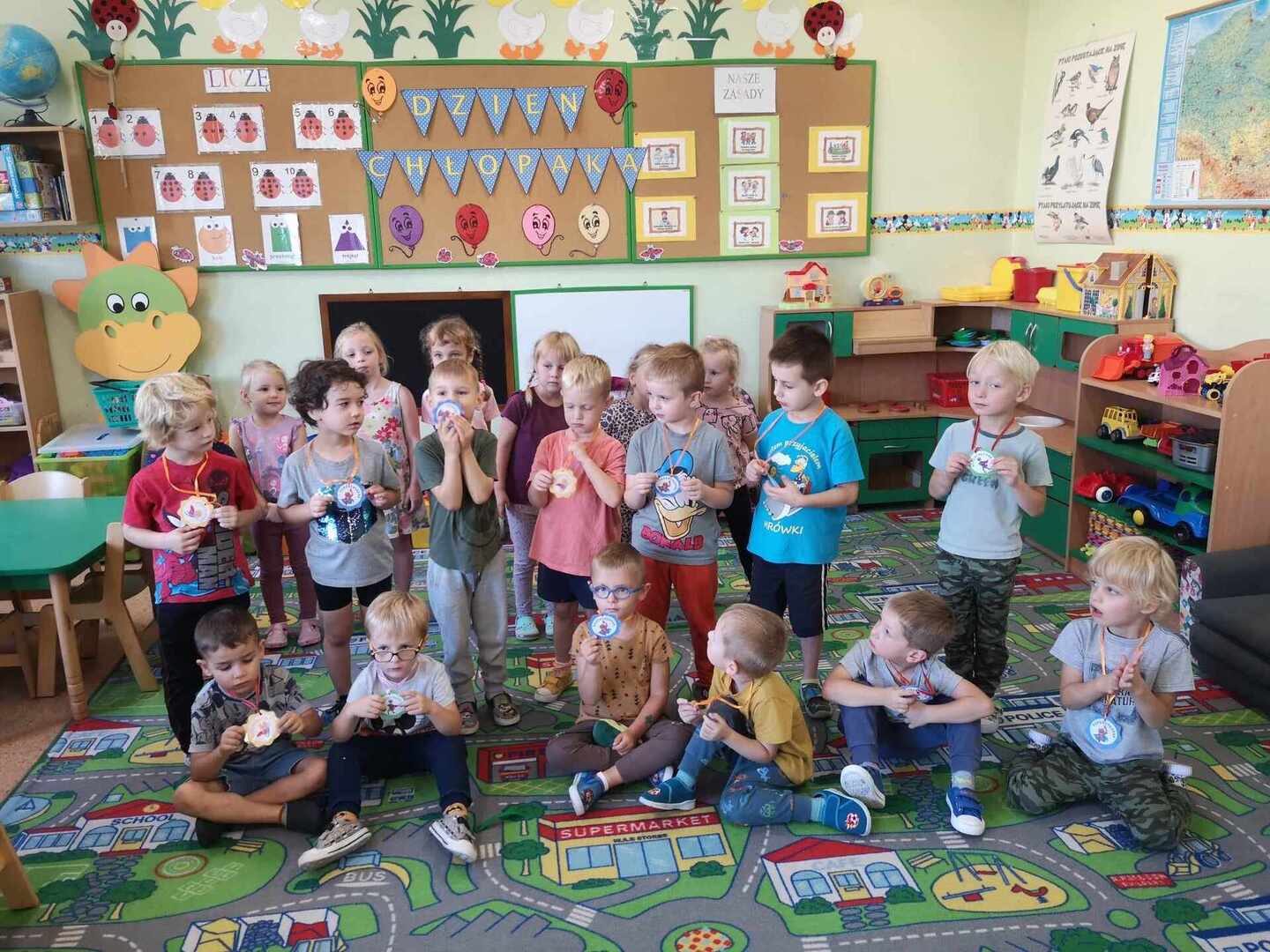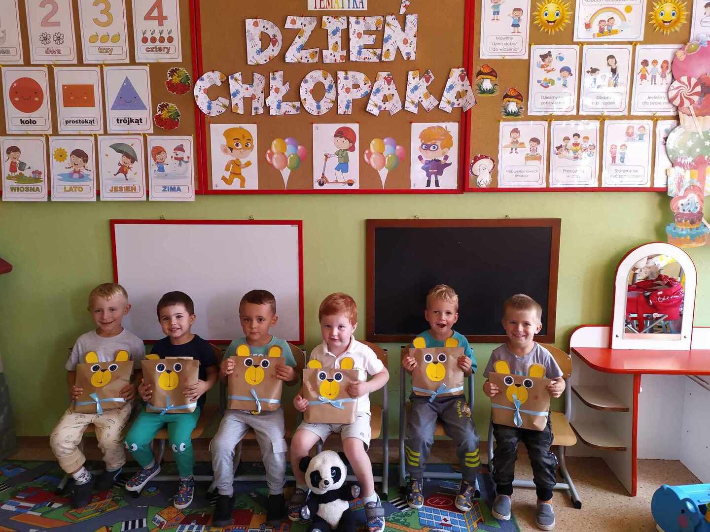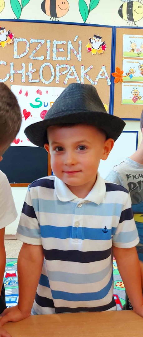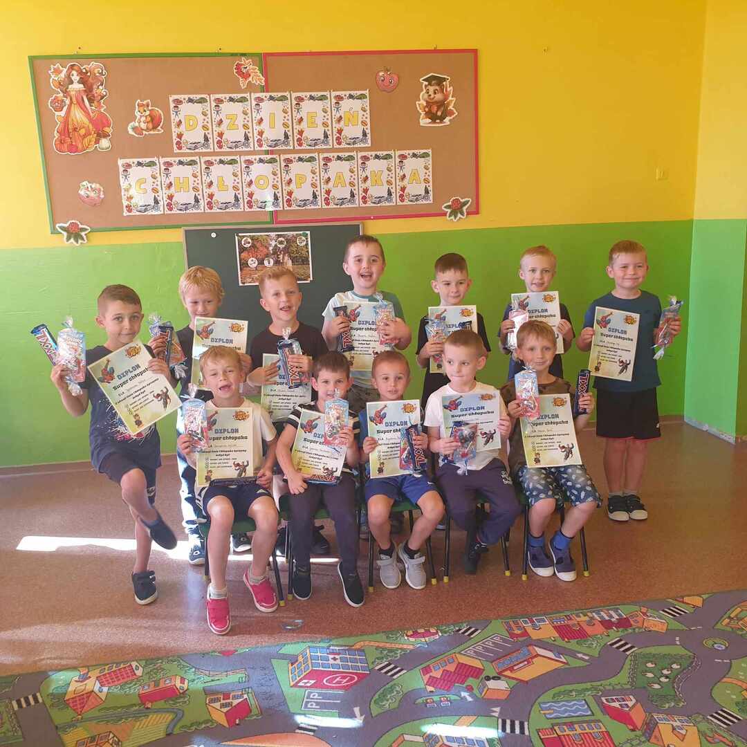 Dzień Chłopaka w naszym przedszkolu jest dniem miłych niespodzianek,radości i uśmiechów.Święto to jest okazją do wyrażenia pozytywnych emocji,chłopców i dziewczynek, pozwala budować atmosferę życzliwości i czerpać radość ze wspólnie spędzonego czasu. Tego dnia niespodziankę dla wszystkich chłopaków przygotowały dziewczynki –stworzyły plakat Super Chłopaka,i złożyły swoim kolegom najserdeczniejsze życzenia. Chłopcy zamienili się w tym dniu w prawdziwych Dżentelmenów , mieli za zadanie wypić magiczny eliksir mocy-mocno cytrynowy i się uśmiechnąć.Było wesoło i śmiesznie.Zgodnie z tradycją na zakończenie zajęć chłopcy otrzymali od koleżanek fajne upominki.
