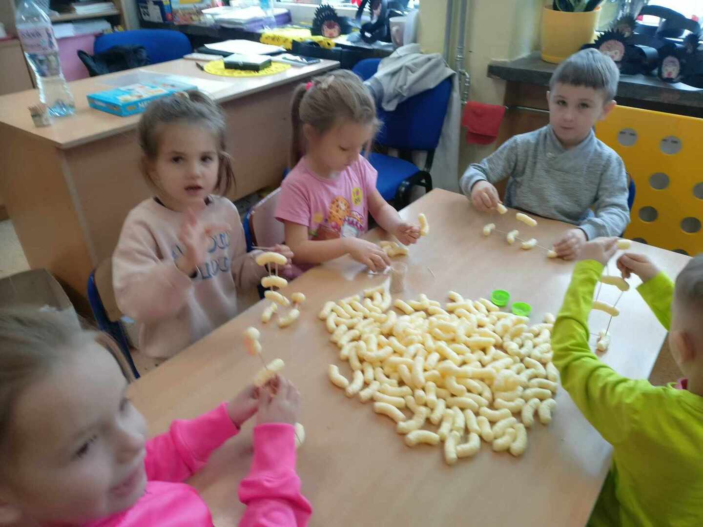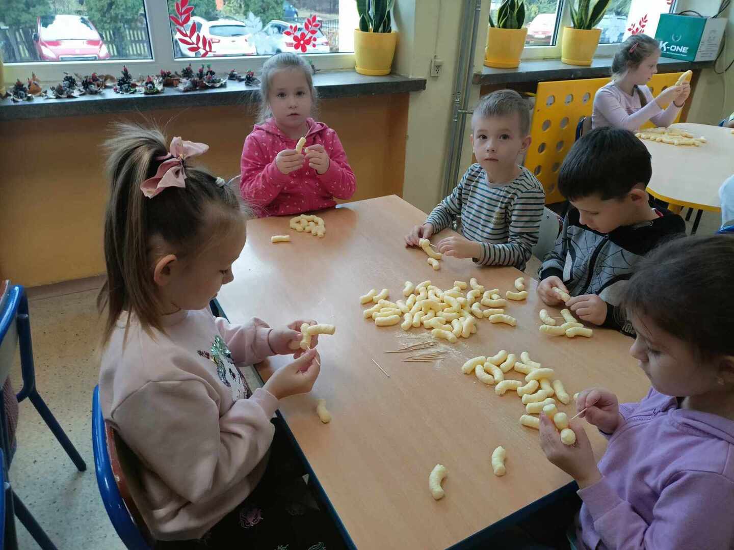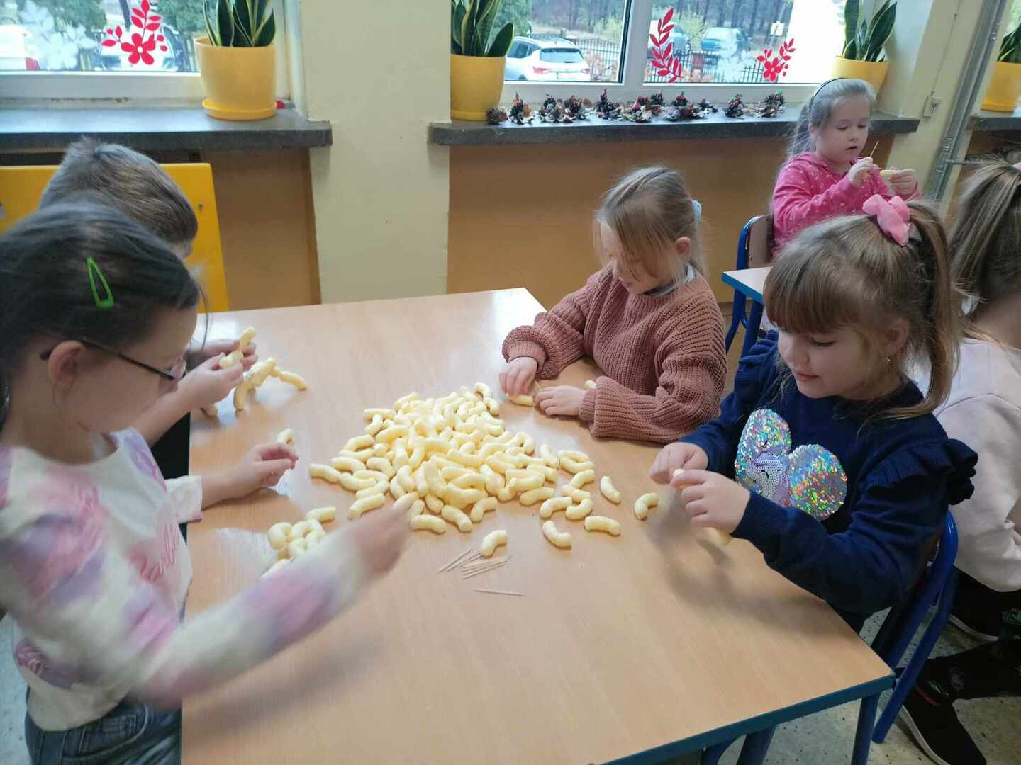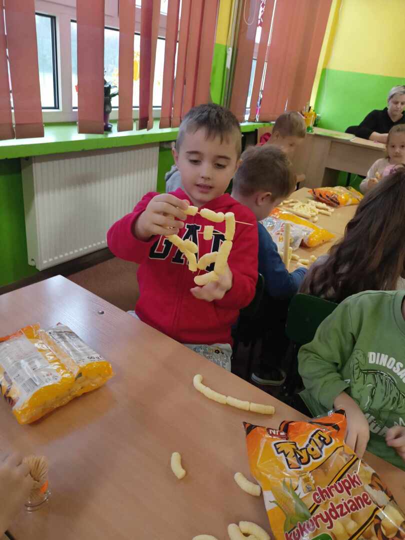 Listopad- miesiąc tęsknoty i żalu za osobami, które od nas odeszły. Dlatego też dzieci z grup przedszkolnych na zajęciach z ogólnopolskiego projektu "Sztuka emocji " prowadzonych przez i pedagoga specjalnego poznawały emocję żalu. Dzieci były bardzo kreatywne opowiadając o żalu pokazywanym na obrazkach, omawiając bajkę "Brzydkie kaczątko" oraz analizując filmik o smutnym jeżyku pod kątem przeżywanego przez niego żalu. W tym miesiącu wiodącą dziedziną sztuki była rzeźba. Dzieci z chrupek kukurydzianych flipsów i wykałaczek stworzyły rzeźby żalu. Na poprawę humoru dzieci mogły zjeść pozostałe flipsy.