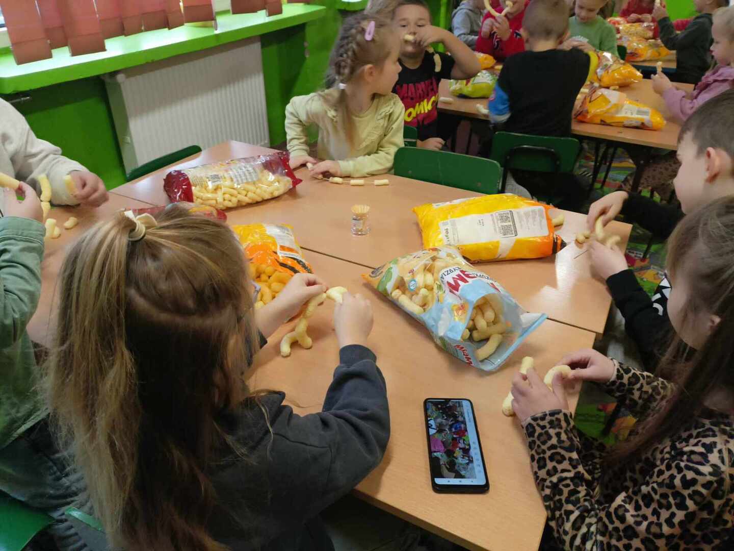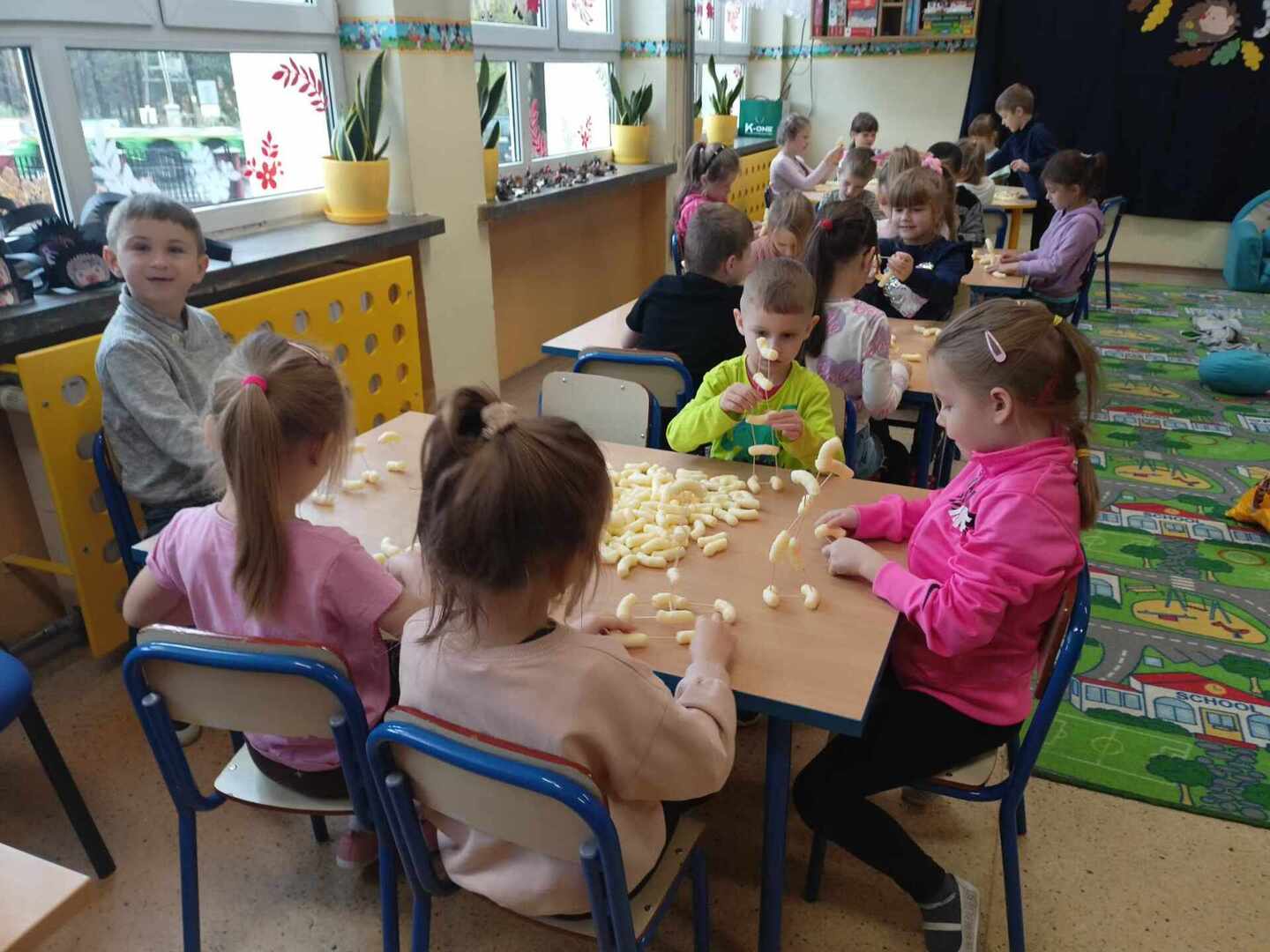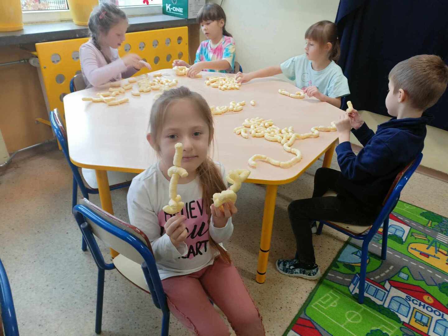Listopad- miesiąc tęsknoty i żalu za osobami, które od nas odeszły. Dlatego też dzieci z grup przedszkolnych na zajęciach z ogólnopolskiego projektu "Sztuka emocji " prowadzonych przez i pedagoga specjalnego poznawały emocję żalu. Dzieci były bardzo kreatywne opowiadając o żalu pokazywanym na obrazkach, omawiając bajkę "Brzydkie kaczątko" oraz analizując filmik o smutnym jeżyku pod kątem przeżywanego przez niego żalu. W tym miesiącu wiodącą dziedziną sztuki była rzeźba. Dzieci z chrupek kukurydzianych flipsów i wykałaczek stworzyły rzeźby żalu. Na poprawę humoru dzieci mogły zjeść pozostałe flipsy.