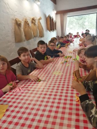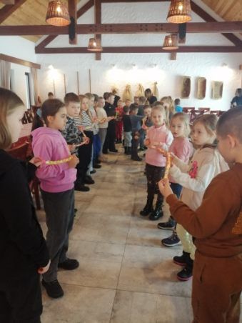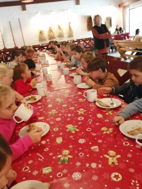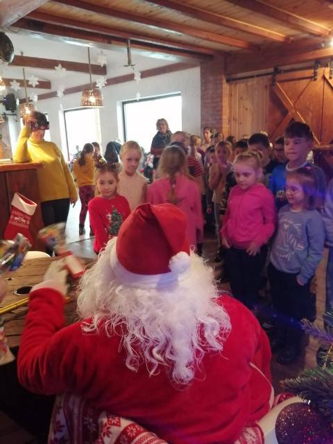 Dnia 11.12.2023r uczniowie klas I, II i III ZS w Lipie udali się na wycieczkę do gospodarstwa edukacyjnego Doboszówka. W świątecznym klimacie udekorowanych sal, przybranych choinek, blasku ognia z kominka i dźwięku kolęd dzieci poznały tradycje Bożego Narodzenia. Podczas warsztatów każdy uczestnik wykonał własny zestaw pierników, które po upieczeniu zostały przez dzieci ozdobione słodkim lukrem i bakaliami. Uczniowie z każdej klasy wykonali pracę zbiorową, którą był kolorowy łańcuch na klasową choinkę. Były również zabawy ruchowe przy muzyce i zajęcia z elementami współzawodnictwa, które z dziećmi prowadziła Śnieżynka. W oczekiwaniu na Mikołaja uczniowie nauczyli się piosenki na Jego powitanie. Ogromnąradość sprawił dzieciom jadący na koniu Mikołaj, którego dostrzegli za oknami .Miły gość odwiedził uczniów i rozdał wszystkim wspaniałe prezenty. Po wielu wrażeniach związanych z wizytą Mikołaja, dzieci ze smakiem zjadły słodkie naleśniki . Na sam koniec odwiedziliśmy zwierzęta , które zamieszkują zagrodę. Uczestnicy wycieczki mogli nakarmić zwierzęta przygotowanym pokarmem. Były też zabawy na śniegu. Pełni pozytywnych emocji i wrażeń, z pokaźną paczką wykonanych przez dzieci pierników wróciliśmy do Lipy. To był udany dzień Organizatorzy wycieczki: Beata Chmielewska, Teresa Kalinka i Anna Warmuz.