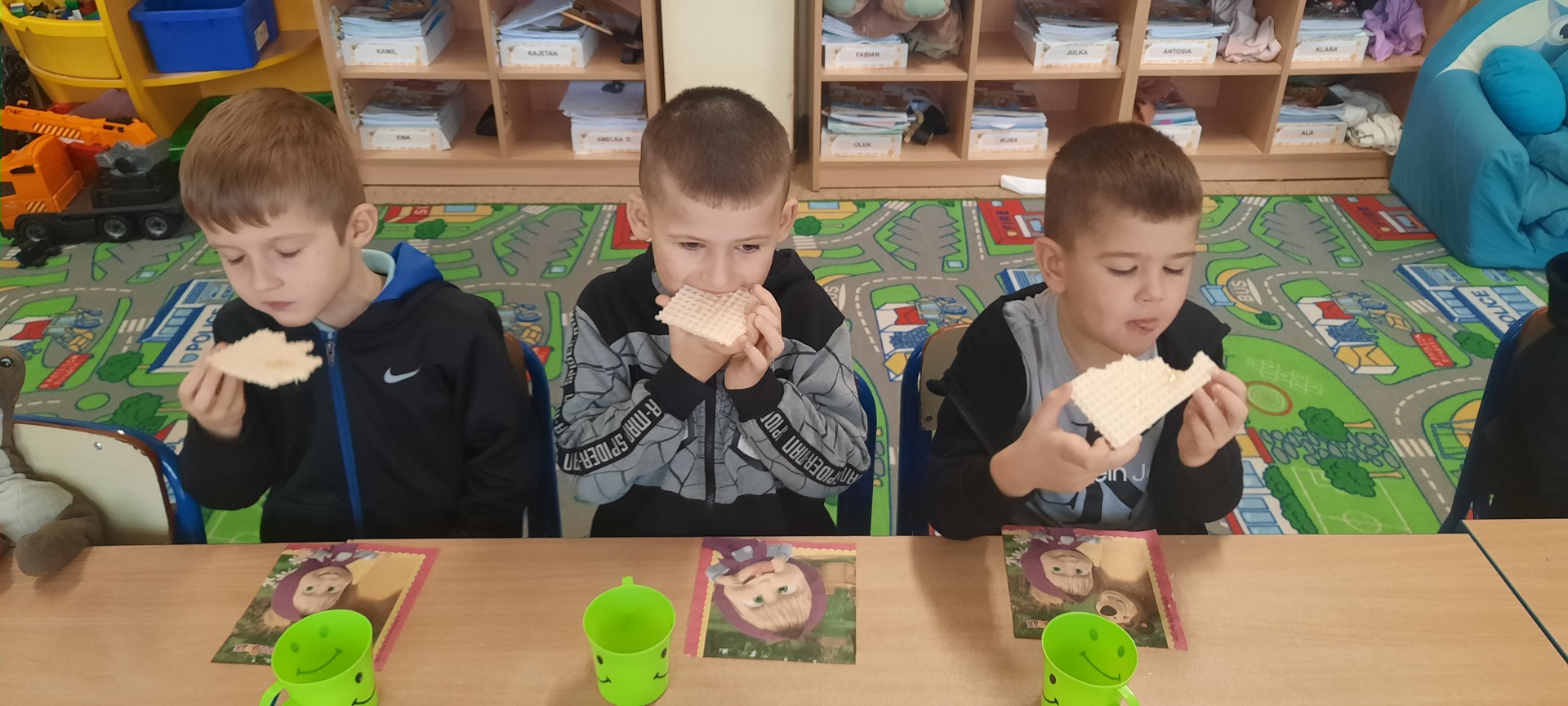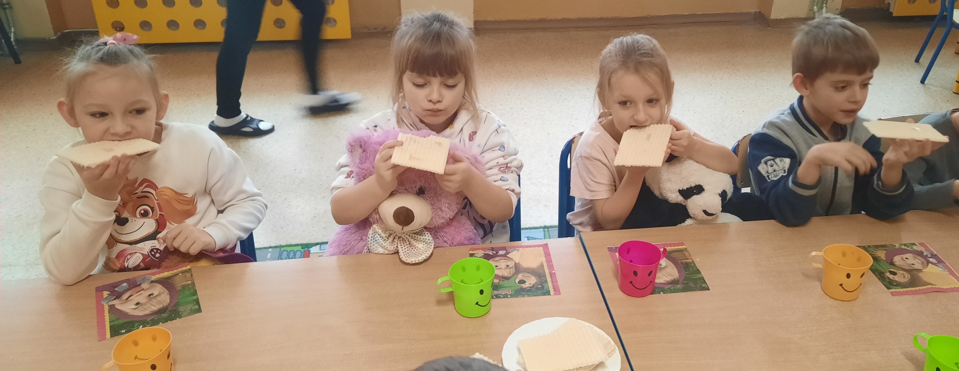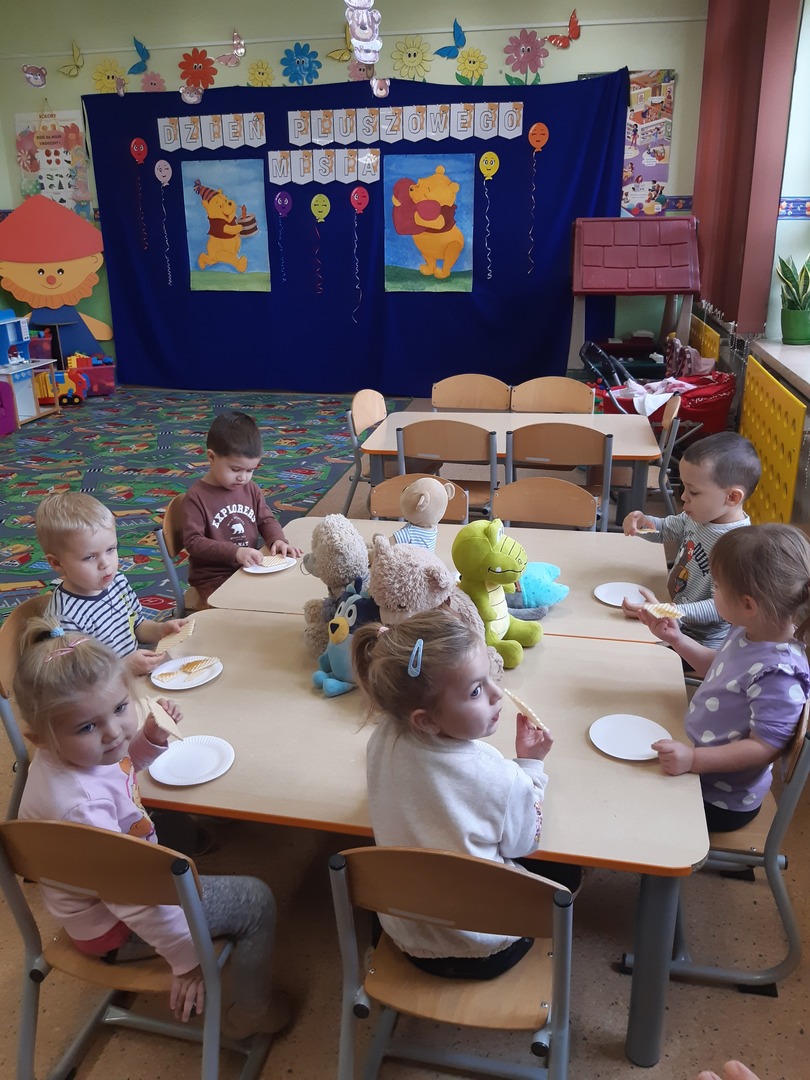 25 listopada nasze przedszkolaki obchodziły Dzień Pluszowego Misia. Każde dziecko przyszło do przedszkola ze swoim pluszowym przyjacielem. Można było zobaczyć różne misie –jedno jest pewne wszystkie były śliczne i wyjątkowe. W tym wesołym dniu na przedszkolaki czekało wiele atrakcji: poznały również historię święta i wykonały tematyczne prace plastyczne oraz zostały zaproszone do wspólnej zabawy ze swoimi misiami przez uczennice działające w samorządzie szkolnym, Przez cały dzień w każdej przedszkolnej sali słychać było misiowe przeboje. Na zakończenie przedszkolaki degustowały przysmak niedźwiadków- pyszny miodek -podany na chrupiącym wafelku.