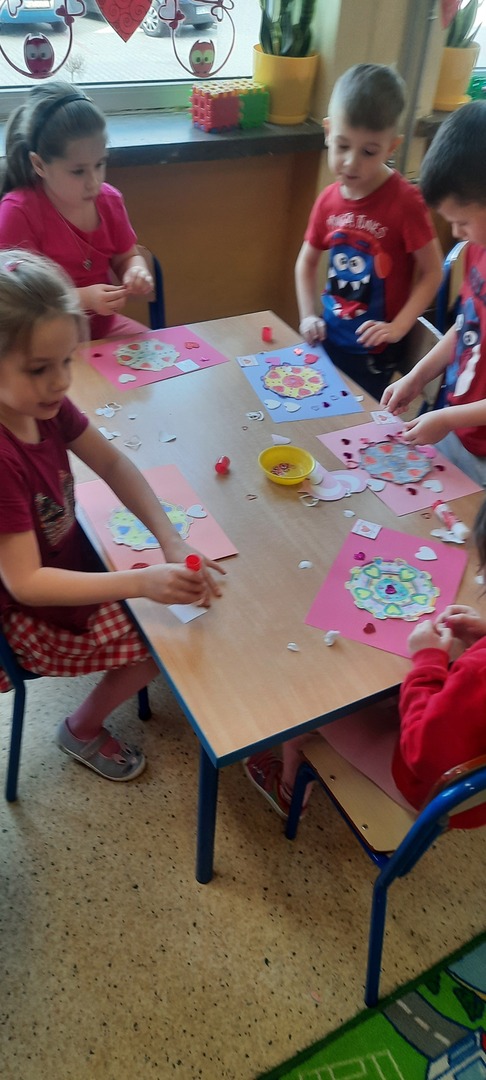 W środę 14 lutego obchodziliśmy w naszym przedszkolu "WALENTYNKI". Walentynki - czyli jedno z najprzyjemniejszych świąt w ciągu roku! I to nie tylko dla zakochanych, bo walentynki to również idealna okazja by okazać komuś sympatię,przekazać uśmiech.Przedszkolaki zapoznały się z tradycją Walentynek. Rozmawialiśmy co to znaczy kochać, że nie należy tylko od święta okazywać to uczucie, ale na co dzień poprzez m.in. małe drobne uczynki dla drugiej osoby czy uśmiech. Dzieci wykonały kolorowe laurki dla swoich kolegów i koleżanek,brały udział w wielu miłych zabawach.Dzień ten przyniósł dzieciom wiele radości i miłości.