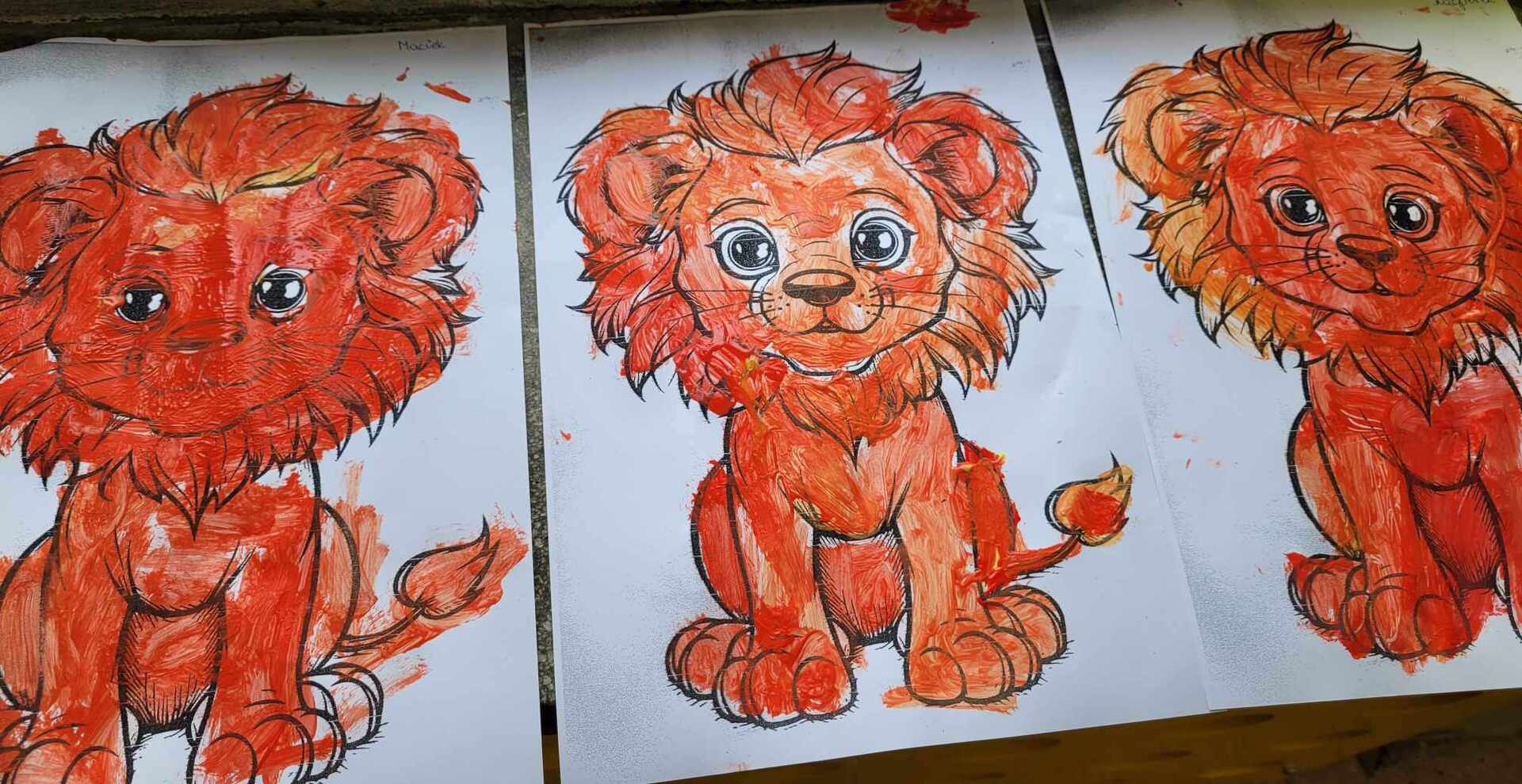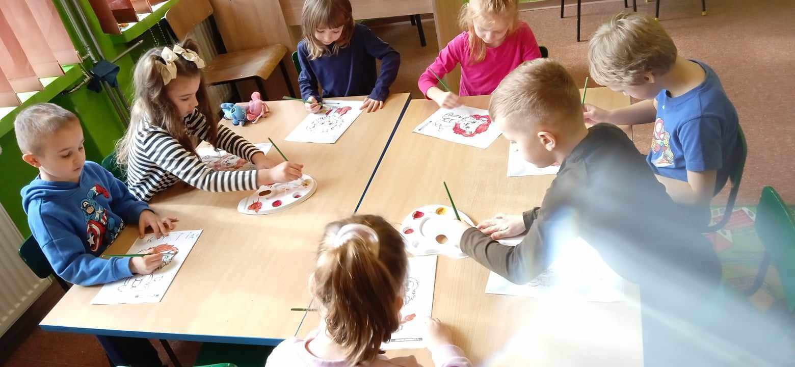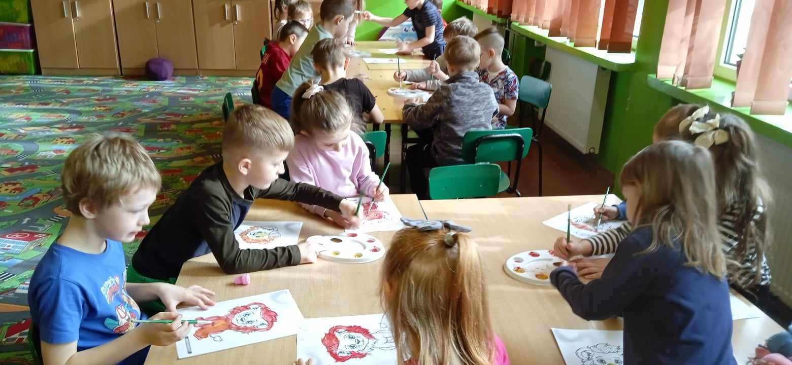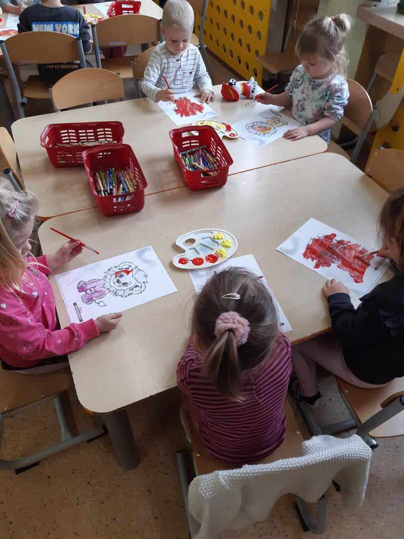 W ostatnich dwóch miesiącach skupiliśmy się na emocjach takich jak zazdrość i odwaga w ramach projektu "Sztuka Emocji". Wszystkie grupy przedszkolne oraz klasa "0" dowiedziały się, że odwaga czyli zdolność panowania nad strachem. Dzieci odgrywały teatrzyk z pacynkami radząc strachliwemu Lwu Leosiowi, jak być bardziej odważnym. Podawały przykłady odważnych osób w swoim otoczeniu same wykazały się odwagą wchodząc na krzesełko i mówiąc "Patrzcie wszyscy na mnie!". Dzieci kolorowały lwa używając tylko dwóch kolorów. Omawialiśmy również emocję zazdrości przy pomocy literatury. Dzieci wysłuchały opowiadania oraz podawały własne przykłady czego można zazdrościć innym. Wykazały się również dużą pomysłowością wcielając się w reporterów i prowadząc wywiad z zazdrością