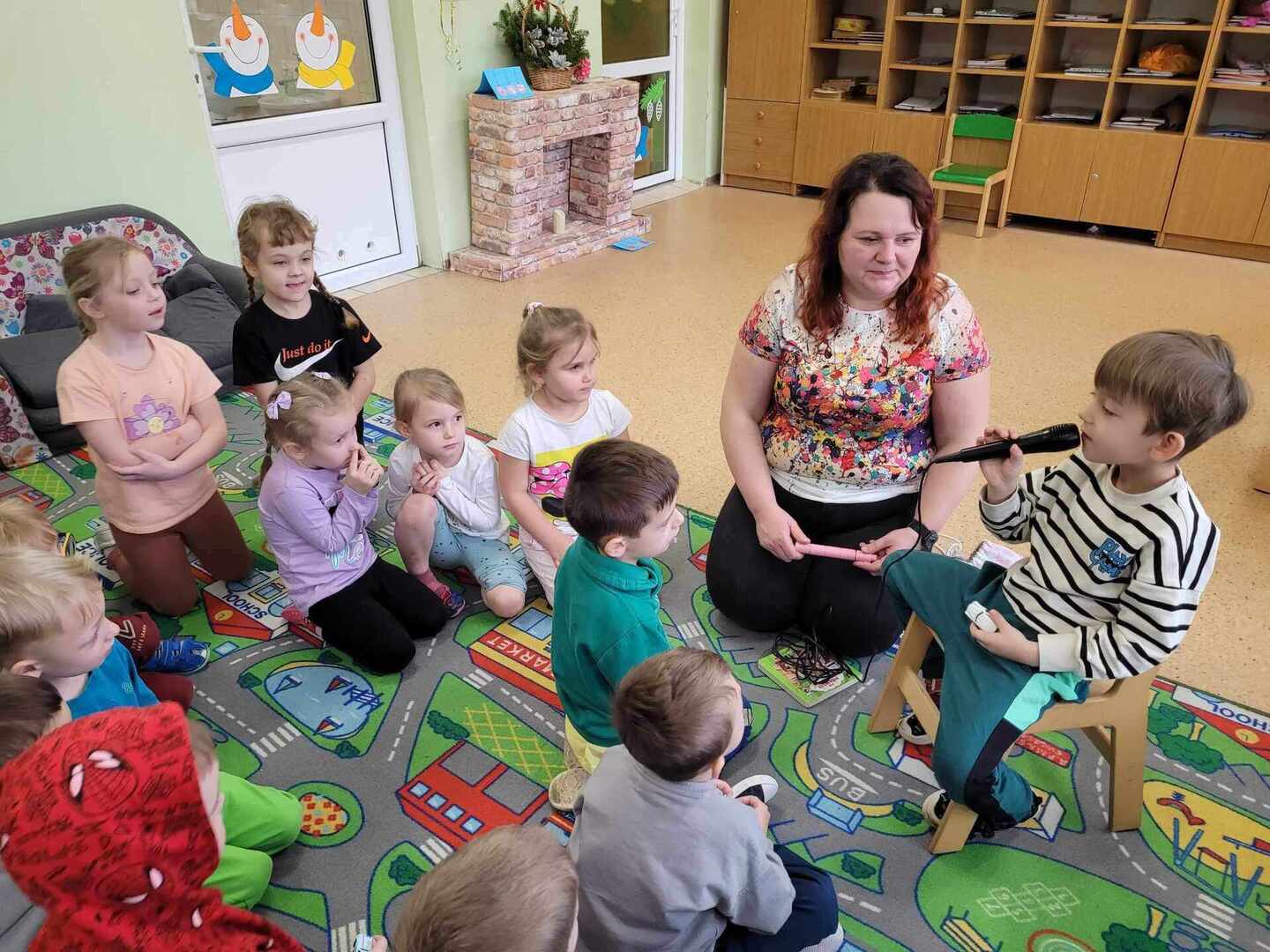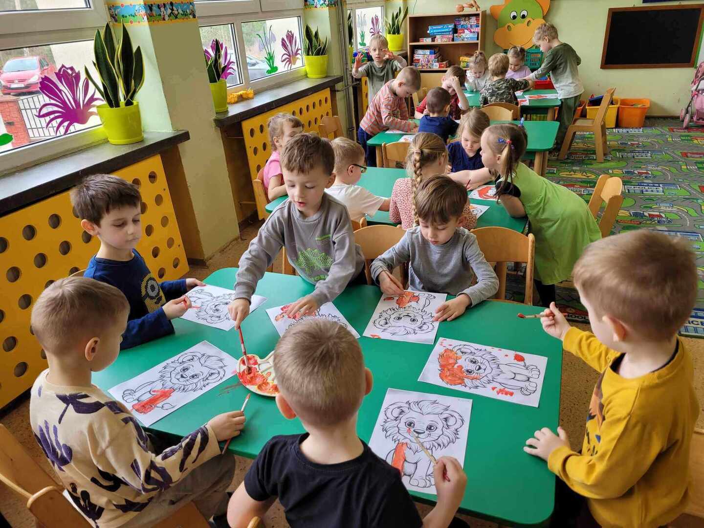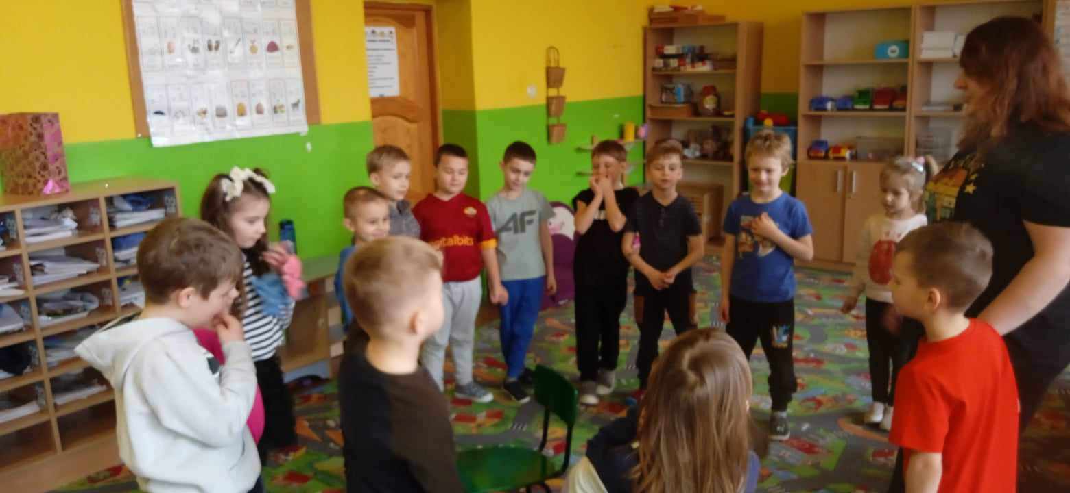 W ostatnich dwóch miesiącach skupiliśmy się na emocjach takich jak zazdrość i odwaga w ramach projektu "Sztuka Emocji". Wszystkie grupy przedszkolne oraz klasa "0" dowiedziały się, że odwaga czyli zdolność panowania nad strachem. Dzieci odgrywały teatrzyk z pacynkami radząc strachliwemu Lwu Leosiowi, jak być bardziej odważnym. Podawały przykłady odważnych osób w swoim otoczeniu same wykazały się odwagą wchodząc na krzesełko i mówiąc "Patrzcie wszyscy na mnie!". Dzieci kolorowały lwa używając tylko dwóch kolorów. Omawialiśmy również emocję zazdrości przy pomocy literatury. Dzieci wysłuchały opowiadania oraz podawały własne przykłady czego można zazdrościć innym. Wykazały się również dużą pomysłowością wcielając się w reporterów i prowadząc wywiad z zazdrością