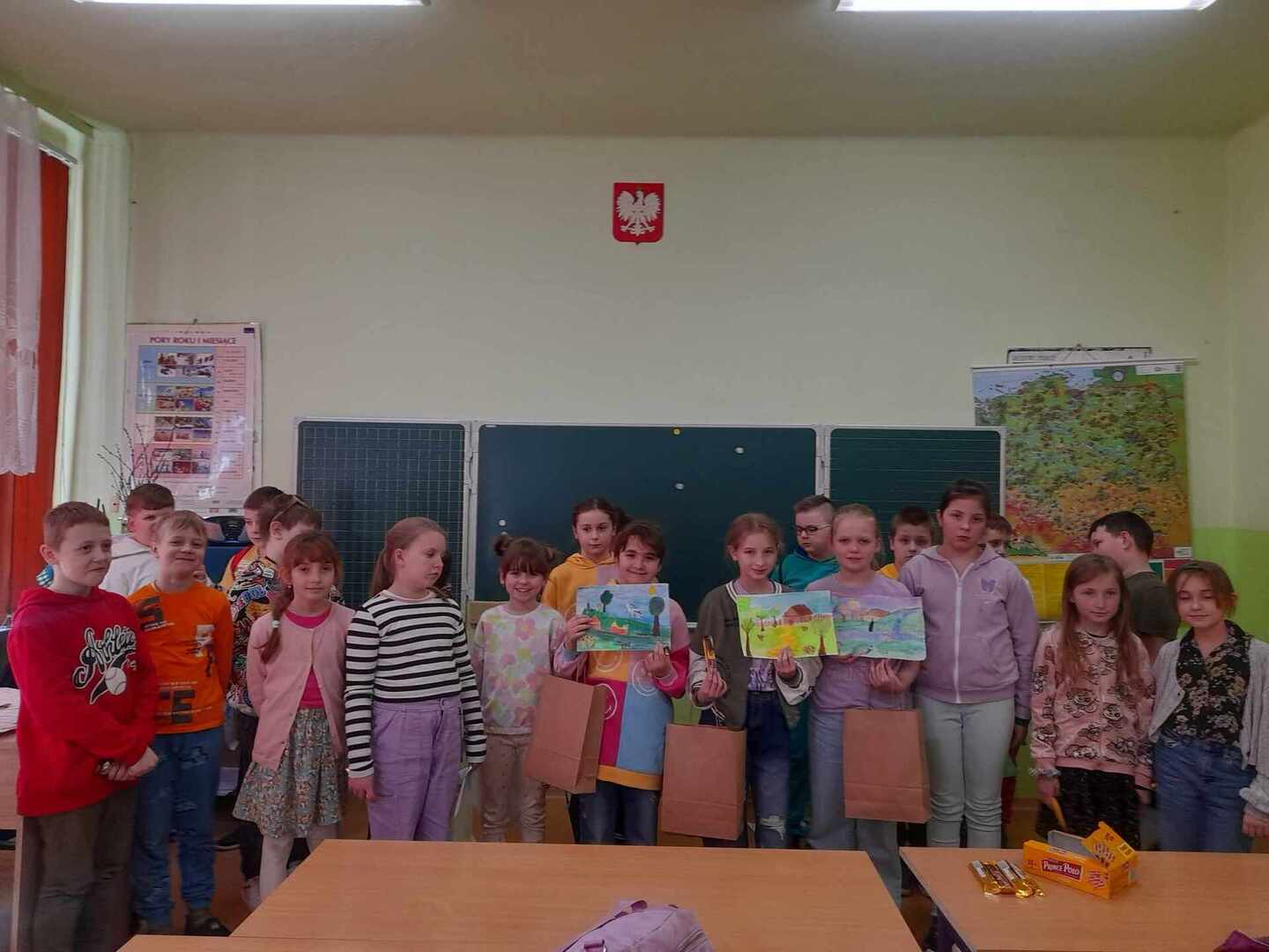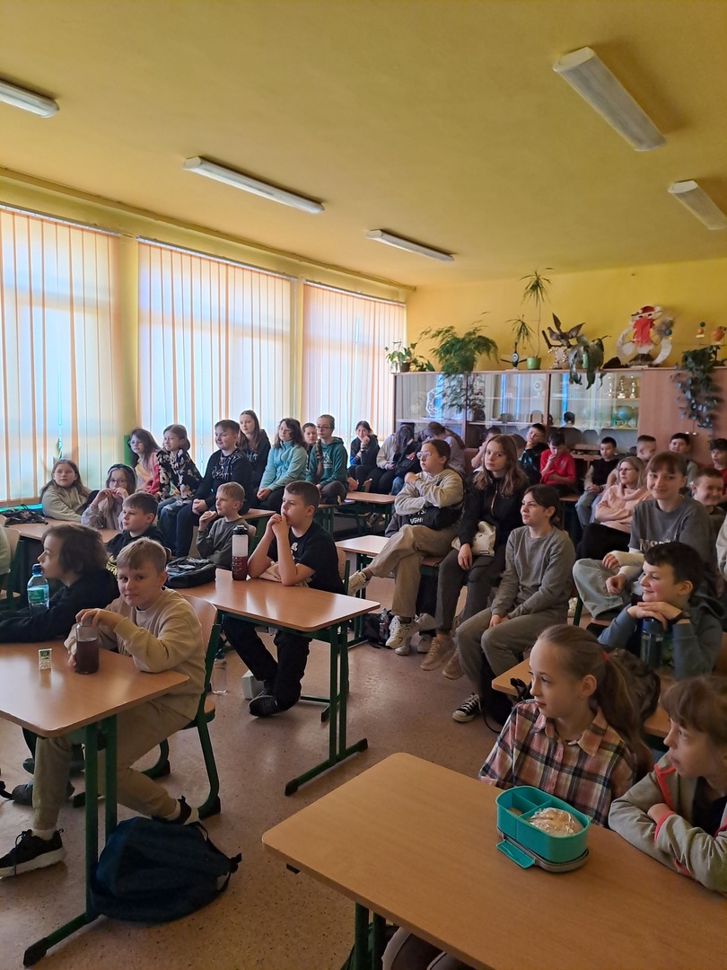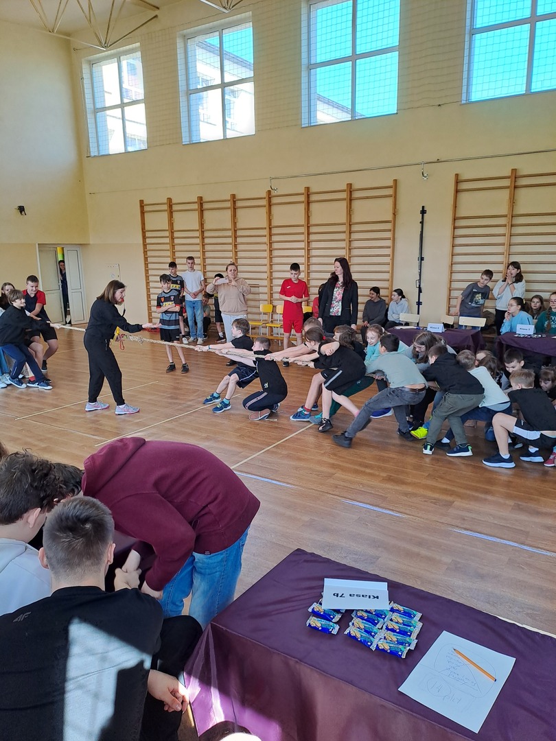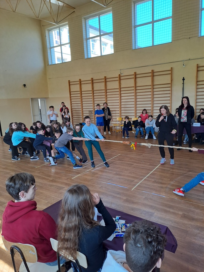 Nareszcie nadeszła wiosna! W czwartek, 21 marca 2024 roku, oficjalnie obchodziliśmy pierwszy dzień kalendarzowej wiosny w naszej szkole. W salach pojawiły się wiosenne dekoracje i tematycznie związane z tym świętem tablice. By uatrakcyjnić ten wyjątkowy dzień przygotowano dla uczniów klas I-III projekcję filmu „Czarne stopy”, a dla uczniów klas IV-VIII projekcję „Akcji pod Arsenałem”. Następnie młodsi wzięli udział w konkursie plastycznym pod hasłem 'Wiosna”. Jury nagrodziło prace. Klasa pierwsza: I miejsce - Jan Kaczmarzyk, II miejsce- Amelia Pęzioł, III miejsce- Tymon Rzepczyński Klasa druga: I miejsce- Helena Janik II miejsce- Miłosz Nagajek II miejsce- Igor Małysa Klasa trzecia: I miejsce- Karolina Rara II miejsce- Emilia Stelmach III miejsce Emilia Turek GRATULUJEMY !!! Z kolei starsze klasy wzięły udział w rywalizacji z zakresu wiedzy ogólnej, wiedzy o wiośnie i wiedzy na temat filmu „Akcja pod Arsenałem” oraz w rywalizacji sportowej. Prowadzące przedsięwzięcie- Martyna Skrzypek i Weronika Skrzypek opracowały scenariusz (przedstawicielki Samorządu Uczniowskiego), a Pani Jaskowska przygotowała konkurencje z zakresu aktywności fizycznej. Entuzjazm udzielił się wszystkim zebranym. Ze względu na jednakową liczbę punktów poszczególne klasy musiały zawalczyć o nagrody. Wzięły udział w przeciąganiu liny. I miejsce zajęła klasa 7b- otrzymała voucher dla klasy na pizzę, II miejsce- klasa 5- zdobyła zestaw grillowy, III miejsce – klasa 6- dostała voucher na lody. GRATULUJEMY!!! Samorząd Uczniowski