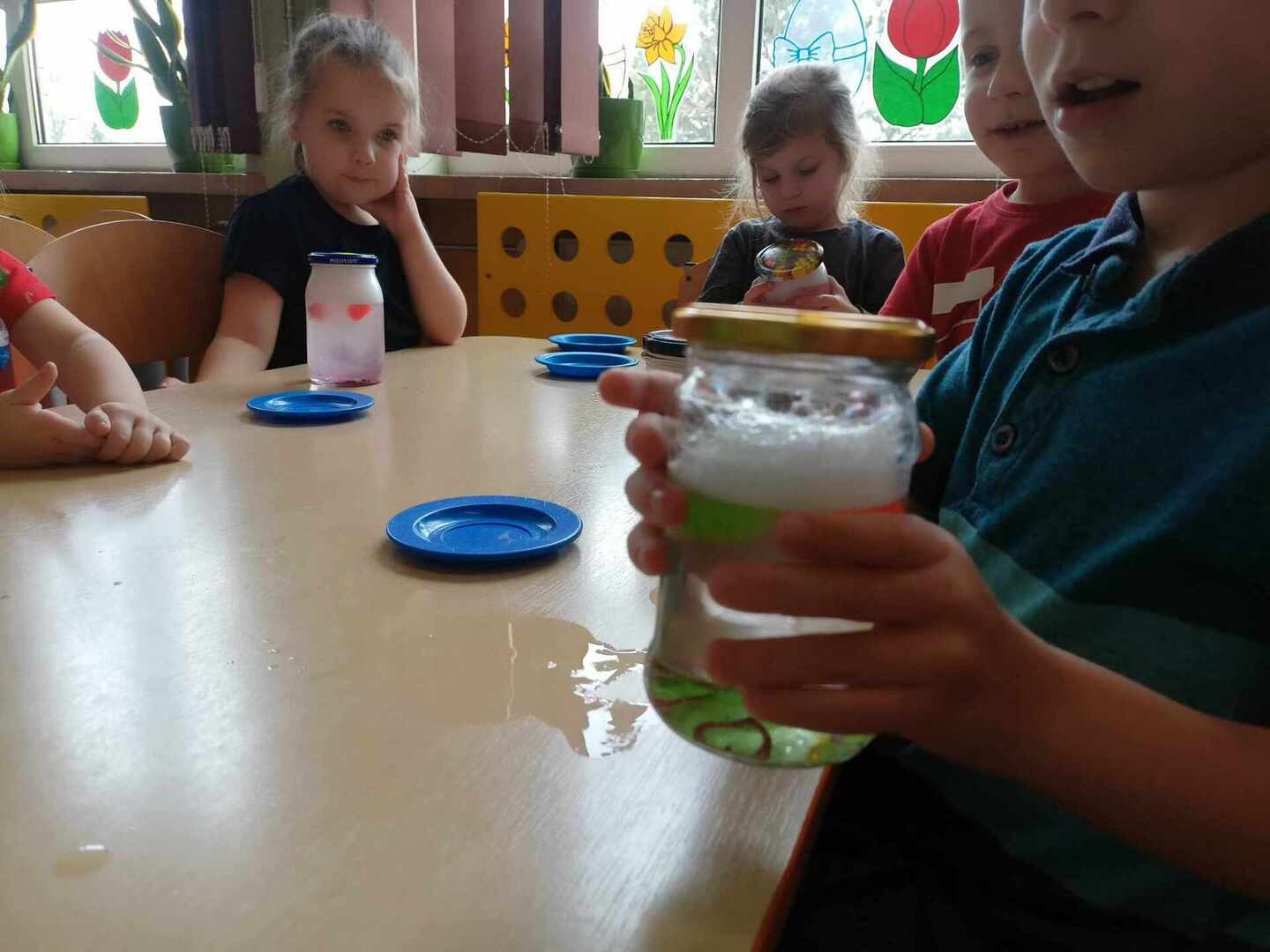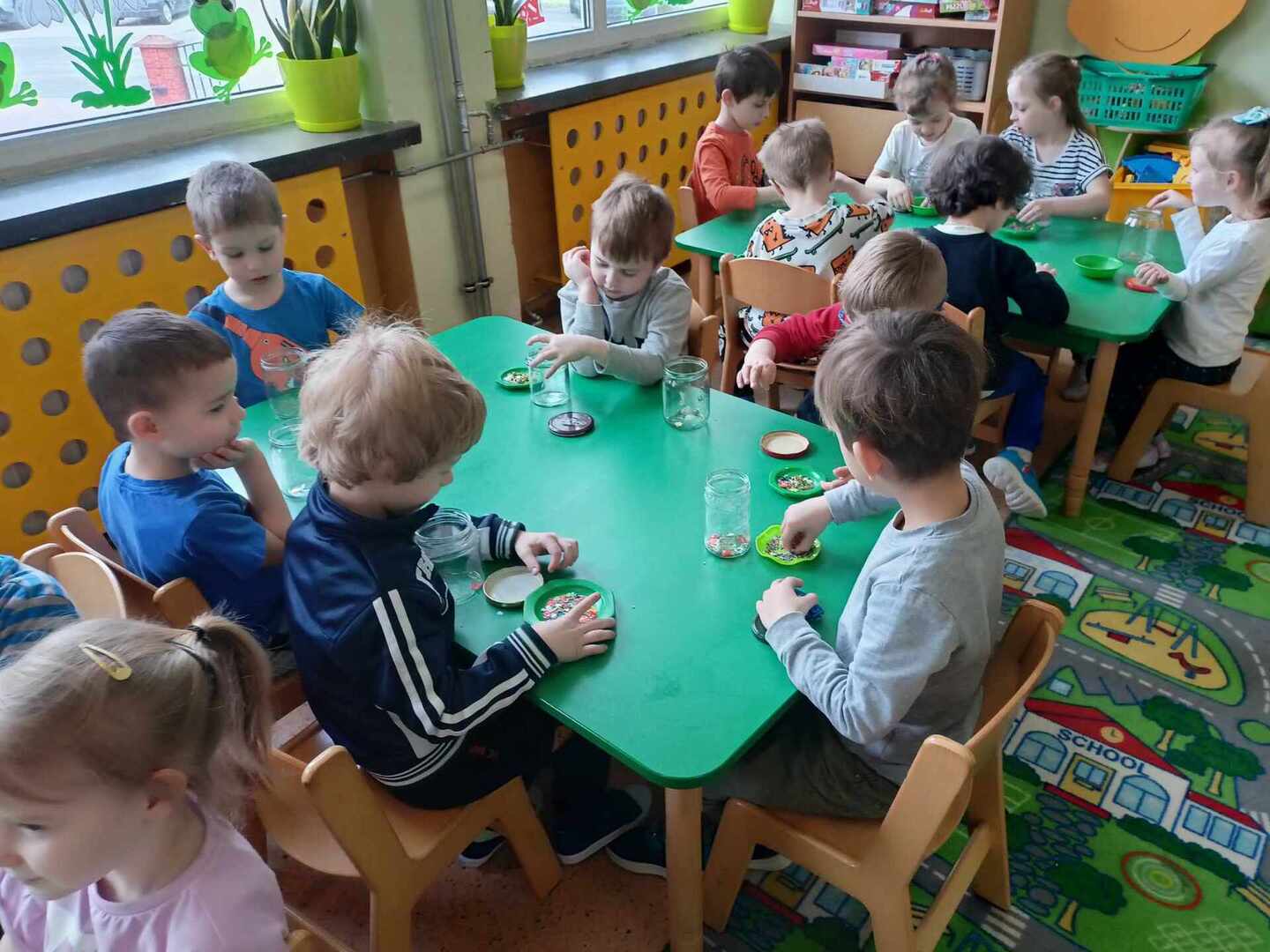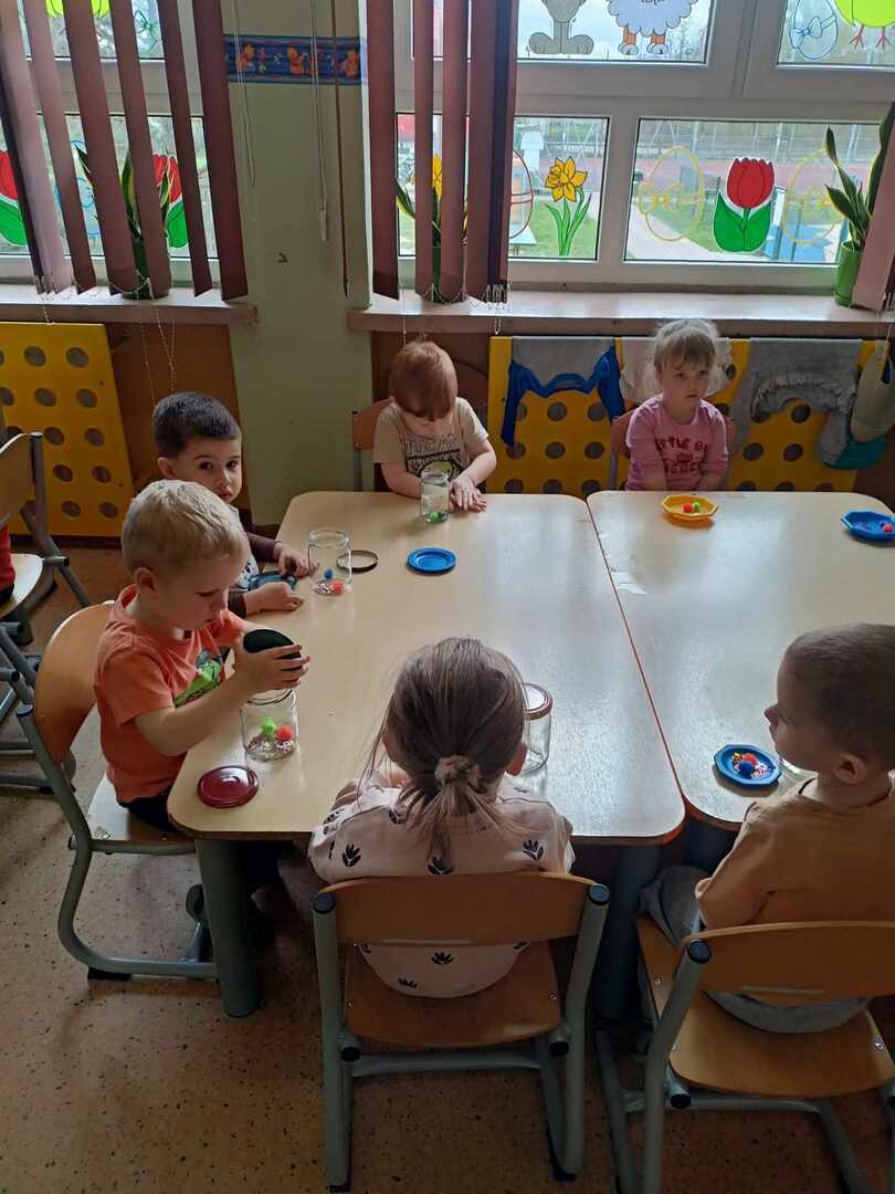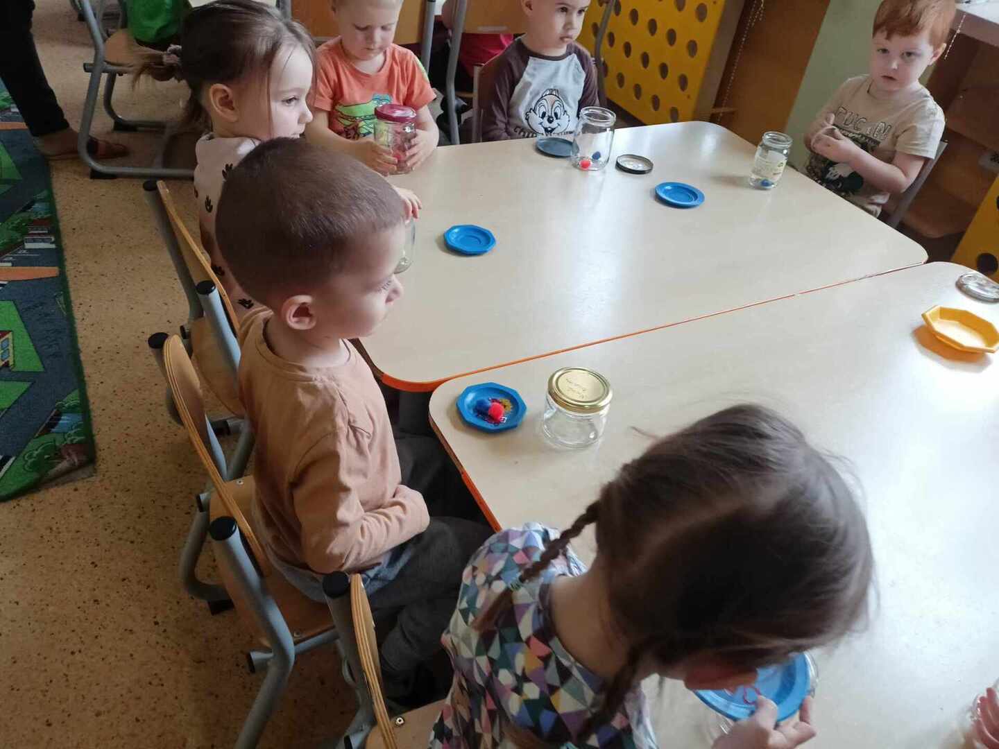Ostatnią omawianą emocją przez wszystkie grupy przedszkolne była bardzo pożądana przez wszystkich emocja: spokój. Dzieci obejrzały bajkę relaksacyjną z morałem "Dwie sowy". Ponadto uczyły się technik relaksacyjnych i oddechowych: dmuchały piórko, oddychały wodząc palcem po dłoni udając wspinającą sie mrówkę. Jednak najwięcej radości sprawiły słoiki spokoju z brokatem, które symbolizują nasze wzburzone emocje i zachowania oraz mają służyć do uspoakajania i relaksacji w domu.
