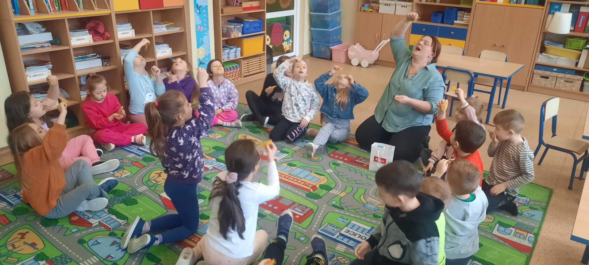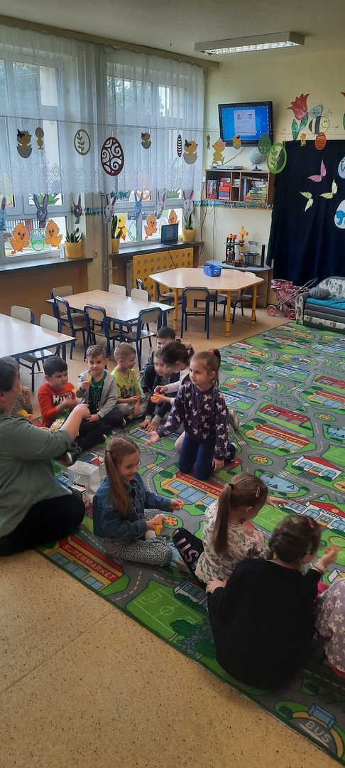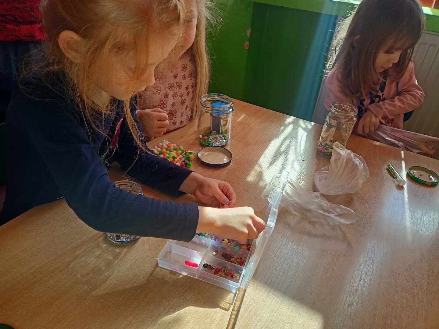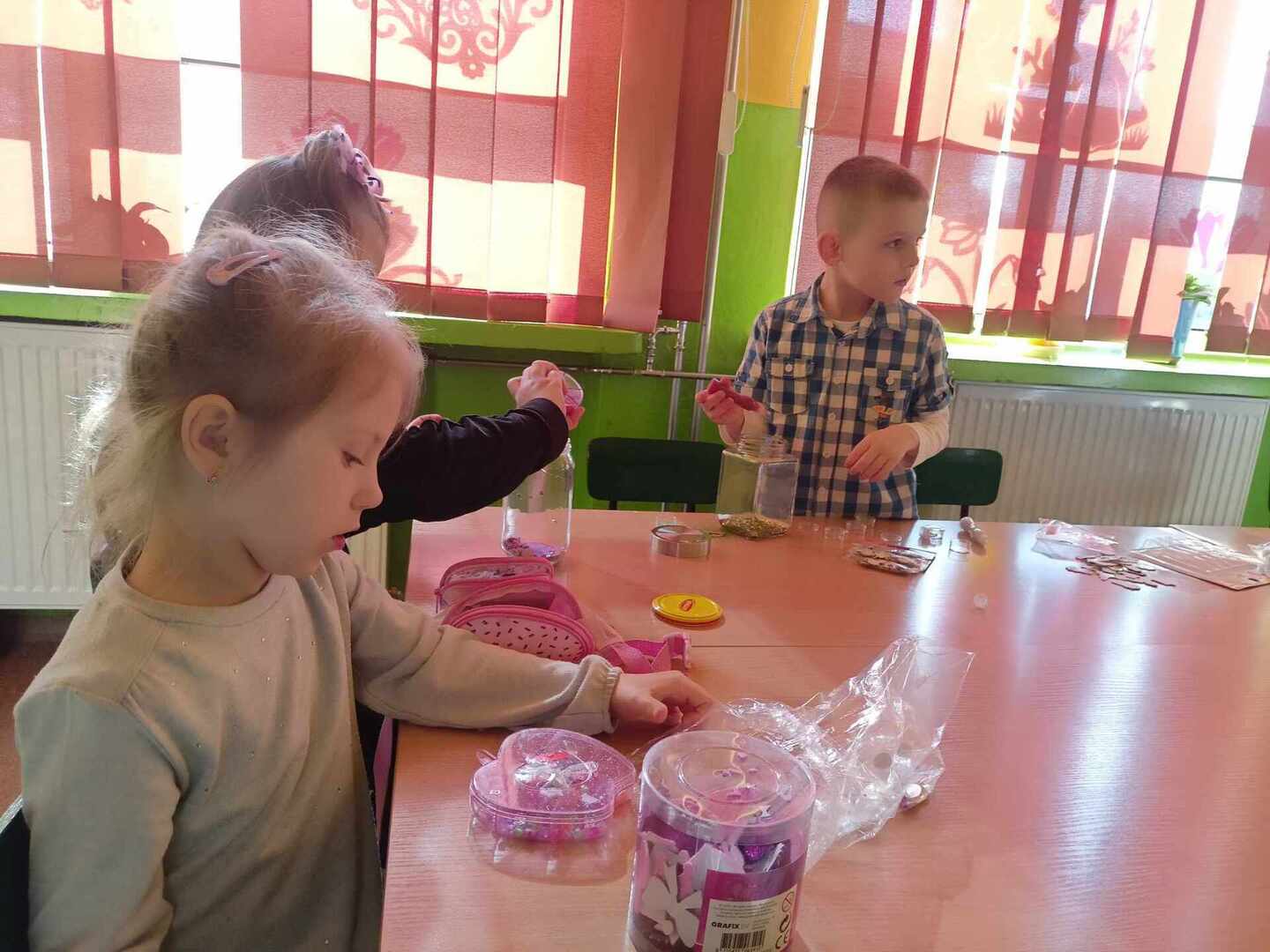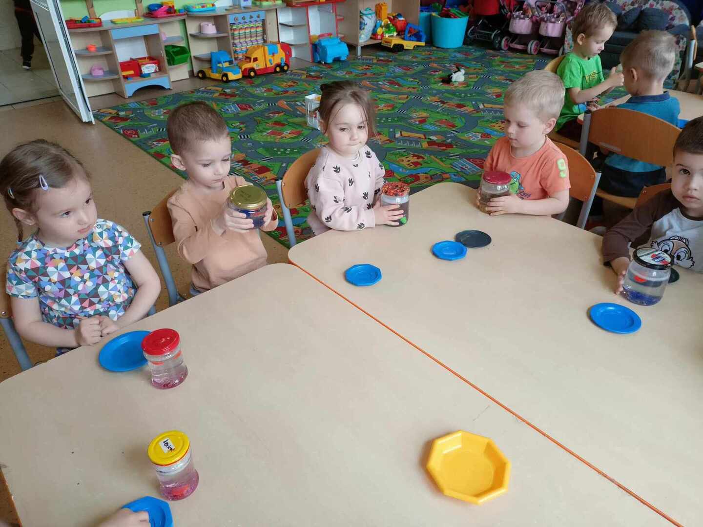 Ostatnią omawianą emocją przez wszystkie grupy przedszkolne była bardzo pożądana przez wszystkich emocja: spokój. Dzieci obejrzały bajkę relaksacyjną z morałem "Dwie sowy". Ponadto uczyły się technik relaksacyjnych i oddechowych: dmuchały piórko, oddychały wodząc palcem po dłoni udając wspinającą sie mrówkę. Jednak najwięcej radości sprawiły słoiki spokoju z brokatem, które symbolizują nasze wzburzone emocje i zachowania oraz mają służyć do uspoakajania i relaksacji w domu.