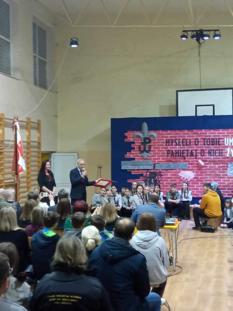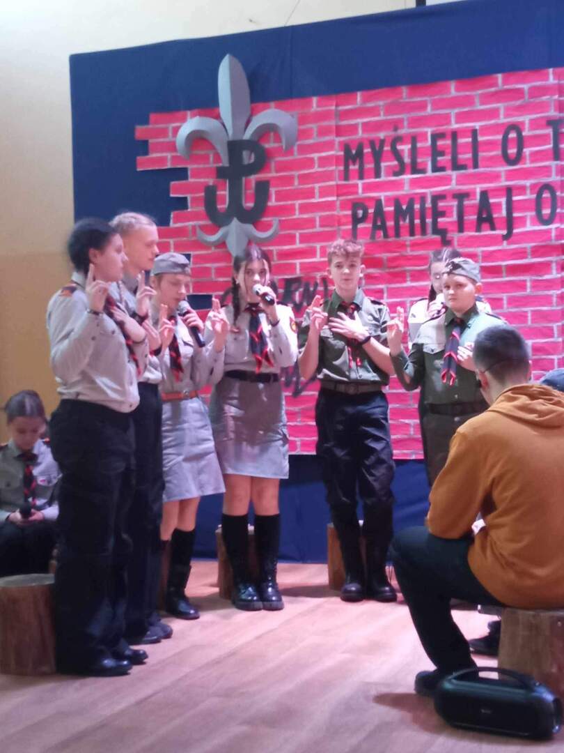 Pod takim hasłem 25 marca 2024 r. odbyła się w Zespole Szkół w Lipie Wieczornica, która miała na celu upamiętnienie 20-lecia nadania naszej szkole imienia Szarych Szeregów. W uroczystości wzięli udział zaproszeni goście. Wśród nich byli : Burmistrz Zaklikowa Pan Dariusz Toczyski, Przewodniczący Rady Gminy Pan Mirosław Mach, Radny Gminy oraz Sołtys Lipy Pan Jerzy Chamera, Proboszcz parafii ks. Jerzy Skimina, były Wójt Gminy Zaklików Pan Ryszard Polański, dyrektorzy szkół z terenu Gminy Zaklików, delegacje z zaprzyjaźnionych drużyn harcerskich, członkowie Rady Rodziców na czele z przewodniczącą Panią Edytą Mazurek oraz uczniowie, nauczyciele oraz przyjaciele i sympatycy szkoły. Wprowadzeniem do uroczystości była inscenizacja przedstawiona przez starszych uczniów, opowiadająca o istocie i wartościach harcerstwa. Występujący nawiązali do historii harcerstwa w naszej miejscowości oraz szkole. Niezwykły nastrój podkreślony blaskiem świateł oraz dekoracja pozwoliły zebranym na chwilę wspomnień, zadumy i refleksji. Recytacja wierszy przeplatana utworami w wykonaniu chóru, przy akompaniamencie gitar i akordeonu wywołały na wielu twarzach wzruszenie. Z kolei prezentowane na ekranie obrazy i fotografie dokumentujące minione wydarzenia sprawiły, iż widzowie, wśród których znaleźli się byli harcerze i absolwenci szkoły mogli na nowo poczuć atmosferę tamtych dni. Dyrektor Zespołu Szkół w Lipie – Pani Iwona Stryjecka – Pezda odnosząc się do przeszłości i początków harcerstwa w Lipie oraz jej działalności na przestrzeni kilkudziesięciu lat, serdecznie podziękowała wszystkim tym, którzy w szczególny sposób przyczynili się do promowania organizacji i propagowania wartości patriotycznych na naszym terenie. Pani Dyrektor w swojej wypowiedzi przywołała wiele wspomnień, przytoczyła wiele faktów odnoszących się zarówno do wielu ważnych momentów harcerskich szkoły jak i dnia, kiedy to zostało jej nadane zaszczytne i zobowiązujące imię. Obecny na uroczystości burmistrz Pan Dariusz Toczyski wręczył na ręce Dyrektor Szkoły Pani Iwony Stryjeckiej – Pezda jubileuszowy upominek w postaci pamiątkowego graweru. Nieodłączną częścią uroczystości stała się wyeksponowana na holu szkolnym wystawa zdjęć zatytułowana : „Harcerstwo – kartki z kalendarza”, przedstawiająca kadry z działalności naszych drużyn harcerskich na przestrzeni wielu lat. Na szczególna uwagę zasługuje również ukwiecona w tym dniu dekoracja ścienna, która powstała w 2004 r. w celu upamiętnienia faktu nadania szkole imienia. Wieczornica to niecodzienne przedsięwzięcie. Dzięki pracy zespołowej wielu osób, którym zależało na wspólnym świętowaniu i ukazaniu rangi, ważności naszej rocznicy, przeżyliśmy niezapomniane, pełne emocji chwile, które na długo pozostaną w naszej pamięci. Słowa uznania kierujemy do osób, które przyczyniły się do organizacji imprezy. Wśród nich są nauczyciele: Pani Iwona Mazur, która przygotowała uczniów pod względem literackim, Pani Teresa Skrzypek, która zadbała o piękny, nadający powagi i charakteru wystrój uroczystości, Panie Beata Dziurda i Bożena Jaskowska, które przygotowały prezentację multimedialną oraz wystawę fotograficzną na szkolnym korytarzu, Pani Jolanta Pyć, która przygotowała oprawę muzyczną uroczystości oraz rodzic - Pan Sebastian Szwedo, który akompaniował chórowi szkolnemu. Podziękowania kierujemy również do naszych mam z Rady Rodziców które wsparły nas w organizacji tej uroczystości.