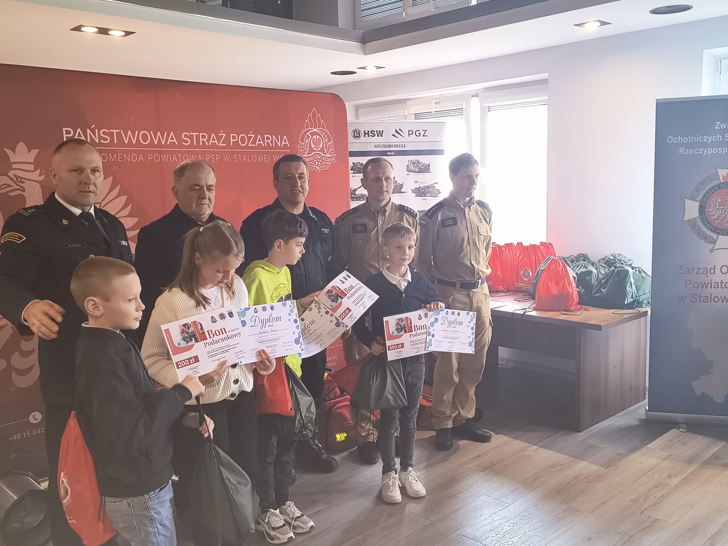 W marcu 2024r uczniowie Zespołu Szkół w Lipie wzięli udział w Ogólnopolskim Turnieju Wiedzy Pożarniczej „Młodzież zapobiega pożarom” na etapie gminnym. Po przeprowadzonych eliminacjach na szczeblu szkolnym, w dniu 26 marca 2024r odbył się w ZS w Lipie etap gminny. Szkołę w Lipie reprezentowały dwie trzyosobowe drużyny, jedna w kategorii klas 1-4 a druga w kategorii klas 5-8 szkoły podstawowej. Po przeprowadzonych eliminacjach do etapu powiatowego w kategorii klas młodszych zakwalifikował się Kamil Skrzypek z klasy 4 uzyskując pierwsze miejsce w etapie gminnym. W kategorii klas starszych odbyła się dogrywka między dwoma uczniami z ZS w Lipie i jednym uczniem z ZSO w Zaklikowie. Po przeprowadzonej dogrywce, pierwsze miejsce i awans do etapu powiatowego wywalczył uczeń klasy 7 Szymon Januszko. W dniu 24 kwietnia 2024r w jednostce Państwowej Straży Pożarnej w Stalowej Woli odbył się etap powiatowy Ogólnopolskiego Turnieju Wiedzy Pożarniczej. Każdą gminę z powiatu stalowowolskiego reprezentowała jedna osoba w danej kategorii wiekowej. Uczniowie w pierwszym etapie musieli zmierzyć się z pisemnym testem. Po sprawdzeniu testów przez komisję konkursową, trzy osoby z każdej kategorii wiekowych, które uzyskały najwyższy wynik kwalifikowały się do drugiego etapu konkursu. W drugim etapie konkursu należało wykazać się wiedzą praktyczną, odpowiadając na zadawane przez komisję pytania. Po przeprowadzonych eliminacjach w kategorii klas 1-4 uczeń Kamil Skrzypek uzyskał drugie miejsce w powiecie a Szymon Januszko uzyskał piąte miejsce w powiecie w kategorii klas 5-8. Gratulujemy Naszym uczniom tak wysokich wyników i życzymy dalszych sukcesów i zapału do pracy w kolejnych konkursach z zakresu wiedzy pożarniczej.