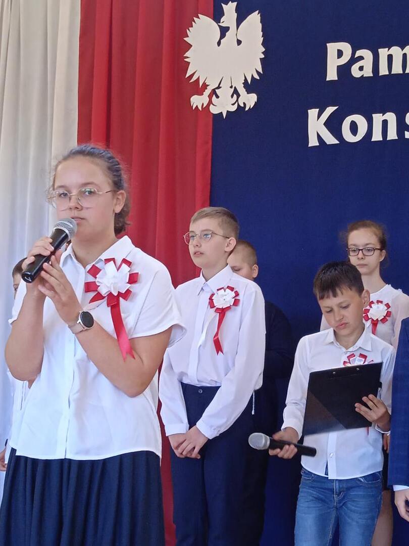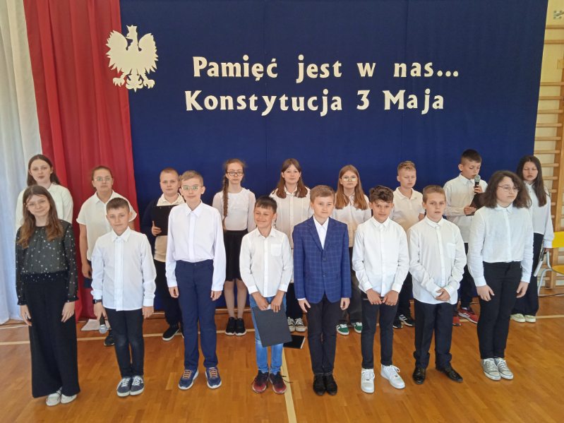 Święto Narodowe Trzeciego Maja obchodzone jest na pamiątkę uchwalenia przez Sejm Czteroletni, nazywany także Wielkim, 3 maja 1791 r. Ustawy Rządowej Rzeczypospolitej Obojga Narodów, znanej jako Konstytucja 3 maja. Była to pierwsza w Europie i druga na świecie, po amerykańskiej z 1787 r., spisana konstytucja. Celem przyświecającym jej twórcom było ratowanie kraju, którego terytorium zostało częściowo zaanektowane w wyniku I rozbioru. Ustawa regulowała system prawny państwa, wprowadzając ustrój monarchii konstytucyjnej i zasadę trójpodziału władzy. Zniesiono liberum veto, konfederację i wolną elekcję. Choć interwencja militarna Rosji udaremniła reformę Rzeczypospolitej w połowie 1792 r., to do dzisiaj Konstytucja 3 maja jest jednym z fundamentów polskiej tradycji i państwowości. Dzień uchwalenia Konstytucji 3 maja 1791 r. został uznany za święto narodowe już 2 dni później. Przez 123 lata zaborów Polski było zakazane. Zostało przywrócone w II Rzeczypospolitej Polskiej w 1919 r., zdelegalizowane przez okupantów niemieckich i sowieckich podczas II wojny światowej. Po jej zakończeniu było obchodzone tylko do 1946 r. Święto 3 Maja zostało oficjalnie zniesione w 1951 r. i przywrócone jako Święto Narodowe Trzeciego Maja w 1990 r. Od 2007 r. jest również świętem narodowym Litwy. Dzięki przedszkolakom oraz klasie piątej mogliśmy zobaczyć, jak patriotyzm rodzi się w młodym człowieku. Niewątpliwie występ obu grup wiekowych zostanie zapamiętany na długo.