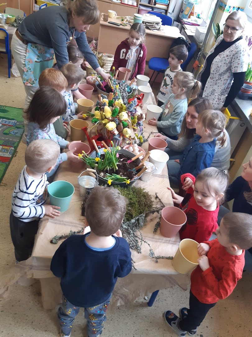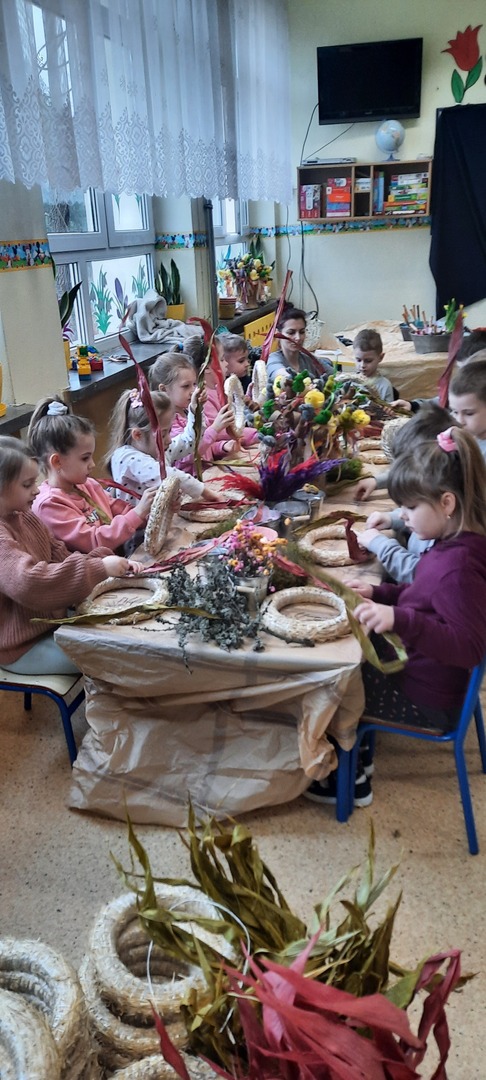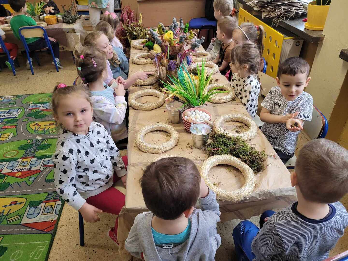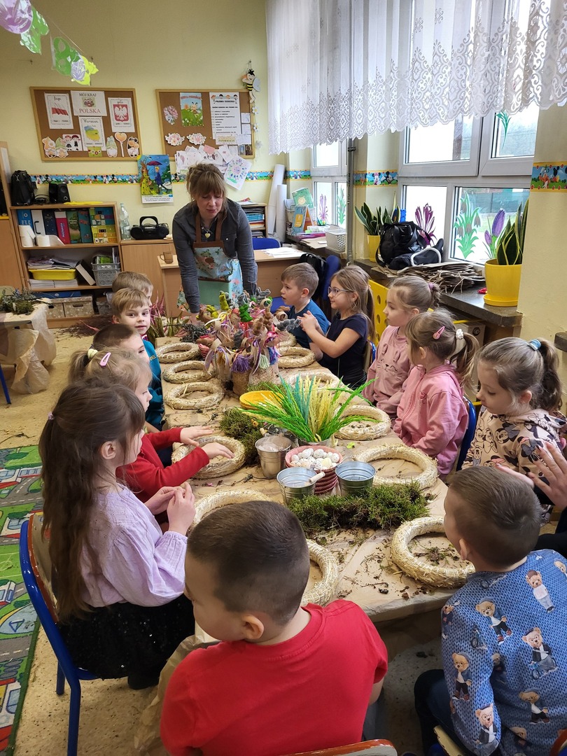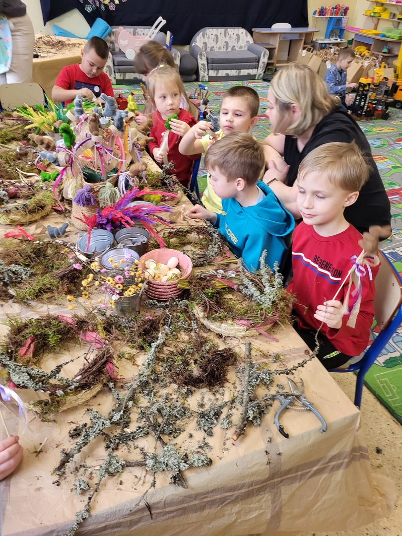 12 marca 2024 roku w naszym przedszkolu odbyły się warsztaty wiosenno-wielkanocne. Celem spotkania było propagowanie i kultywowanie tradycji związanej ze świętami wielkanocnymi. W miłej i radosnej atmosferze ,przedszkolaki spędziły czas na kreatywnej twórczości świątecznej,samodzielnie ozdabiając wianki wielkanocne. Wszyscy wykazali się kreatywnością i pomysłowością. Każdy wianek był piękny i niepowtarzalny, a co najważniejsze samodzielnie wykonany:).