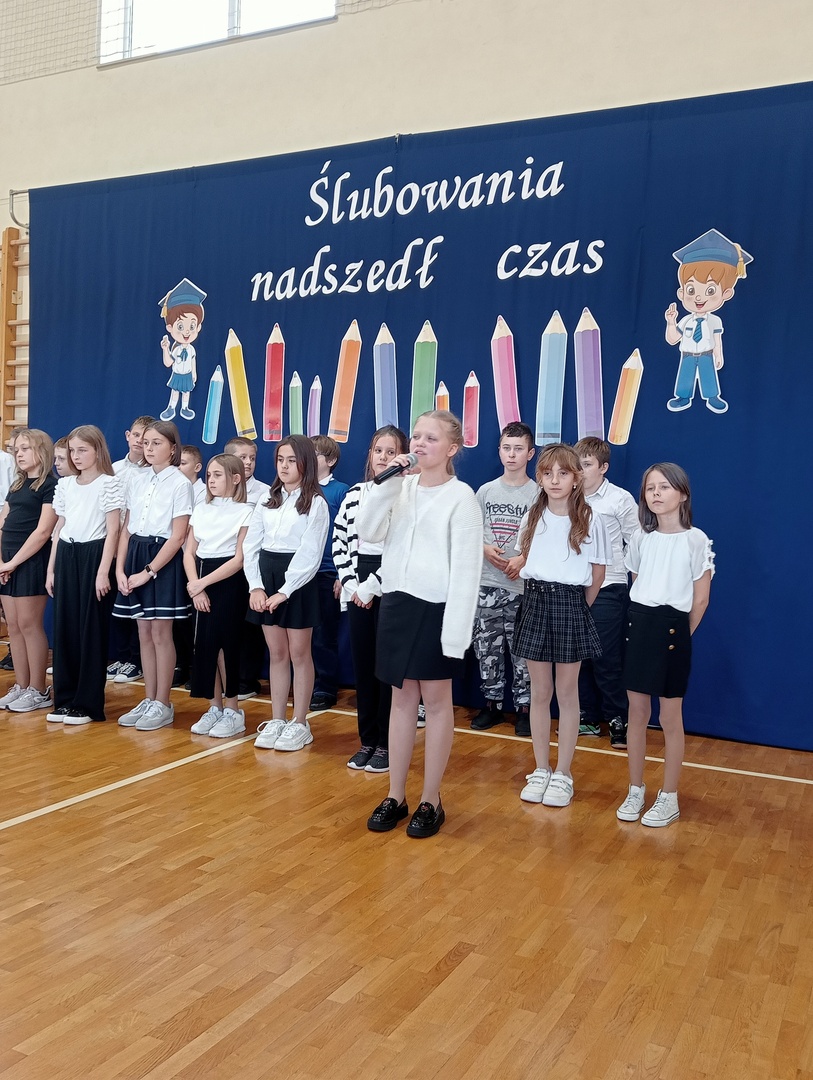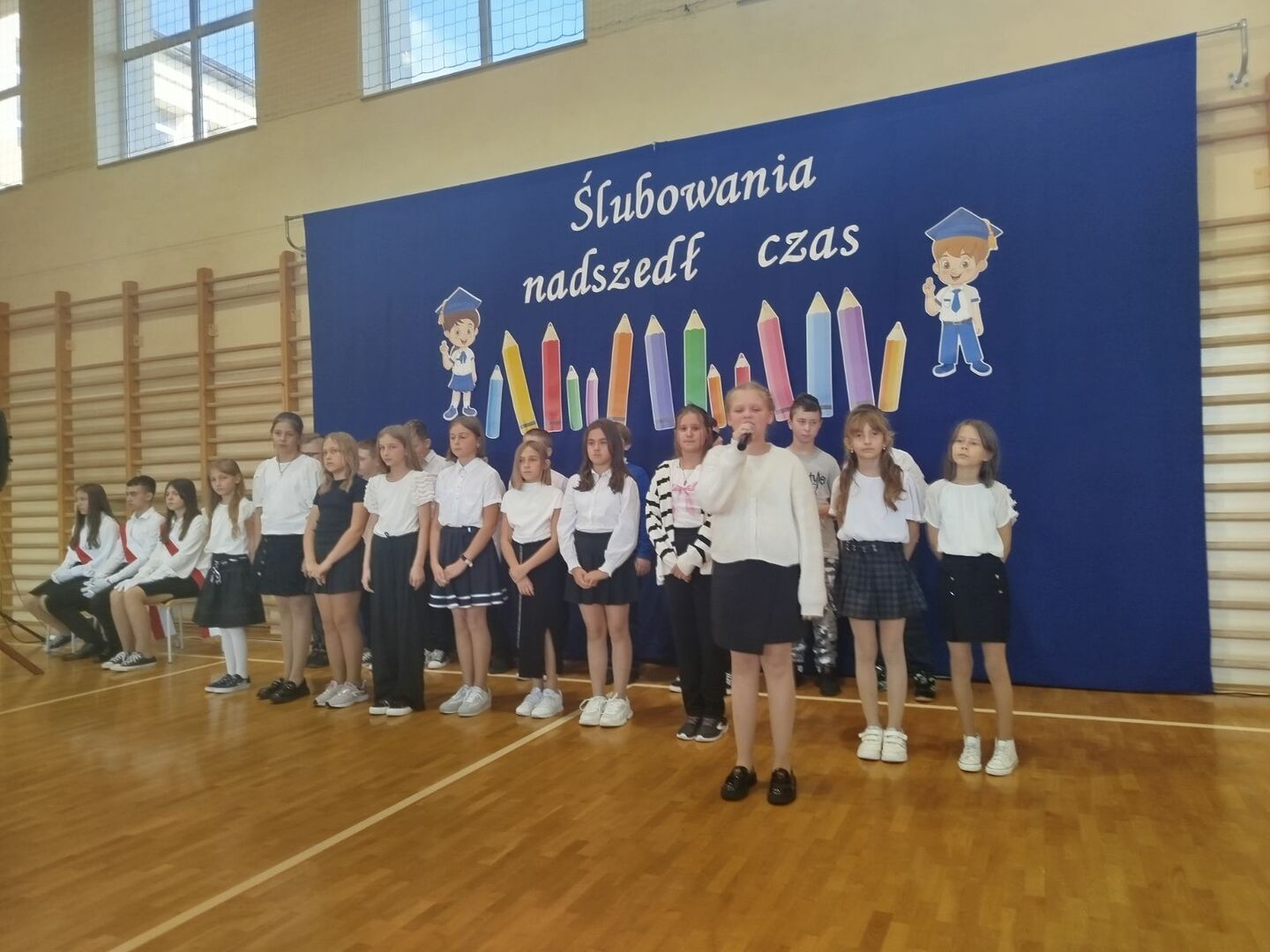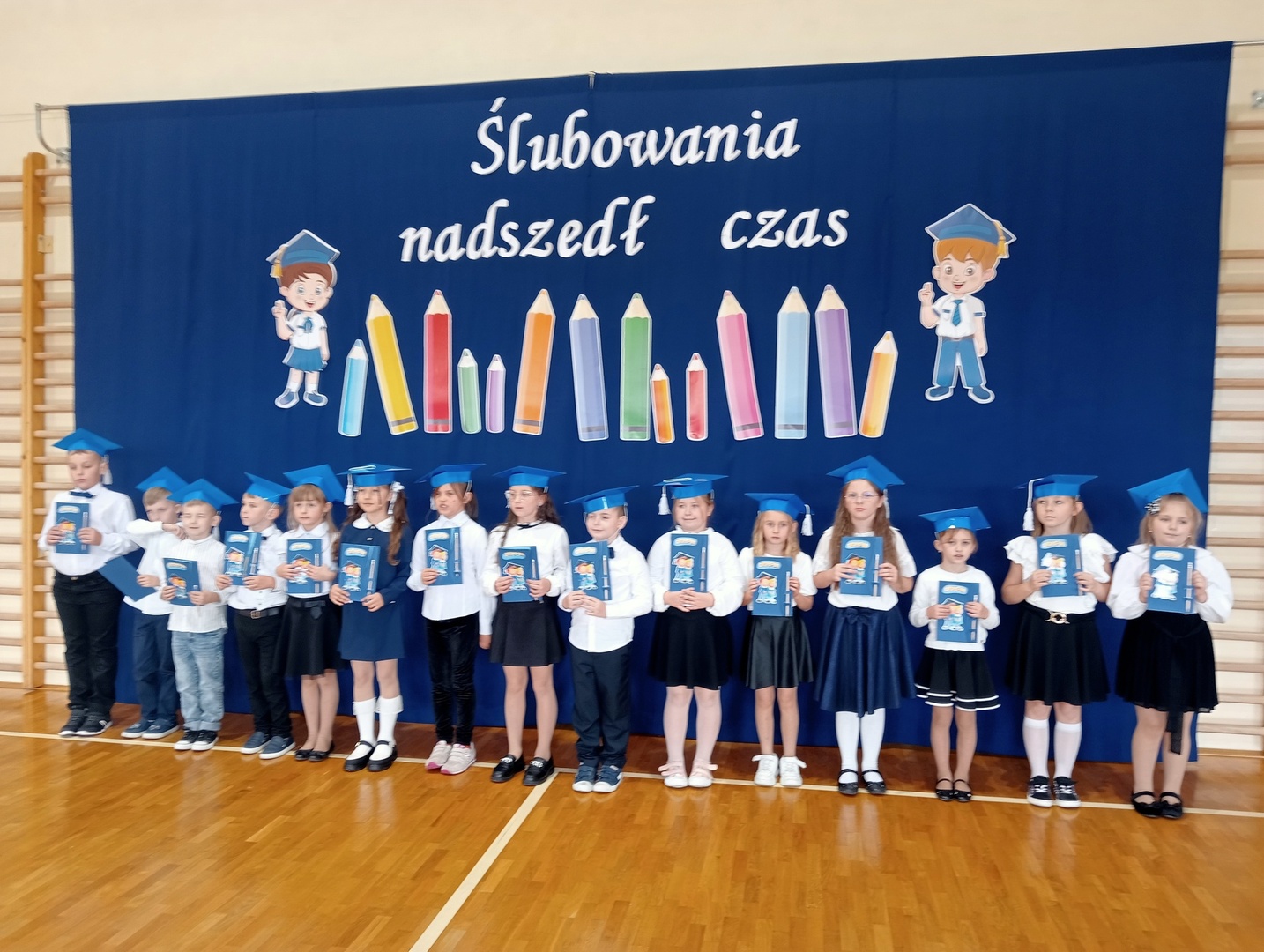 14 października miała miejsce niezwykle ważna dla życia szkoły uroczystość ślubowania i pasowania uczniów klas pierwszych. Jest to szczególny dzień, który na długo pozostanie w pamięci każdego ucznia klasy pierwszej. Pierwszoklasiści przygotowywali się do tego dnia wytrwale i starannie. W obecności rodziców, dyrekcji szkoły, nauczycieli i uczniów starszych klas pokazali, że potrafią pięknie śpiewać i recytować wiersze. Wykazali się wiedzą i znajomością zasad ułatwiających prawidłowe funkcjonowanie w szkole i grupie rówieśniczej. Ślubowali być godnymi Polakami i wzorowymi uczniami. W ten sposób zostali oficjalnie przyjęci do grona społeczności szkolnej. Pani dyrektor przemawiając do pierwszoklasistów podkreśliła znaczenie tego wyjątkowego momentu, który otwiera drzwi do świata nauki, przyjaźni i nowych doświadczeń. Słowa podziękowania skierowała również do Rodziców uczniów, którzy licznie zaszczycili szkołę swoją obecnością w tym dniu. Wszystkim Pierwszakom życzymy powodzenia i wielu sukcesów. 14 października to Dzień Edukacji Narodowej. Jest świętem nauczycieli i wszystkich pracowników oświaty. Z tej okazji uczniowie klasy IV zaprezentowali krótki program artystyczny. W imieniu całej społeczności szkolnej podziękowali nauczycielom, wyrazili wdzięczność za wspólnie spędzone chwile, za odkrywanie pasji i zainteresowań oraz cierpliwość i wyrozumiałość. Podziękowali również pracownikom obsługi za codzienną pracę i życzliwość. Pani dyrektor Iwona Stryjecka – Pezda wyróżniła nauczycieli i innych pracowników wręczając Nagrody Dyrektora. Nagrodę Burmistrza z rąk pani sekretarz gminy Marii Wójcik otrzymała pani Anna Warmuz.