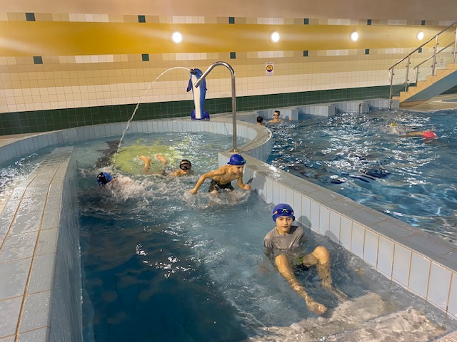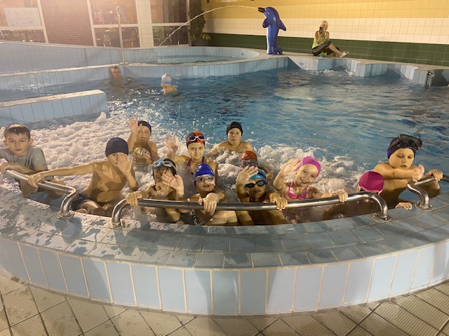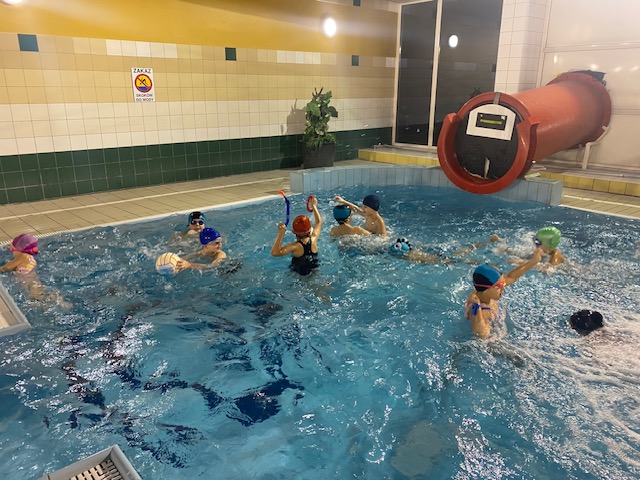 Uczniowie kl. II PSP w Lipie od września do końca listopada 2024 r. uczestniczyli w projekcie „NAUKA PŁYWANIA DZIECI Z GMINY ZAKLIKÓW”. Organizatorem i zleceniodawcą projektu był Urząd Gminy w Zaklikowie. Celem głównym zajęć było upowszechnianie aktywności fizycznej dzieci w środowisku wodnym oraz nabywanie przez nie podstawowych umiejętności pływania, a także uświadomienie dzieciom i rodzicom korzyści zdrowotnych jakie pociąga za sobą nauka tej ważnej umiejętności. W czasie 20 godzin zajęć na basenie „Otylia” w Janowie Lubelskim pod pod kierunkiem instruktora uczniowie poznawali tajniki umiejętności pływackich. Dzieci bardzo chętnie i aktywnie uczestniczyły w zajęciach. Udział w tym projekcie dał im nie tylko możliwość nabycia podstawowych umiejętności pływania, rozwijania i podnoszenia sprawności fizycznej, zapobiegania wadom postawy, zachęcił także do systematycznego uprawiania sportu w czasie wolnym od nauki i aktywnego stylu życia. Dzieci nauczyły się w sposób odpowiedzialny i bezpieczny korzystać z basenu i innych akwenów wodnych. Wspólne wyjazdy integrowały uczniów. Ostatnie zajęcia na basenie zostały zorganizowane w formie gier i zabaw z wykorzystaniem poznanych elementów nauki pływania. Po zabawie na basenie udaliśmy się do kawiarenki na frytki, zapiekanki i lemoniadę.