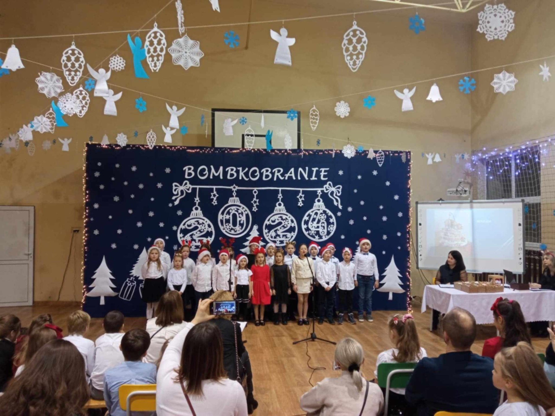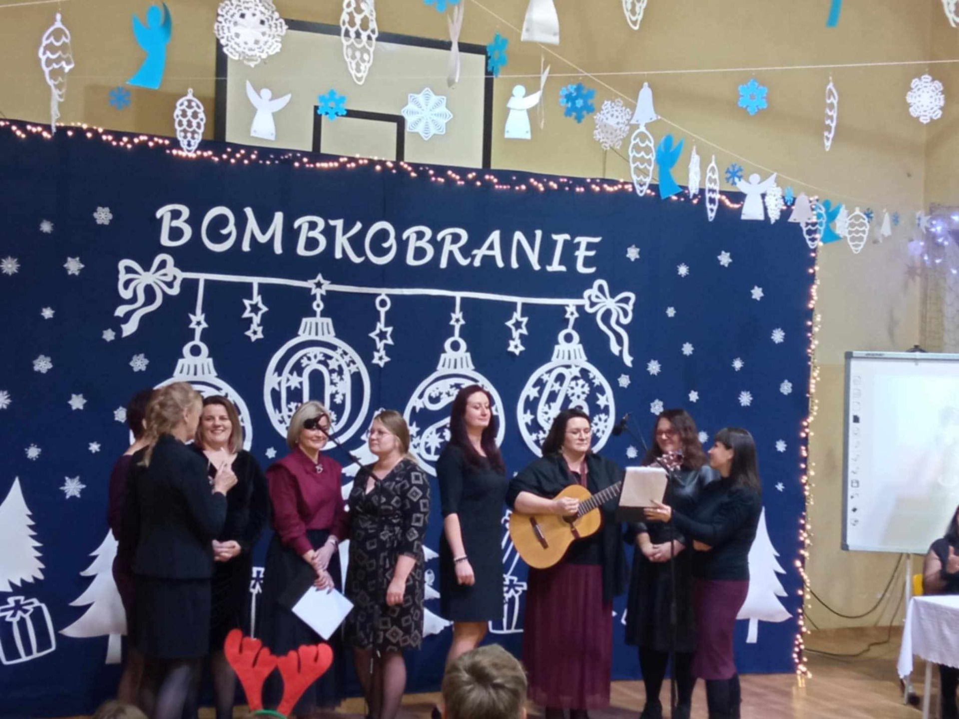 Okres Świąt Bożego Narodzenia to okazja aby na chwilę zwolnić, spędzić czas z bliskimi i nabrać trochę dystansu do zwykłej codzienności. Dlatego też w niedziele 8 grudnia 2024r w naszym Zespole Szkół w Lipie miało miejsce bardzo ważne wydarzenie a mianowicie odbyło się Bombkobranie. To impreza bożonarodzeniowa, która stała się już tradycją naszej szkoły a w tym roku miała swoją ósmą edycje. Uczniowie, rodzice i nauczyciele wspólnie przygotowali to wydarzenie aby wprowadzić przybyłych gości w nastrój zbliżających się świąt Bożego Narodzenia. Nie zabrakło wielu ciekawych występów, wspólnego kolędowania i świątecznych pląsów. Na scenie pojawiły się dzieci ze wszystkich grup przedszkolnych prezentując pastorałki oraz świąteczne układy taneczne. Po nich wystąpili uczniowie klas 1-3 szkoły podstawowej prezentując kolędy i pastorałki. Zaprosiliśmy również do współpracy Chór parafialny, który swoim przepięknym występem uświetnił naszą uroczystość. Nie zabrakło też występów solowych naszych starszych uczniów którzy pod opieką Gminnego Ośrodka Kultury przygotowali piękne kolędy. W swoim świątecznym układzie tanecznym wystąpił również Kameleon działający przy GOK w Zaklikowie. Na zakończenie części artystycznej, na scenie zaprezentowali się pracownicy ZS w Lipie wykonując dwa świąteczne utwory. Między występami prowadzona była tradycyjna licytacja przepięknych bombek. Nie zabrakło chętnych biorących udział w licytacji, którzy wielokrotnie przebijali wzajemnie swoje oferty. Emocje sięgały zenitu. Po wylicytowaniu wszystkich bombek odbyła się licytacja świątecznego tortu w kształcie choinki. Oprócz licytacji wielką atrakcją był kiermasz świąteczny gdzie można było nabyć wyjątkowe stroiki, ozdoby świąteczne i bombki, które z pewnością pięknie będą prezentować się w domach swoich nowych właścicieli. Największą atrakcją dla dzieci okazała się loteria fantowa w której każdy los wygrywał. Po kupnie losa można było stać się szczęśliwym nabywcą pięknych świecących szopek bożonarodzeniowych, krasnali, świątecznych ozdób, świeczek, kubków, voucherów do cukierni, voucherów na usługi ze strefy beauty, voucherów na choinkę i wielu, wielu innych gadgetów. Wszystkie zakupione losy brały również udział w losowaniu nagrody głównej. Dopełnieniem wszystkiego był słodki stół pełen świątecznych wypieków, ciast, pierników i pachnącej kawy. Ten niezapomniany wieczór na długo pozostanie w naszej pamięci a wszystko to dzięki zaangażowaniu i poświęceniu wielu rodziców i pracowników ZS w Lipie za co składamy serdeczne podziękowania.